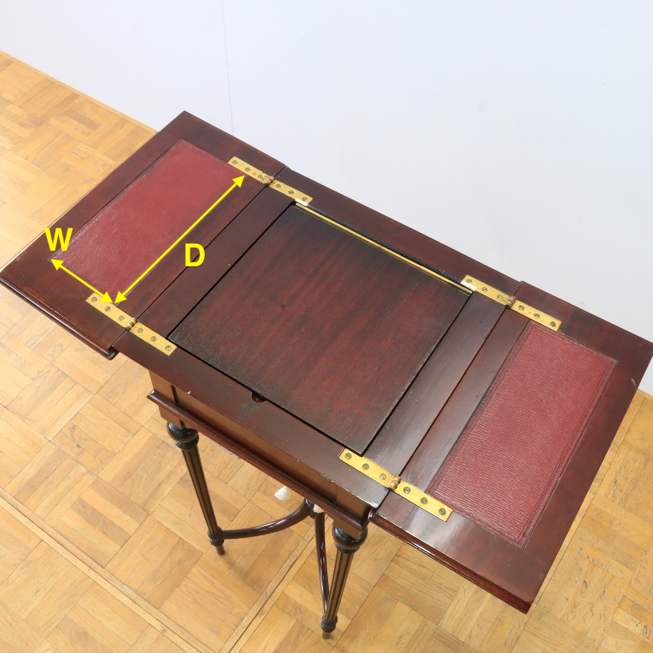 オリジナルの赤いレザーは縁にエンボスが施されています。(アンティークのため多少のシミなどがございます)