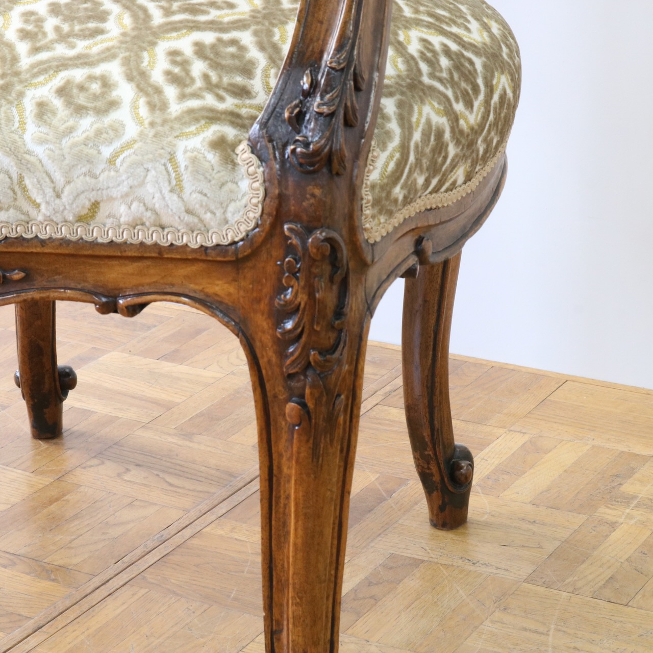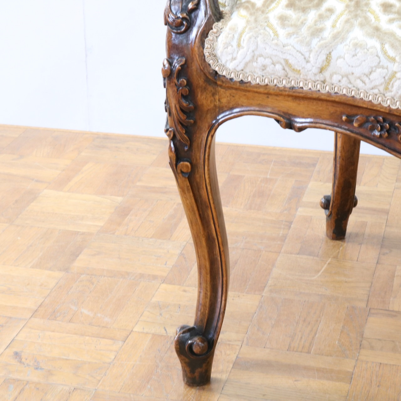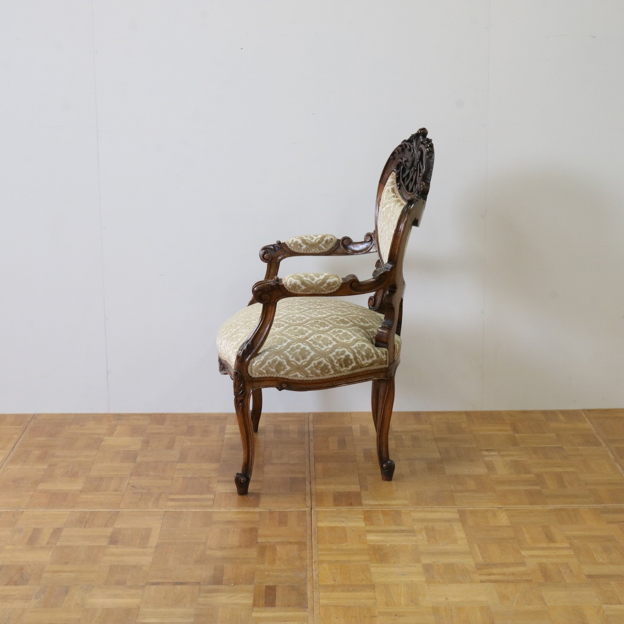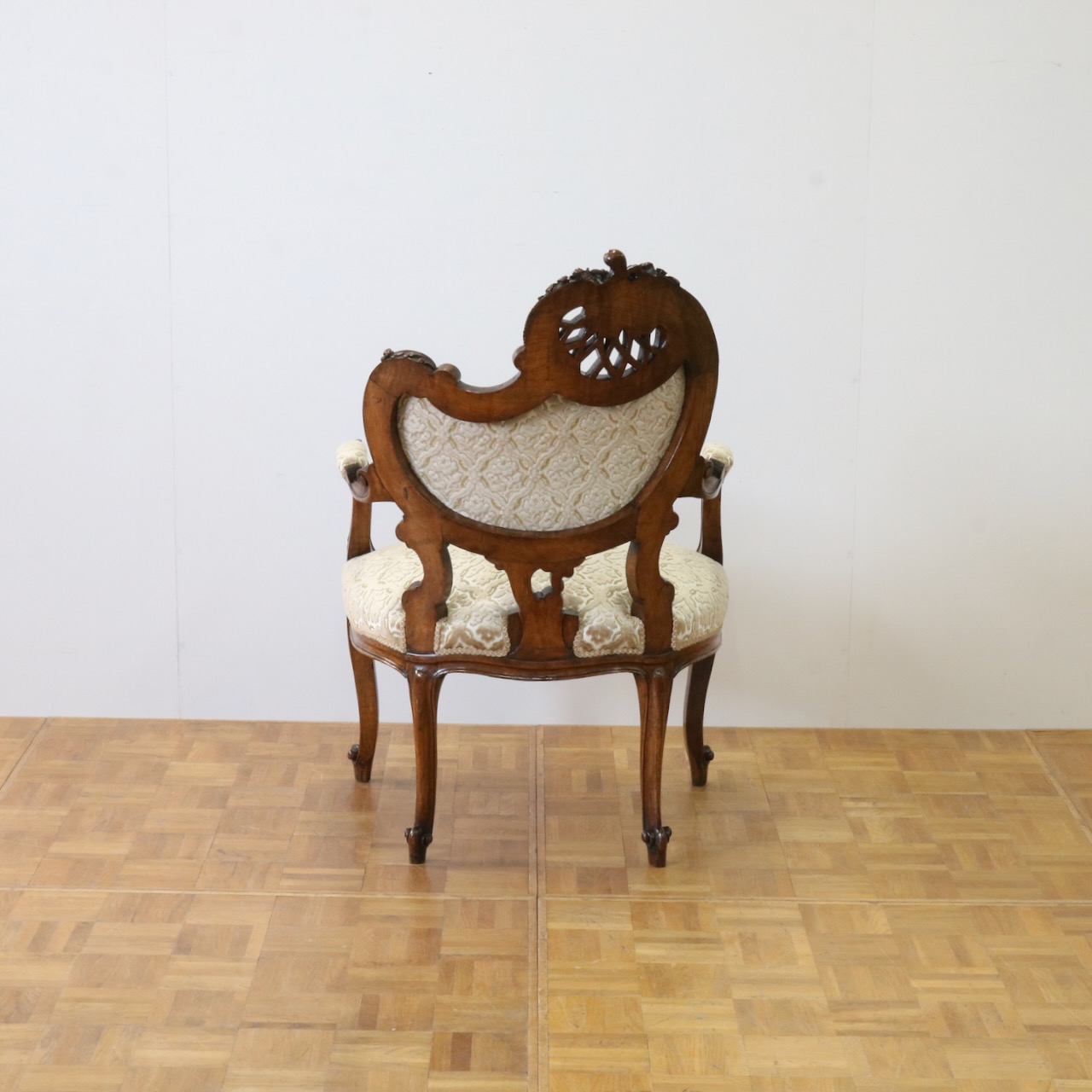 脚元にもアカンサスモチーフの彫刻がされ、どこから見ても美しい造形のアームチェアーとなっています。
