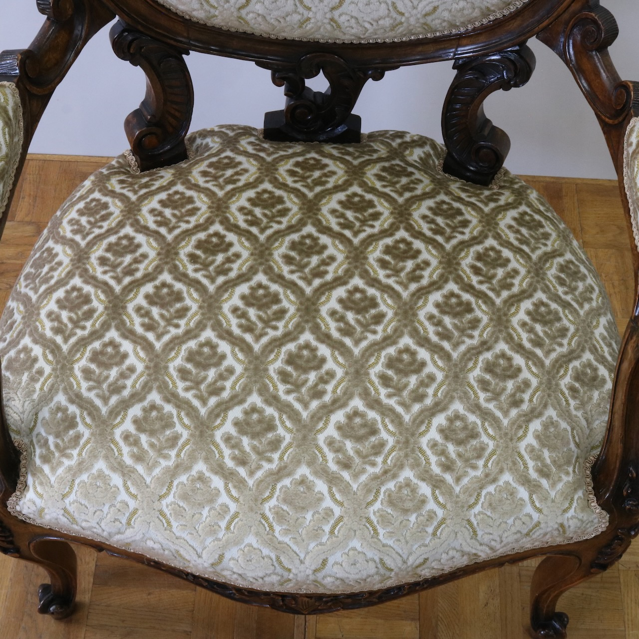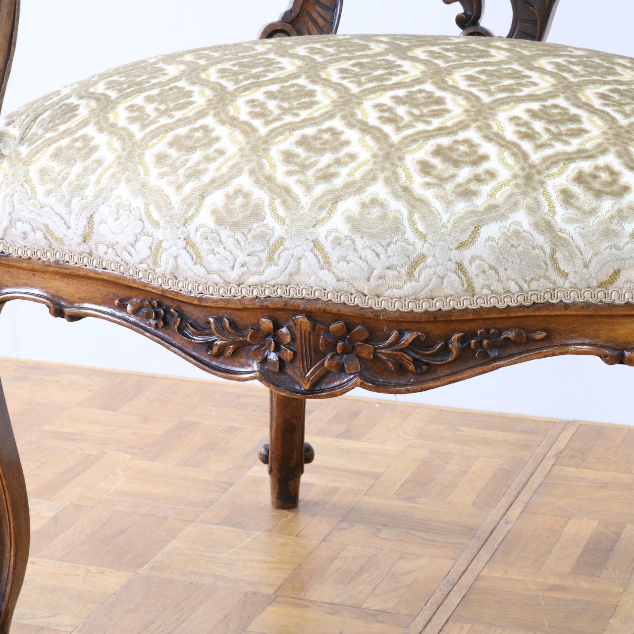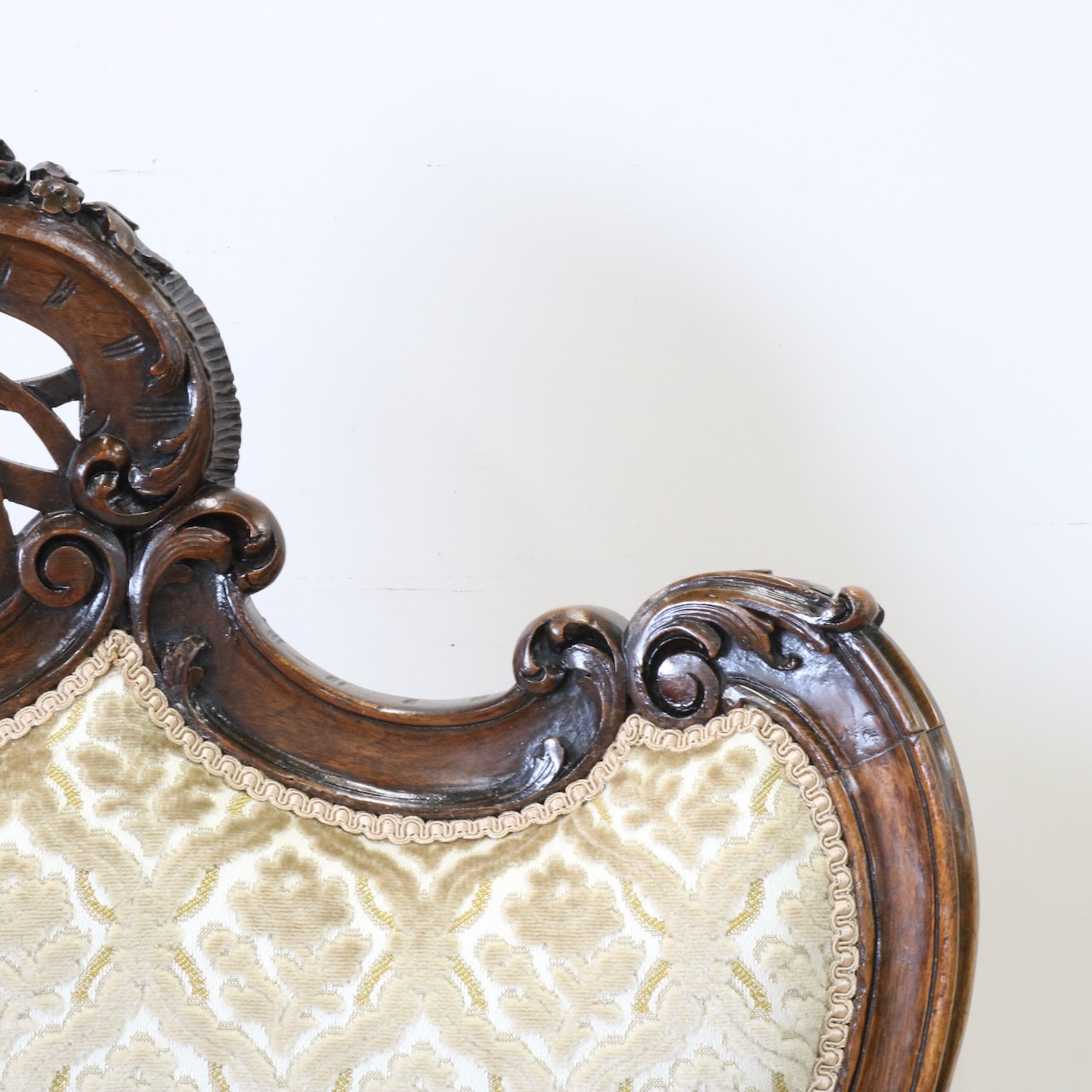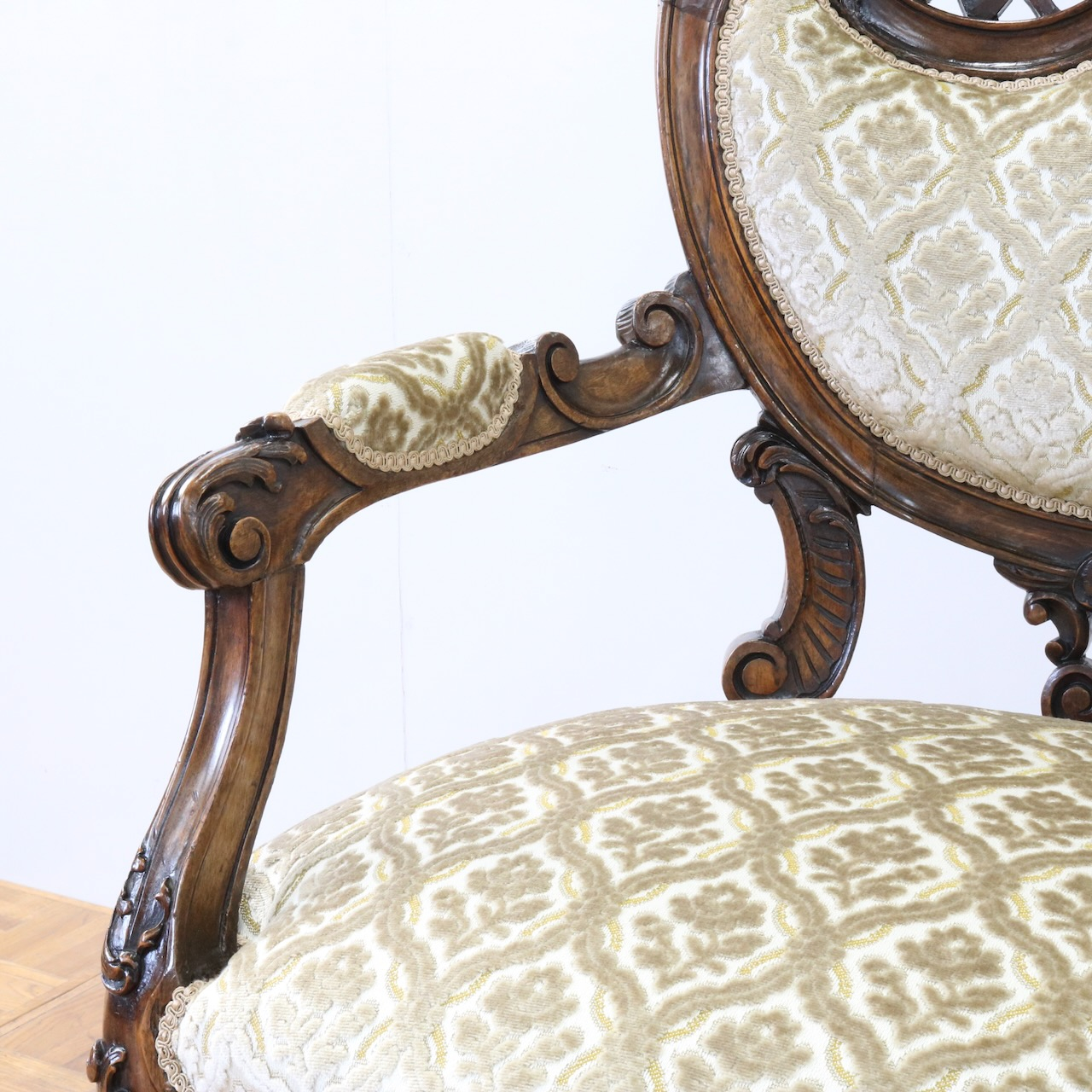 配送料の目安 ▶︎1890年代、ヴィクトリアンの1人掛けソファーです。背もたれの抜きの彫刻が当時の職人の技術力を物語る逸品と言えます。ゆったりとお過ごし頂けるサイズの1人掛けソファーです。セットで2人掛けソファーも入荷しております。(406-U-0901)