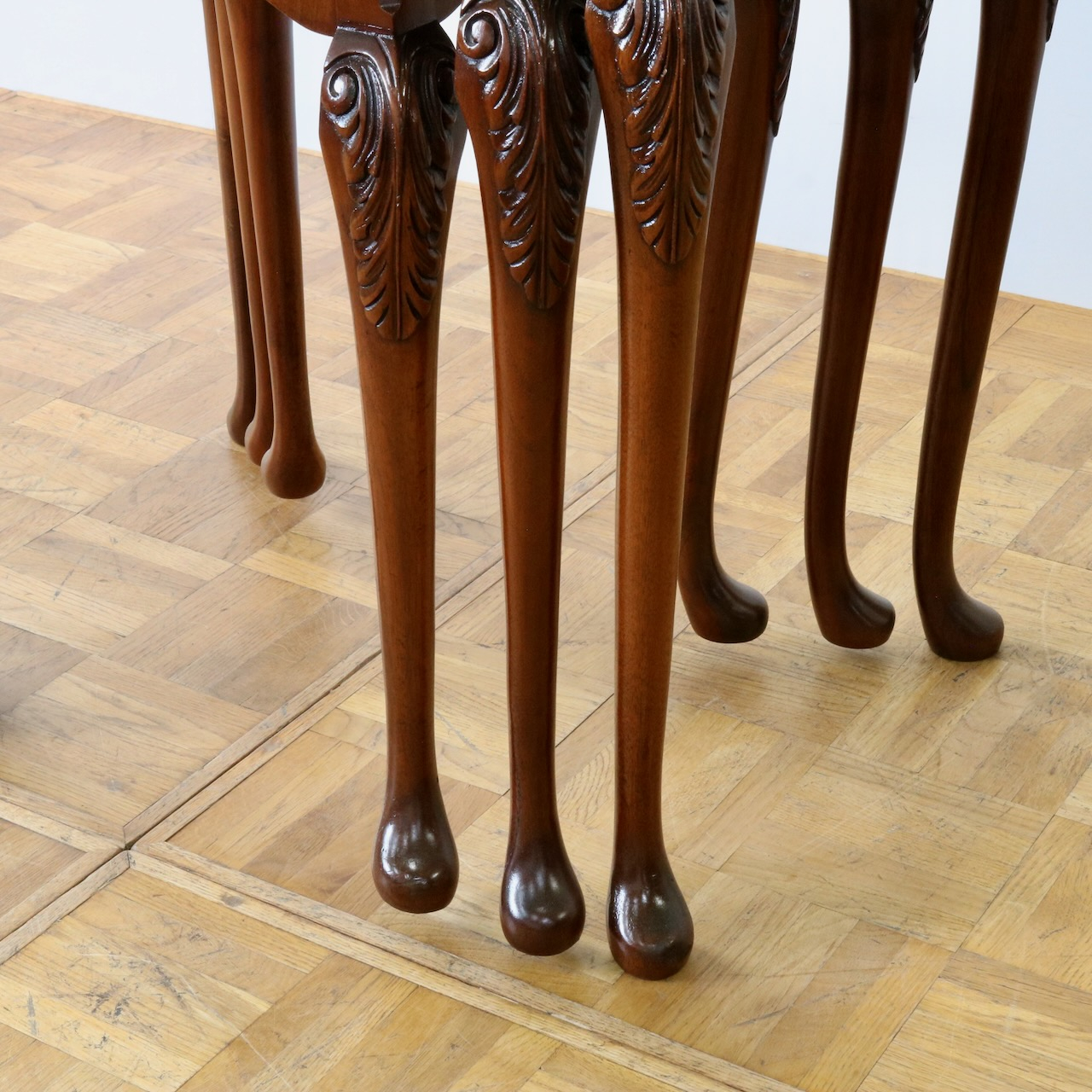 天板の角と脚の付け根にあしらわれたアカンサスの葉の装飾がクラシカルで豪華な雰囲気です。