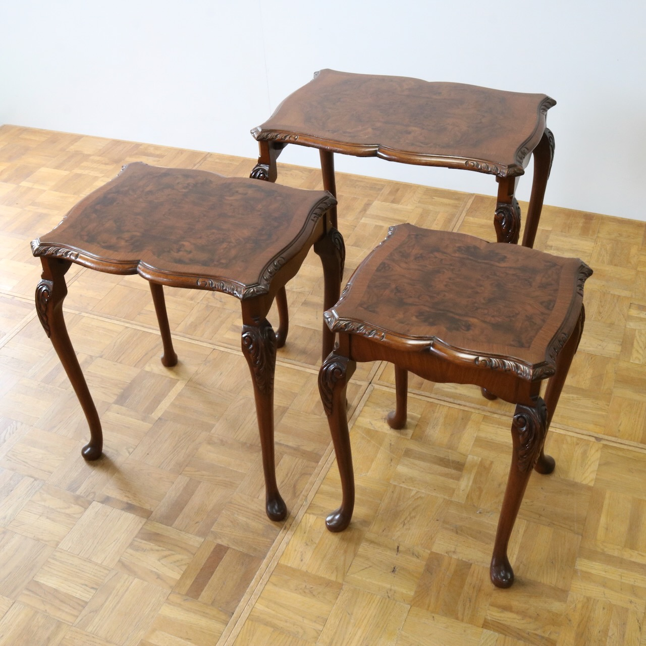 配送料の目安 ▶︎1930年代、ウォールナット材のネストテーブル。