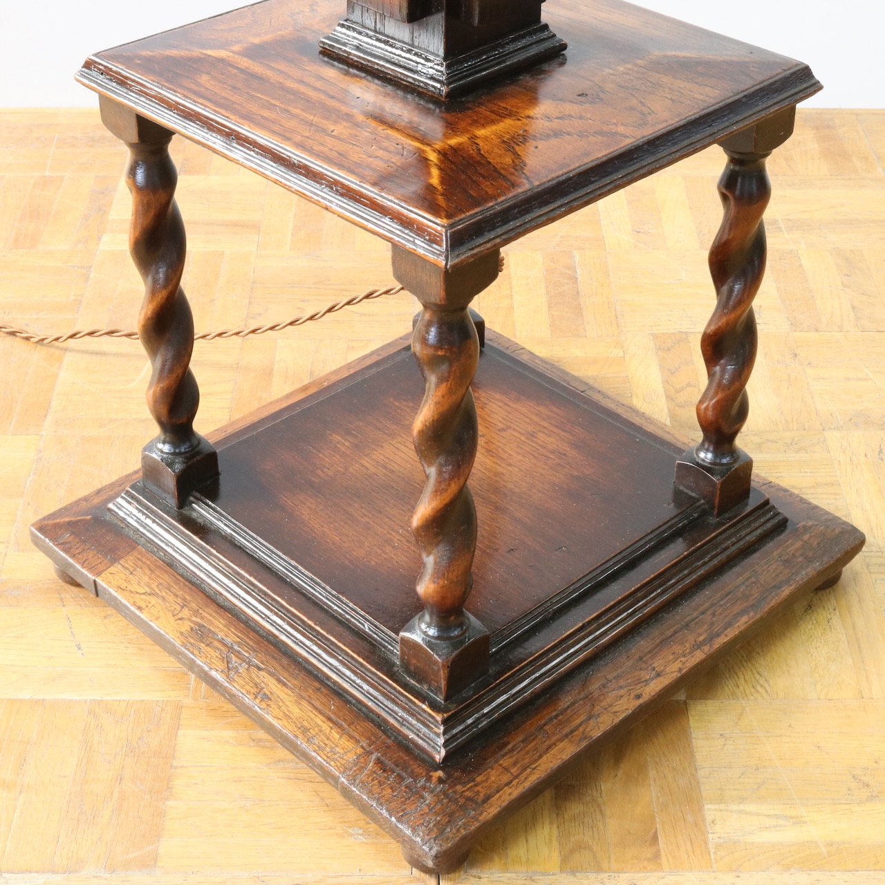 ねじり細工の施された柱と安定感のあるスクエアベースが特徴で、上質な木の質感が魅力です。
