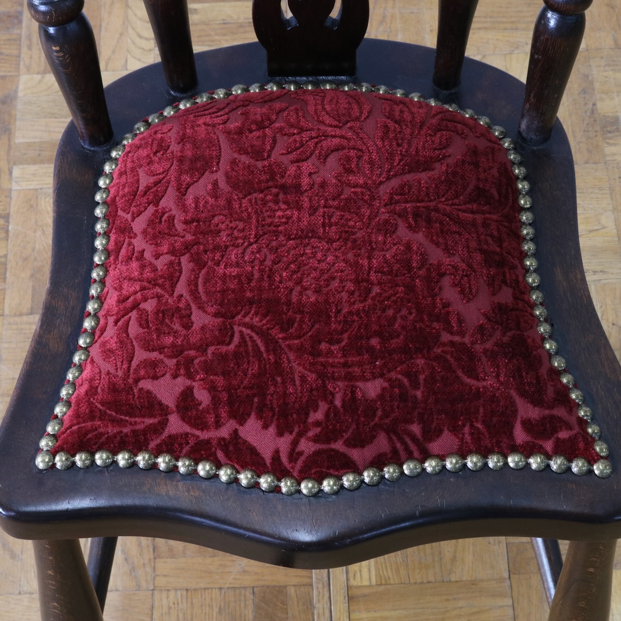 背と座面のクッション部分は絵柄の部分が少し起毛した温かみのある生地で張り替えました。