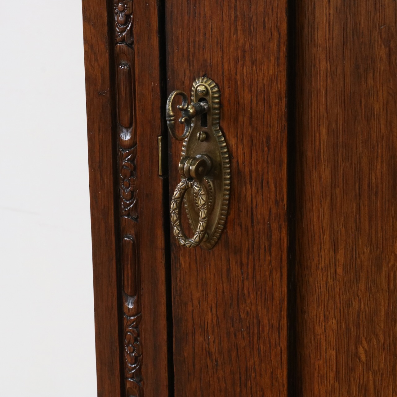 真鍮製の金具もアンティークらしい鈍い輝き。輪っかになった引き手を少し右にひねって扉を開けます。鍵もかかります。専用の鍵が1本付属します。