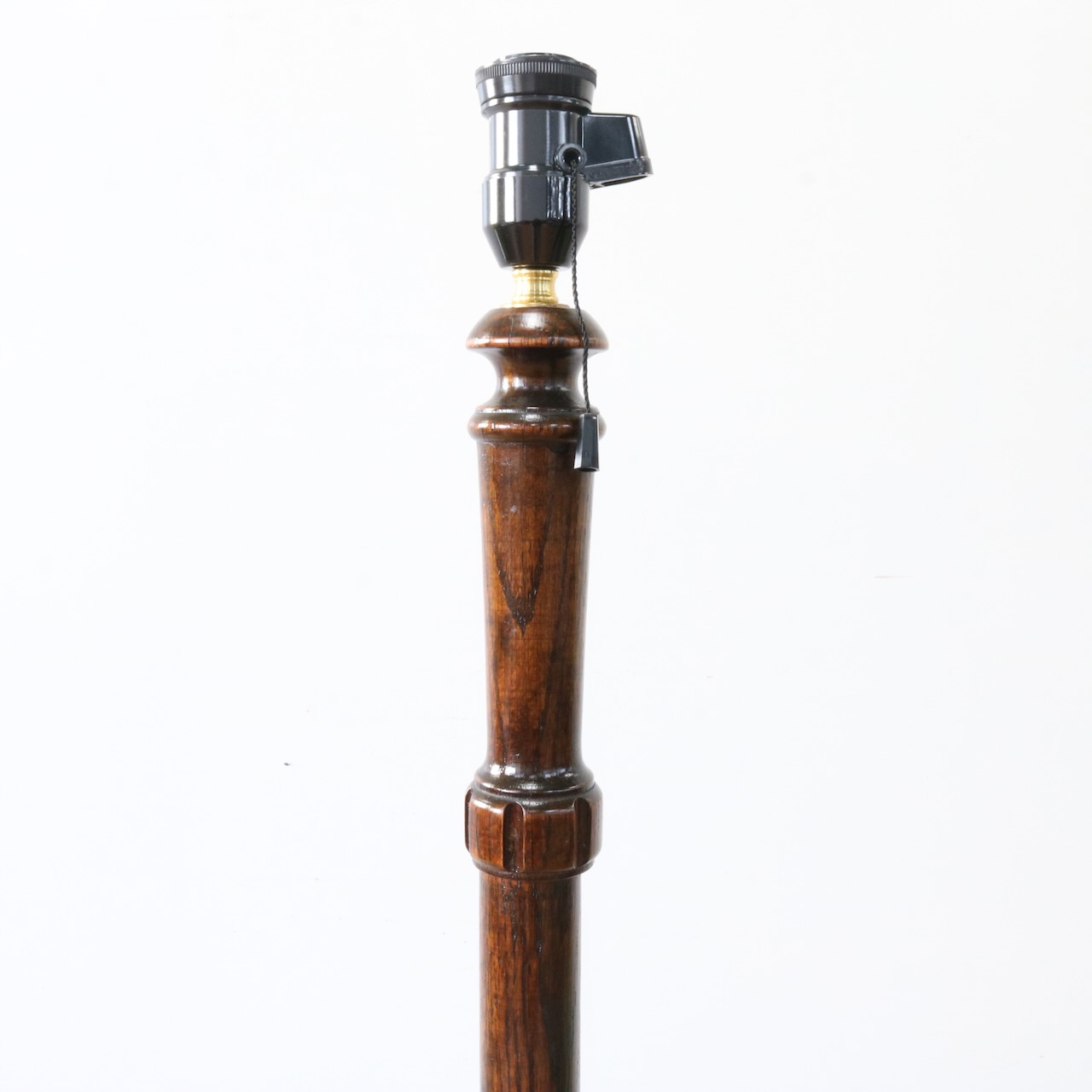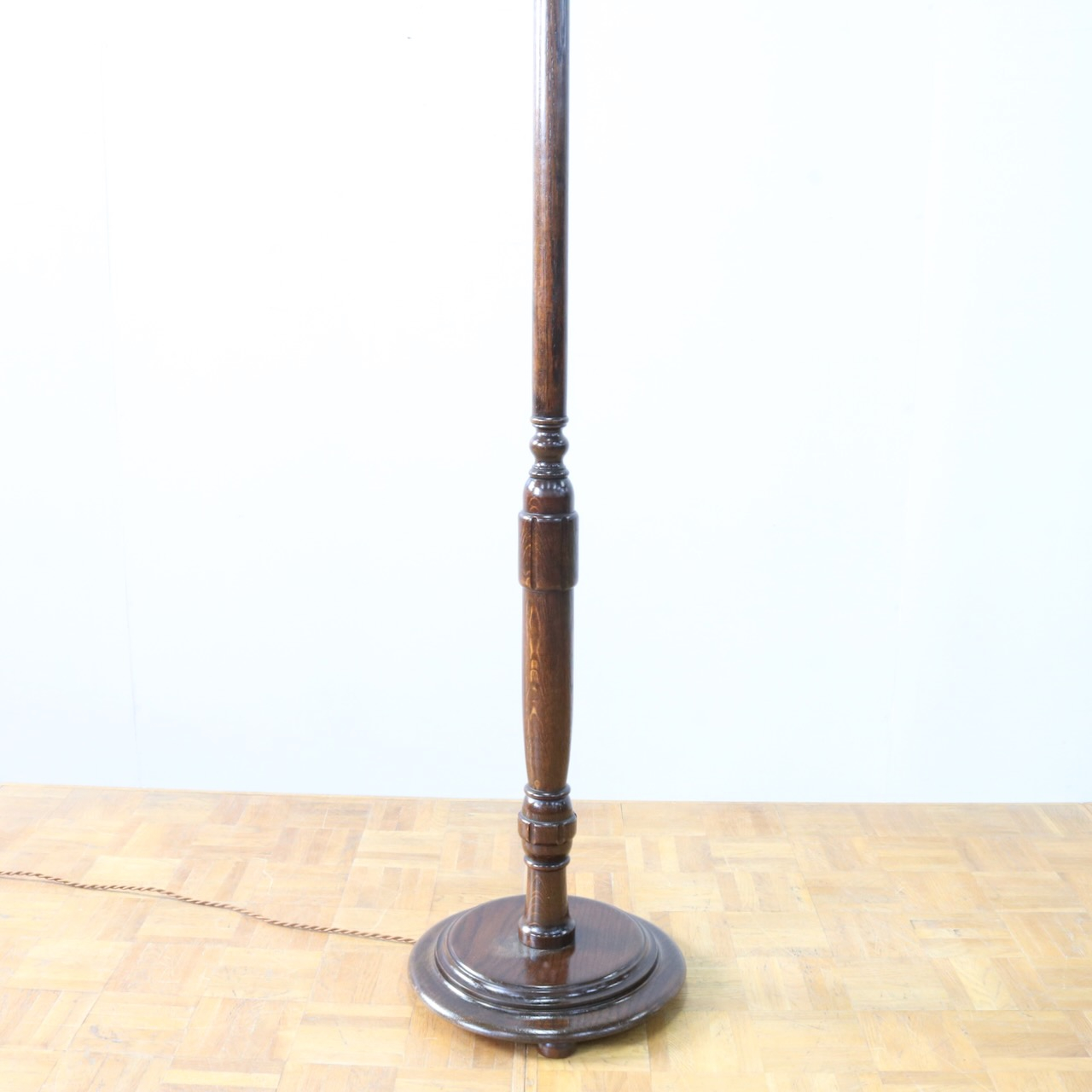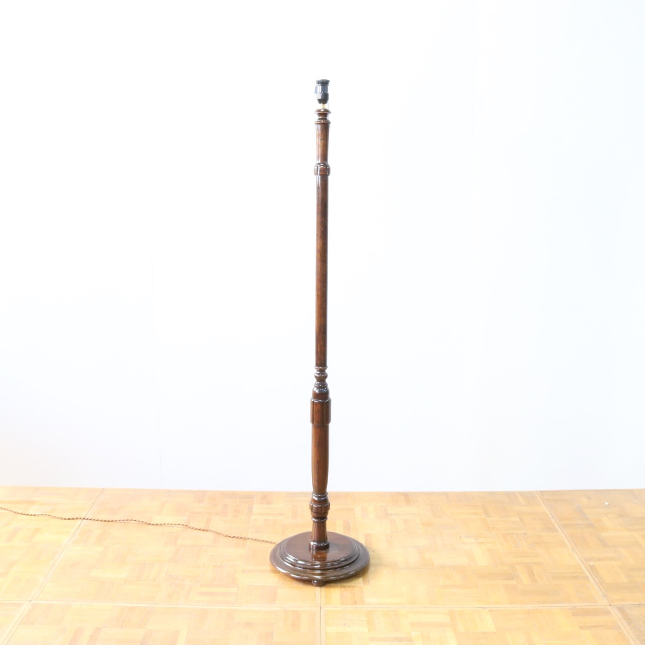 すらりとしたデザインが美しいオーク材のアンティークフロアスタンド。