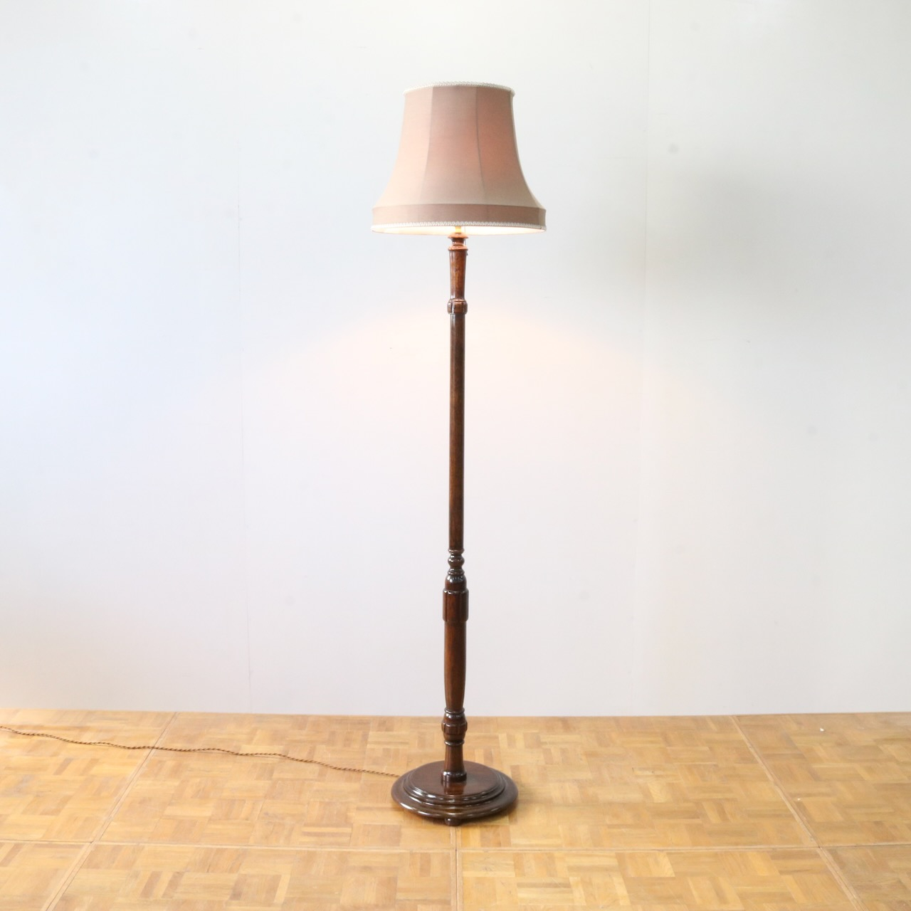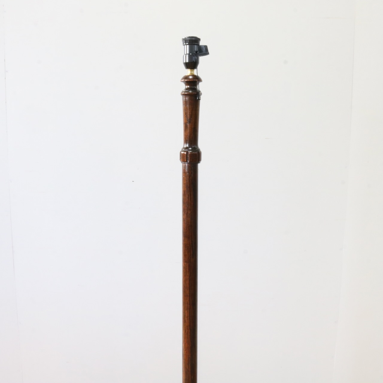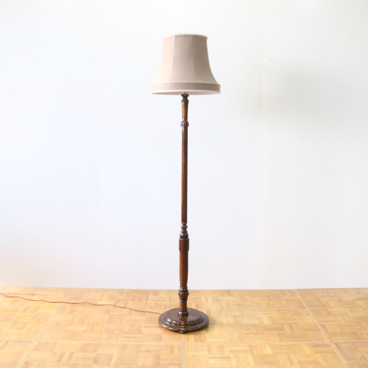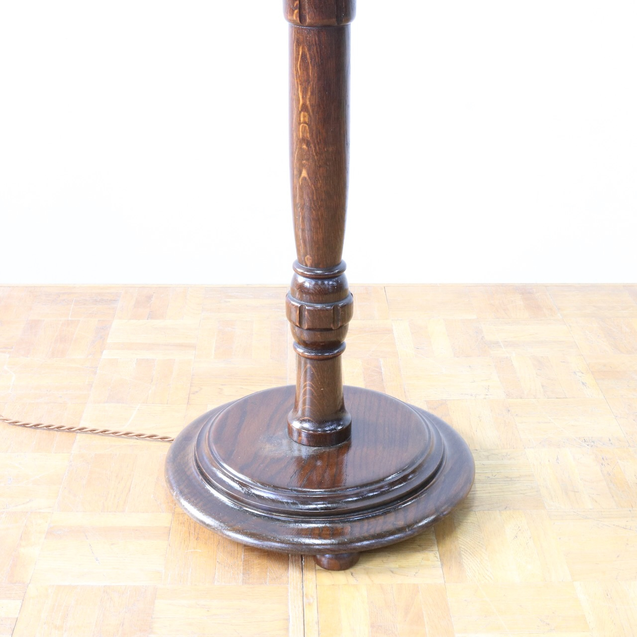 すらりとしたデザインが美しいオーク材のアンティークフロアスタンド。