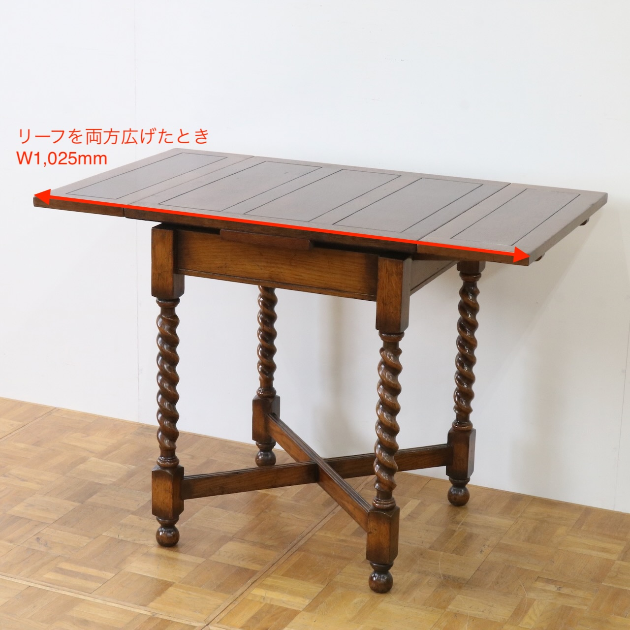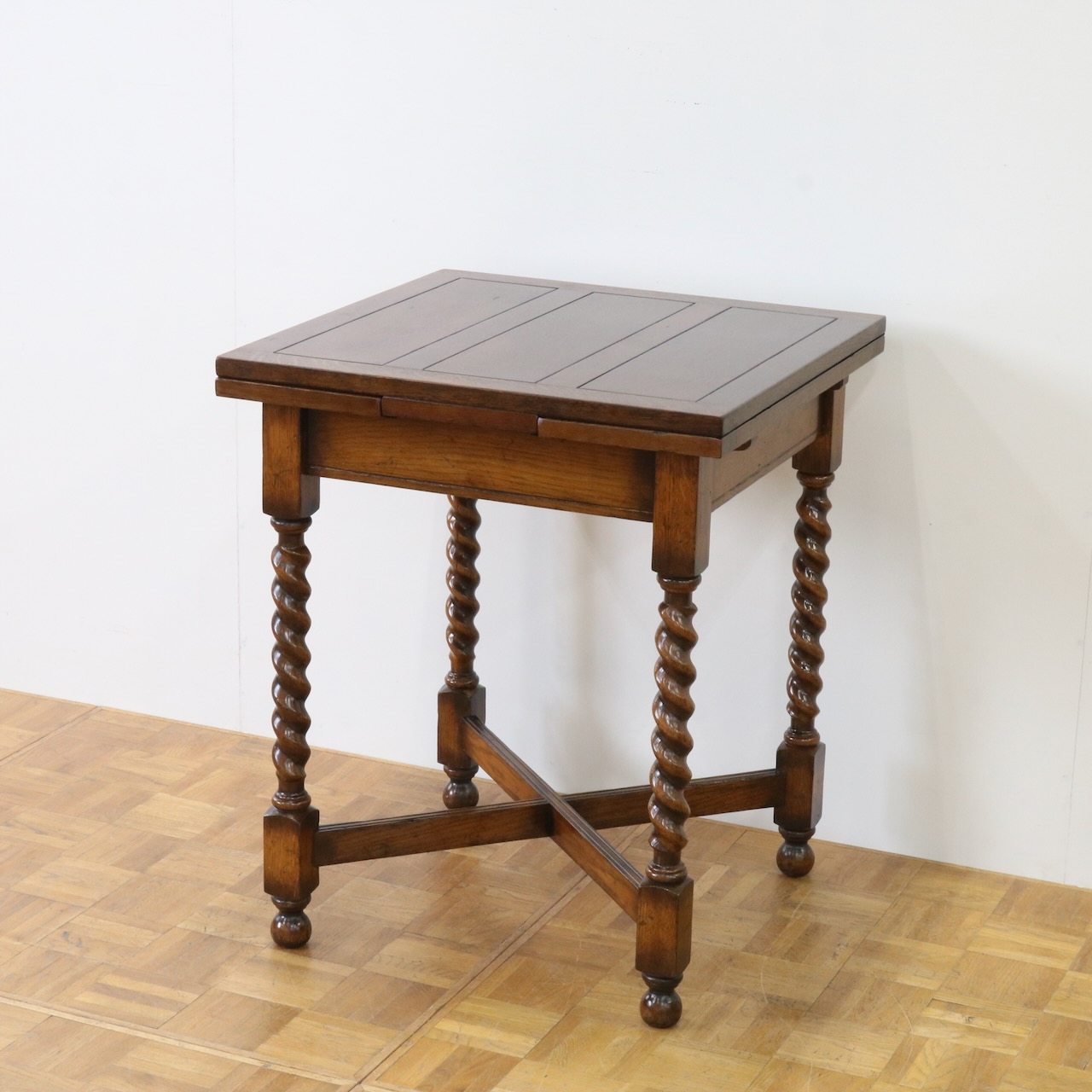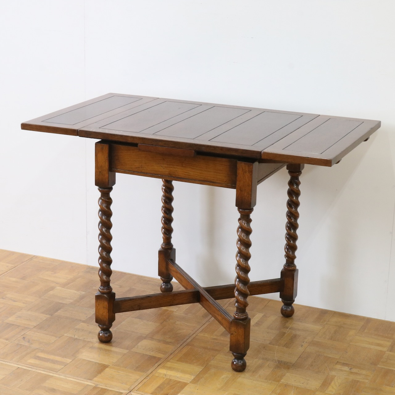 力強いバーリーシュガーツイストレッグ。特にオーク材のアンティーク家具によく見られる定番デザインです。