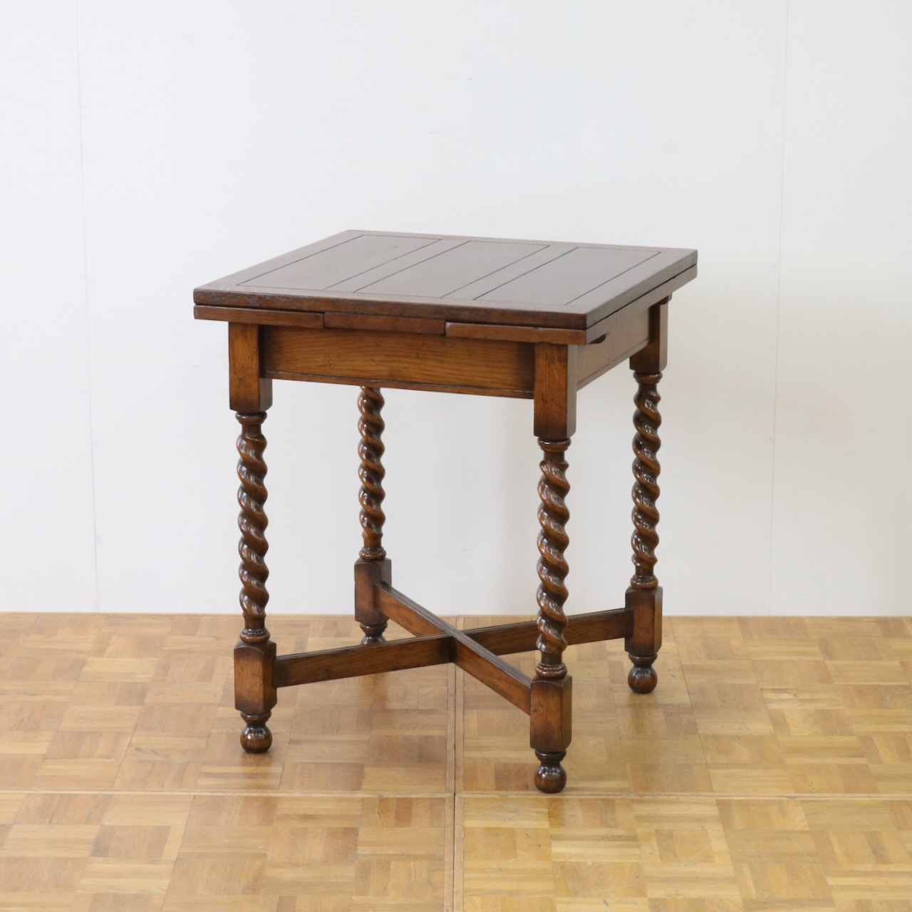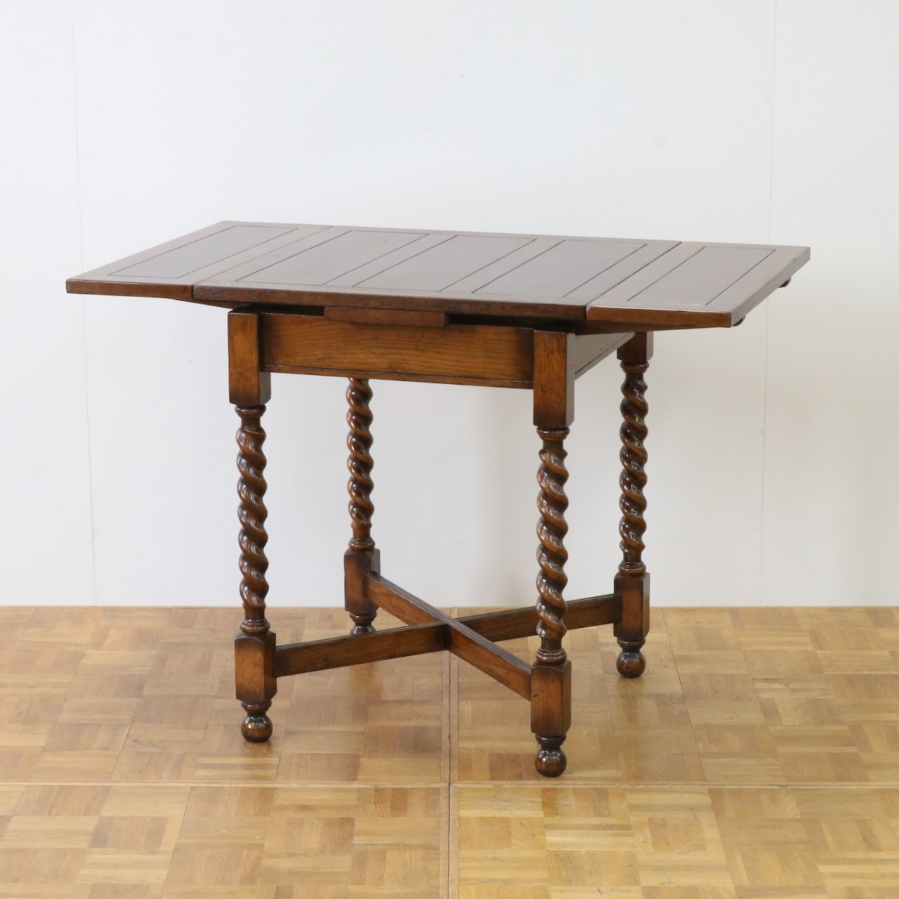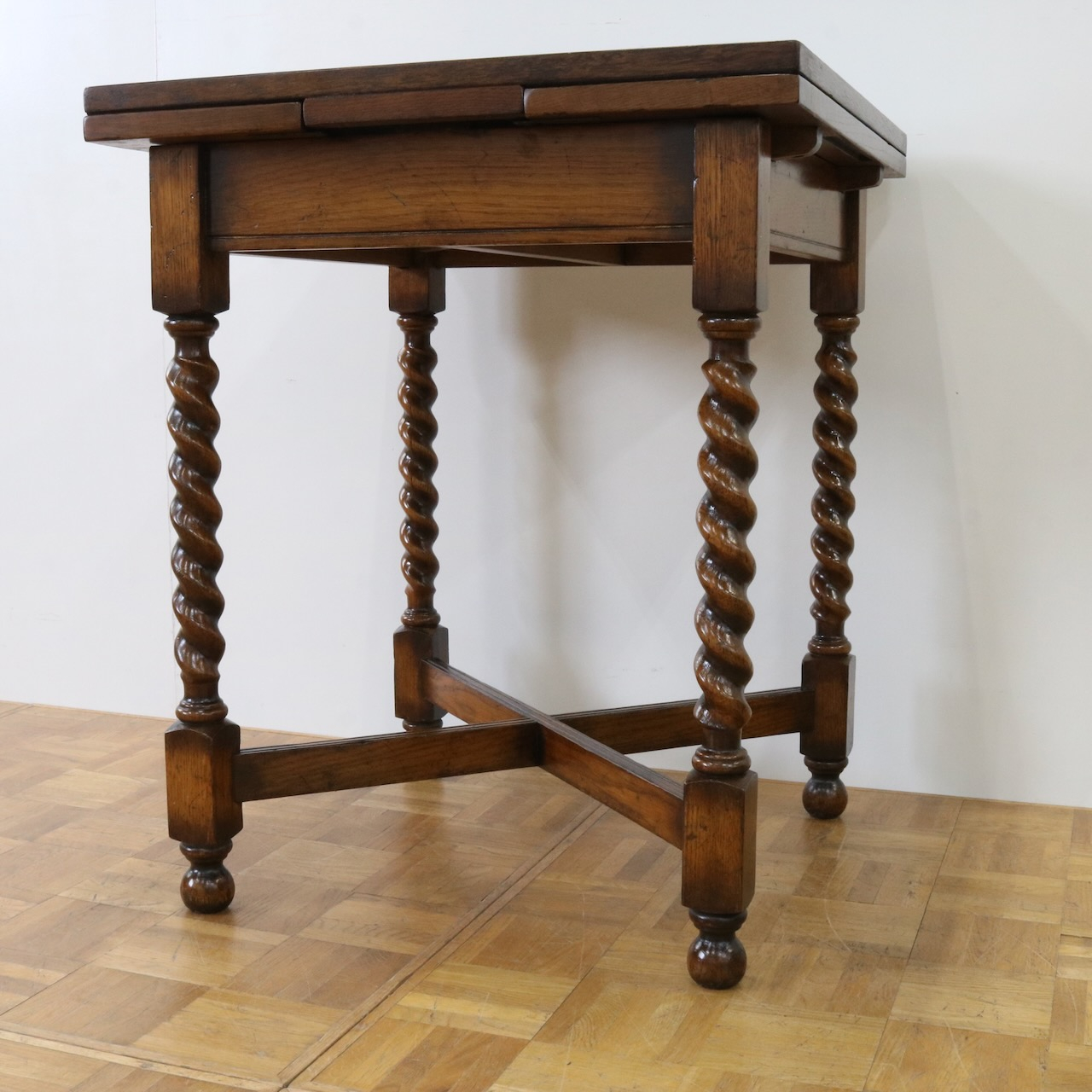 力強いバーリーシュガーツイストレッグ。特にオーク材のアンティーク家具によく見られる定番デザインです。