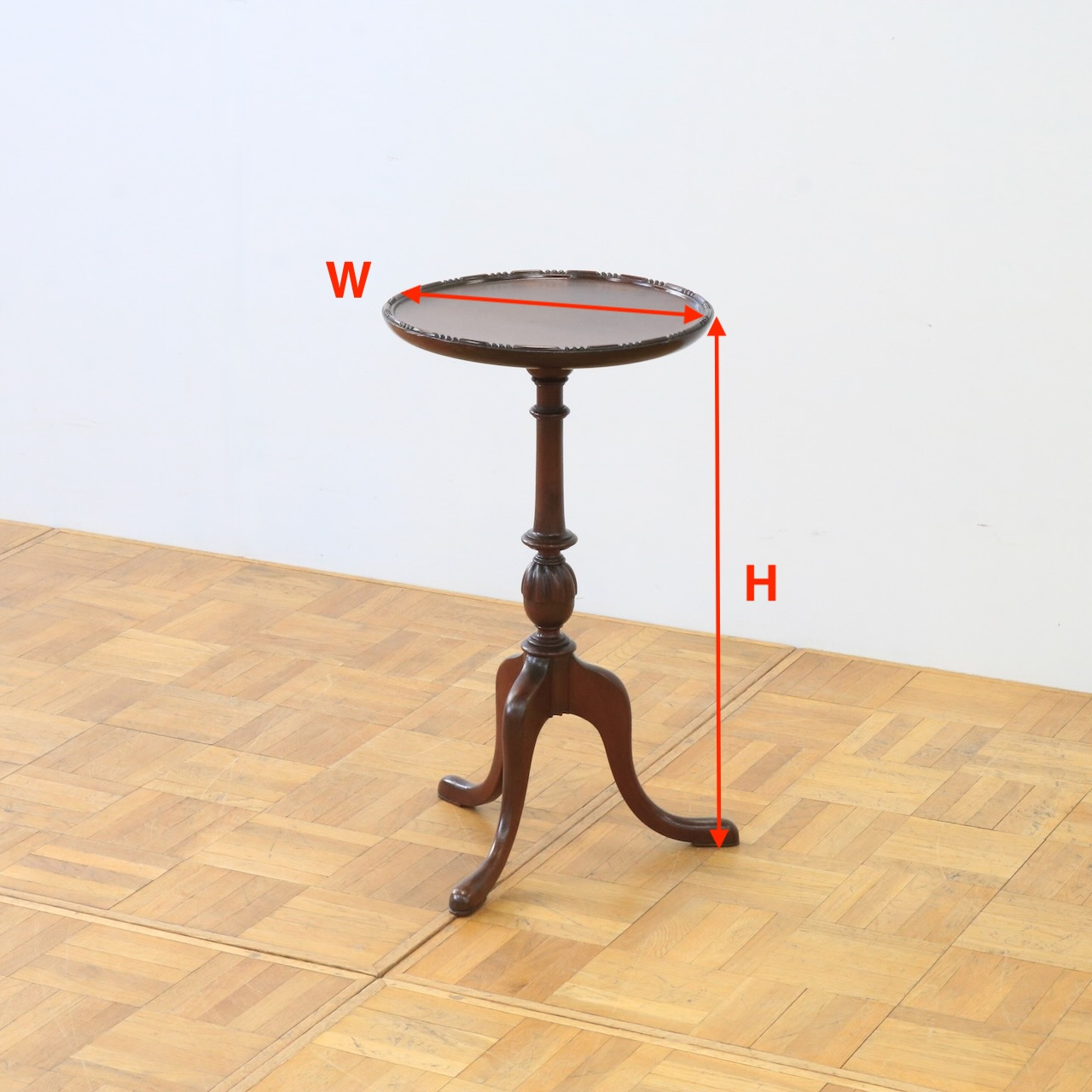 1940年代マホガニー材のワインテーブル。小回りのきくスモールテーブルはソファーサイドやプランツスタンドなど多様性のあるテーブル。トライポッドの脚がポイントです。