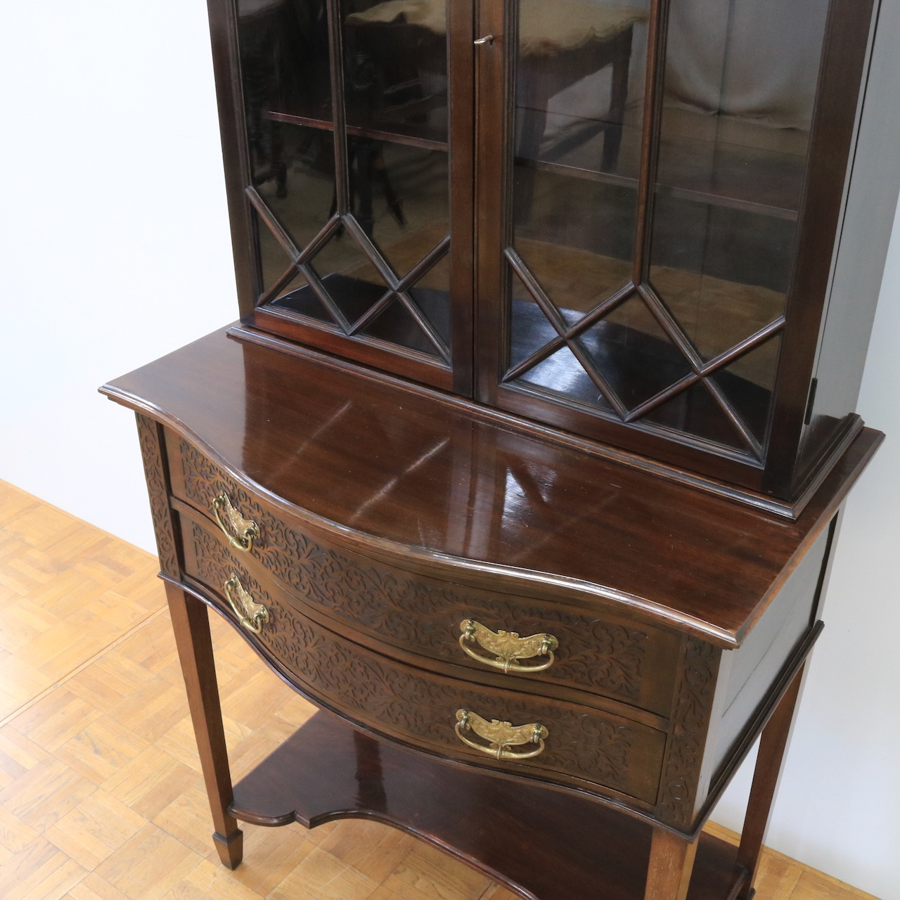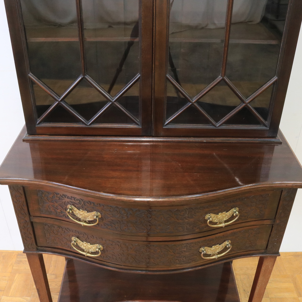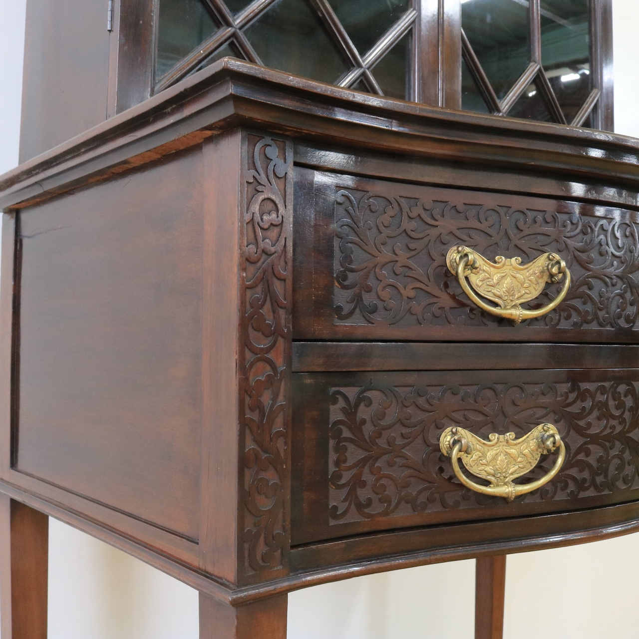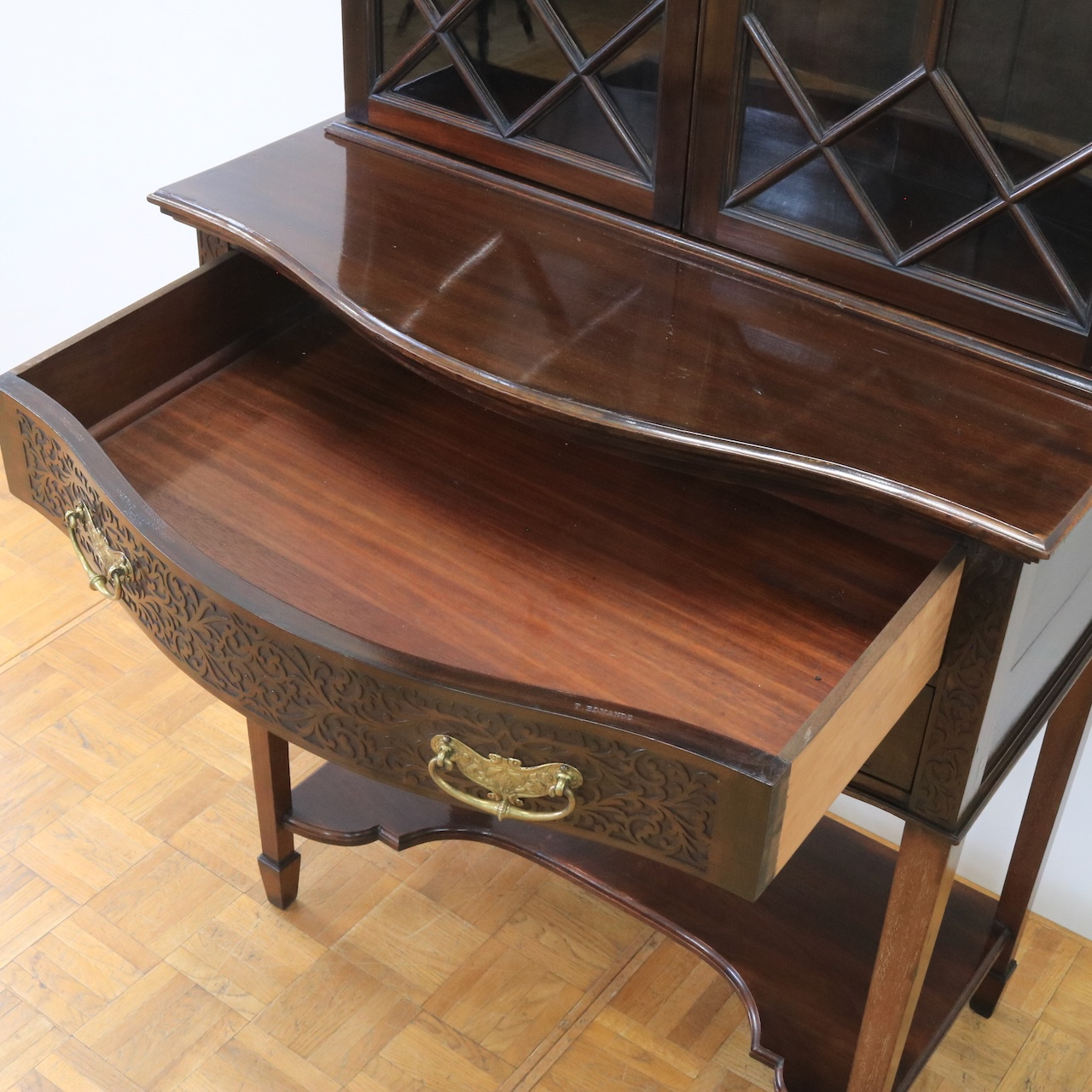 1910年代、マホガニー材のグラスキャビネット。