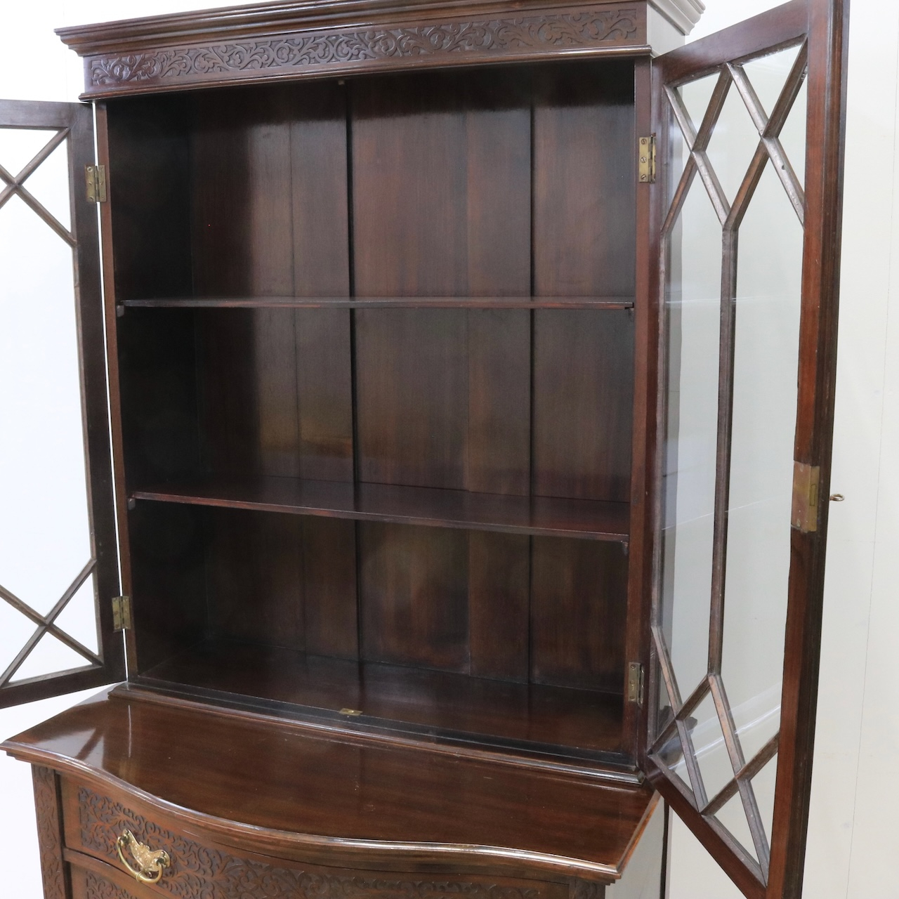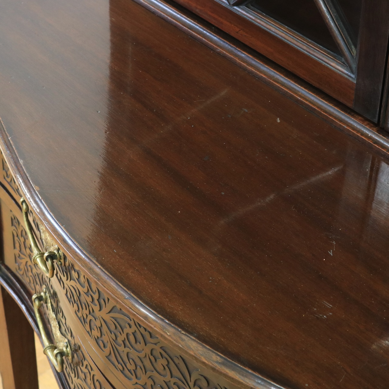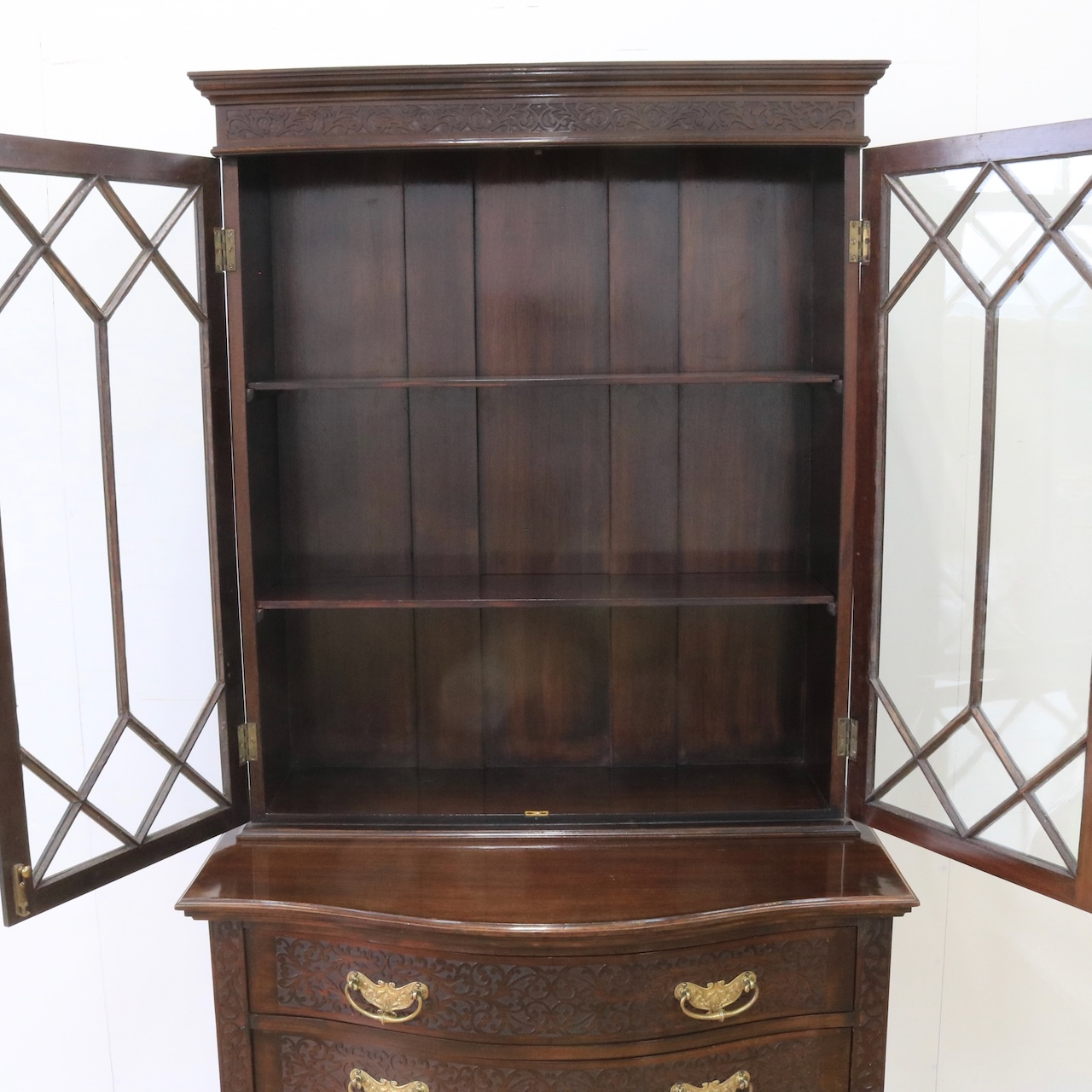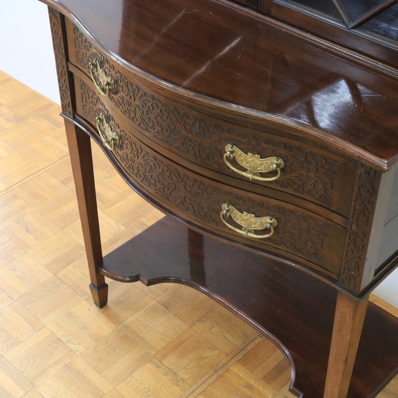 1910年代、マホガニー材のグラスキャビネット。