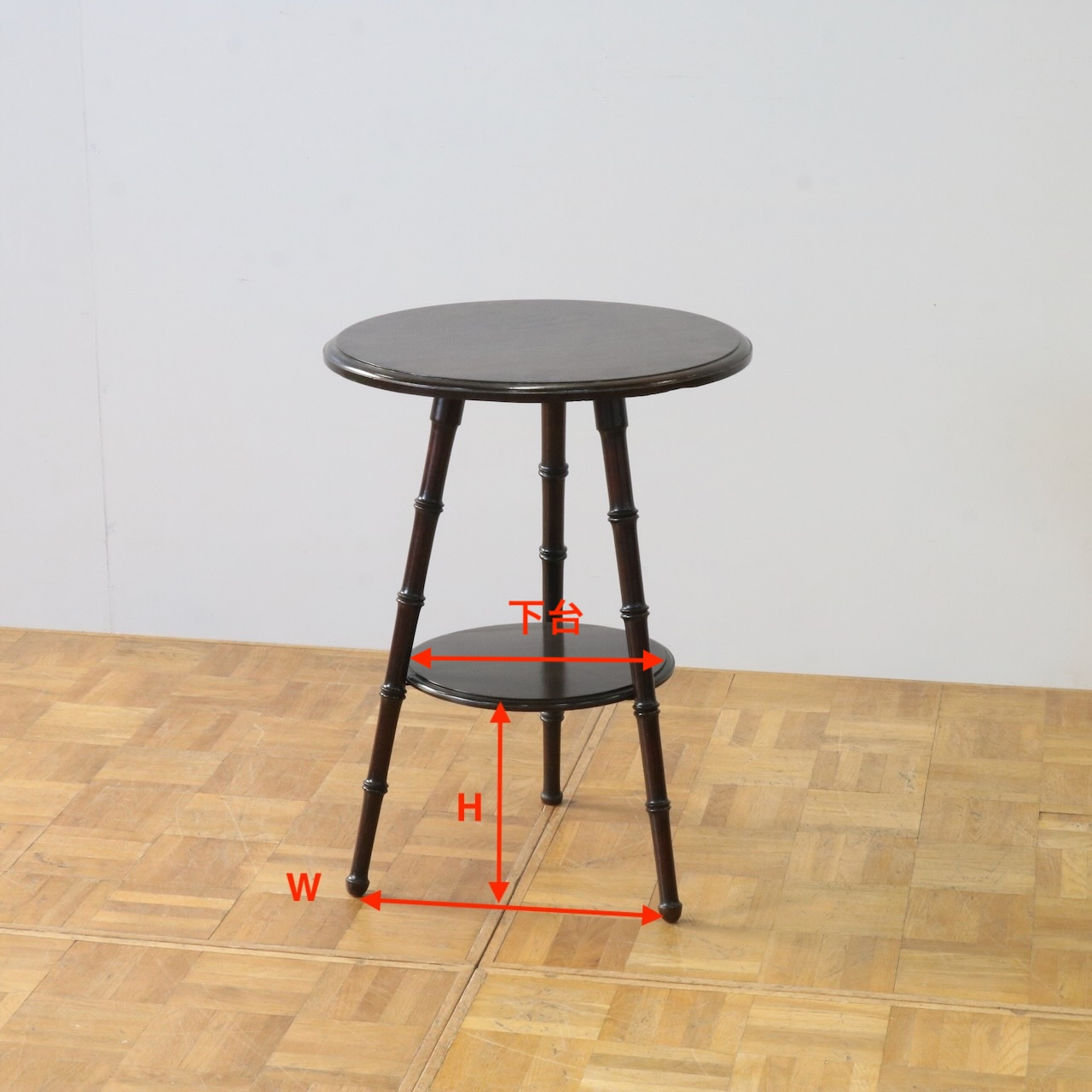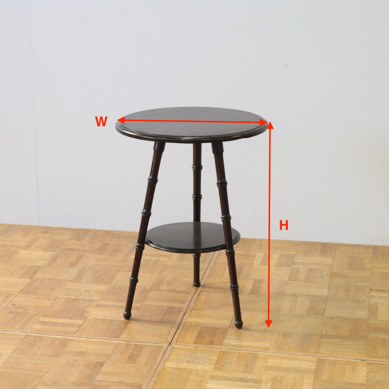 配送料の目安 ▶︎1920年代、マホガニーのオケージョナルテーブル。丸い天板の下には同じく丸い棚板が備え付けられており、2段で使えるユニークなデザイン。コンパクトなサイズ感なのでソファやベッドサイド等に、又は観葉植物を飾る花台としても活躍できそうです