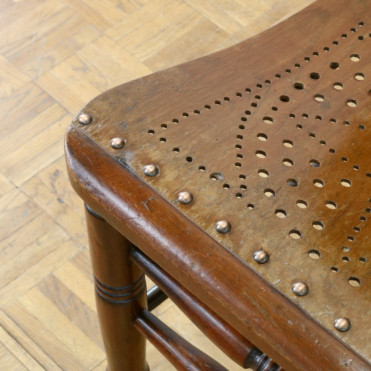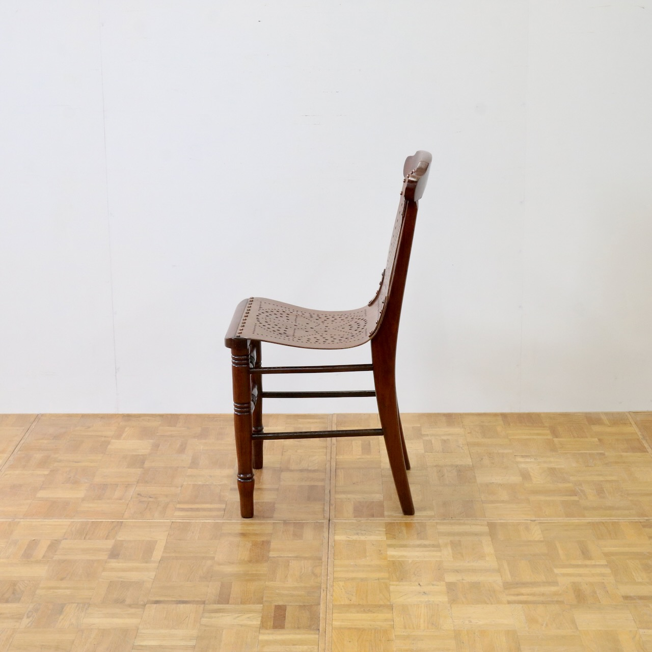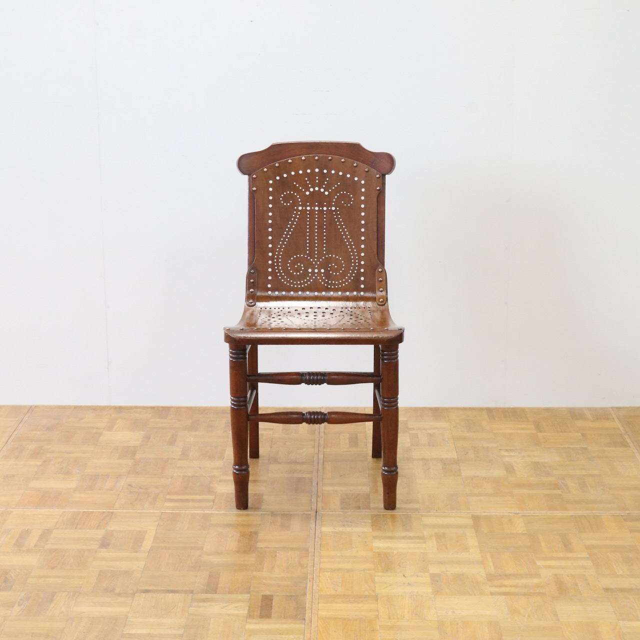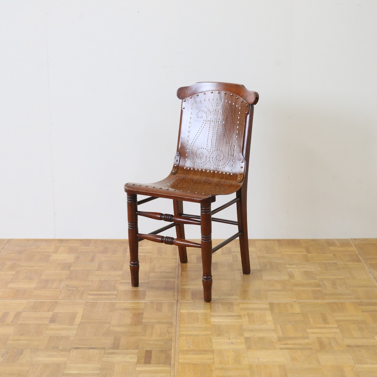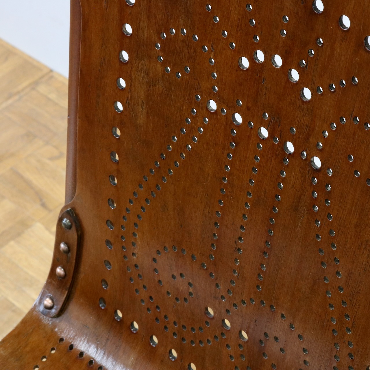 背もたれと座面には、無数の小さな穴が幾何学的なパターンで丁寧に施された