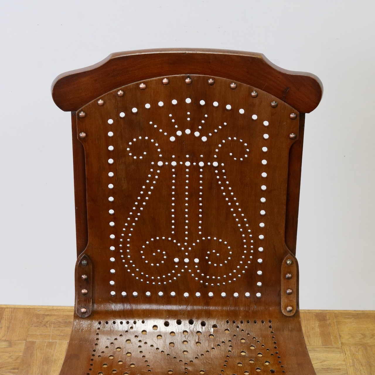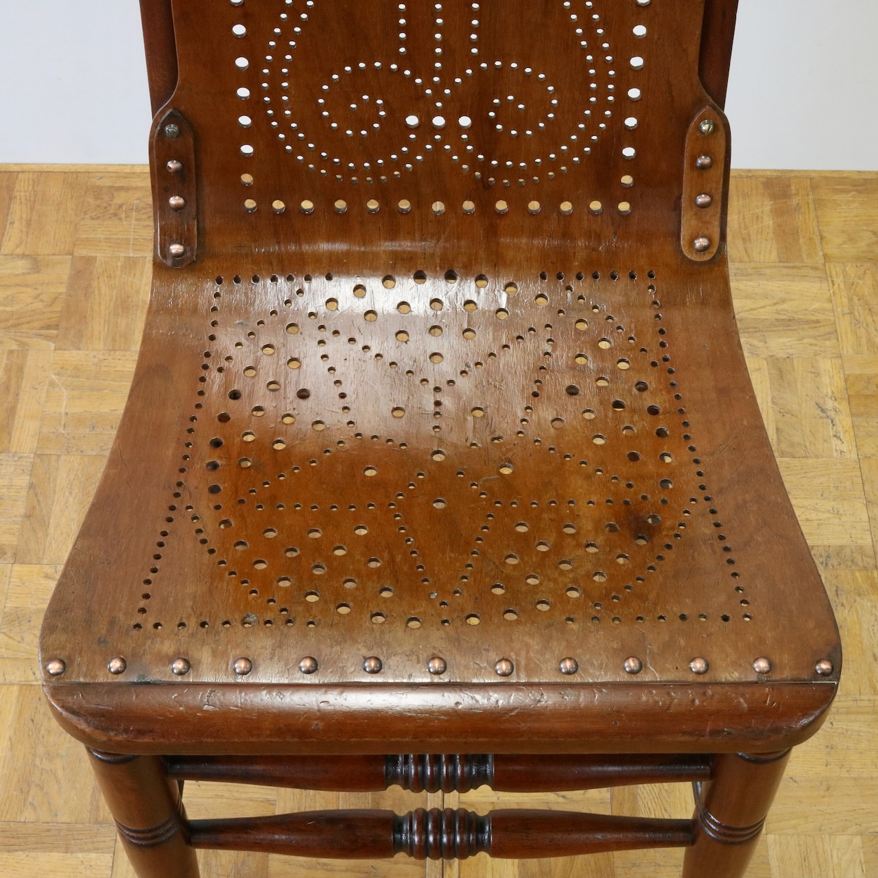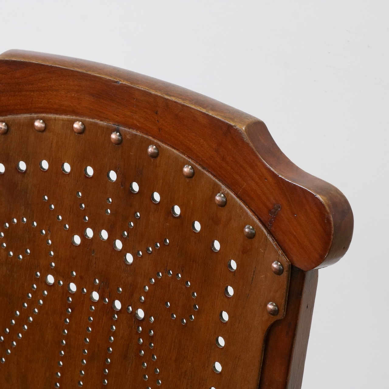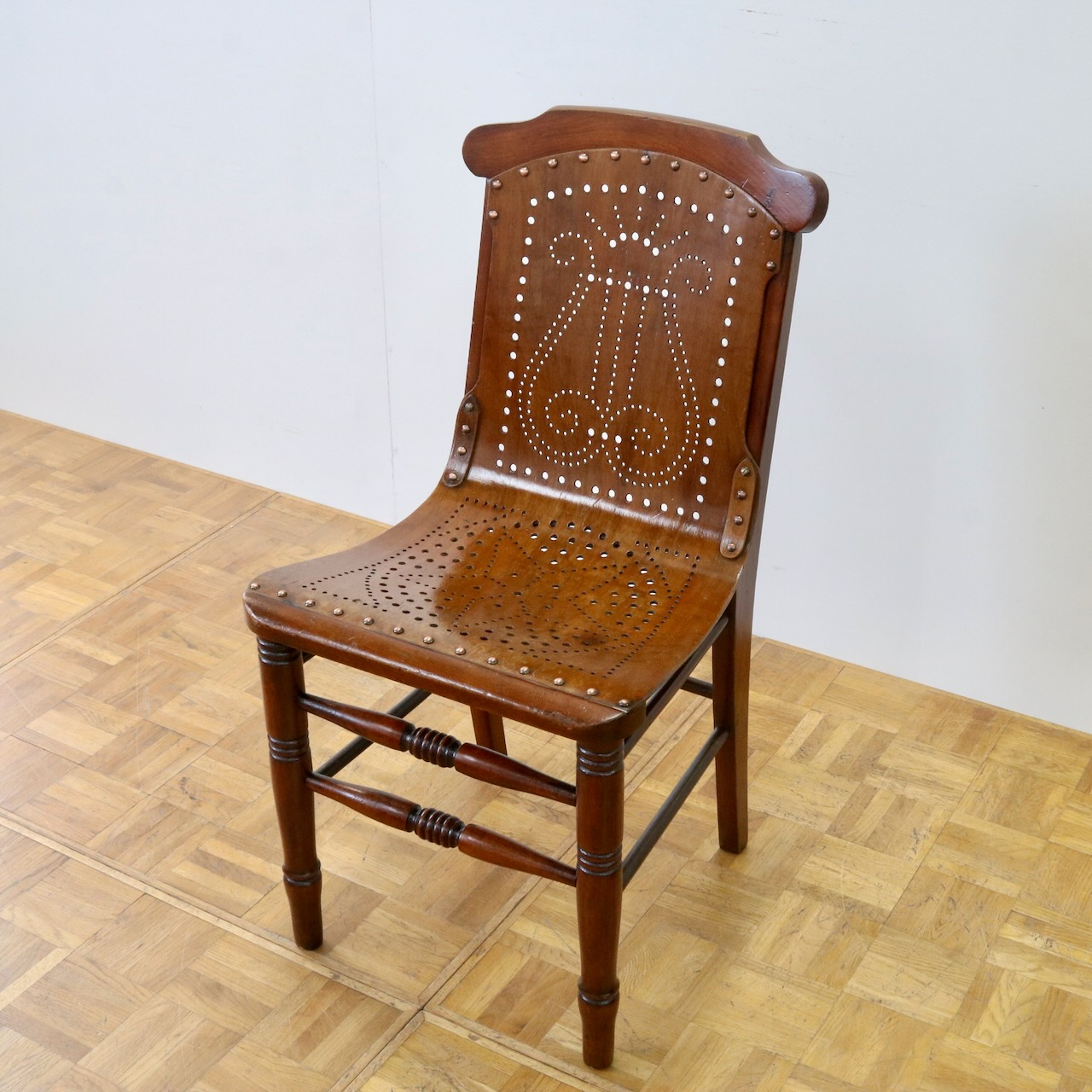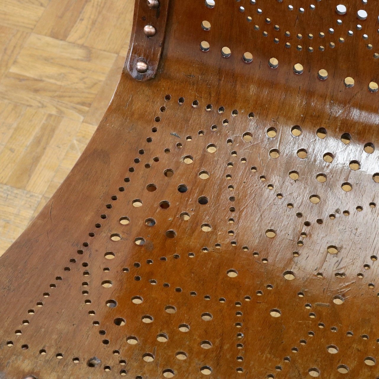背もたれと座面には、無数の小さな穴が幾何学的なパターンで丁寧に施された