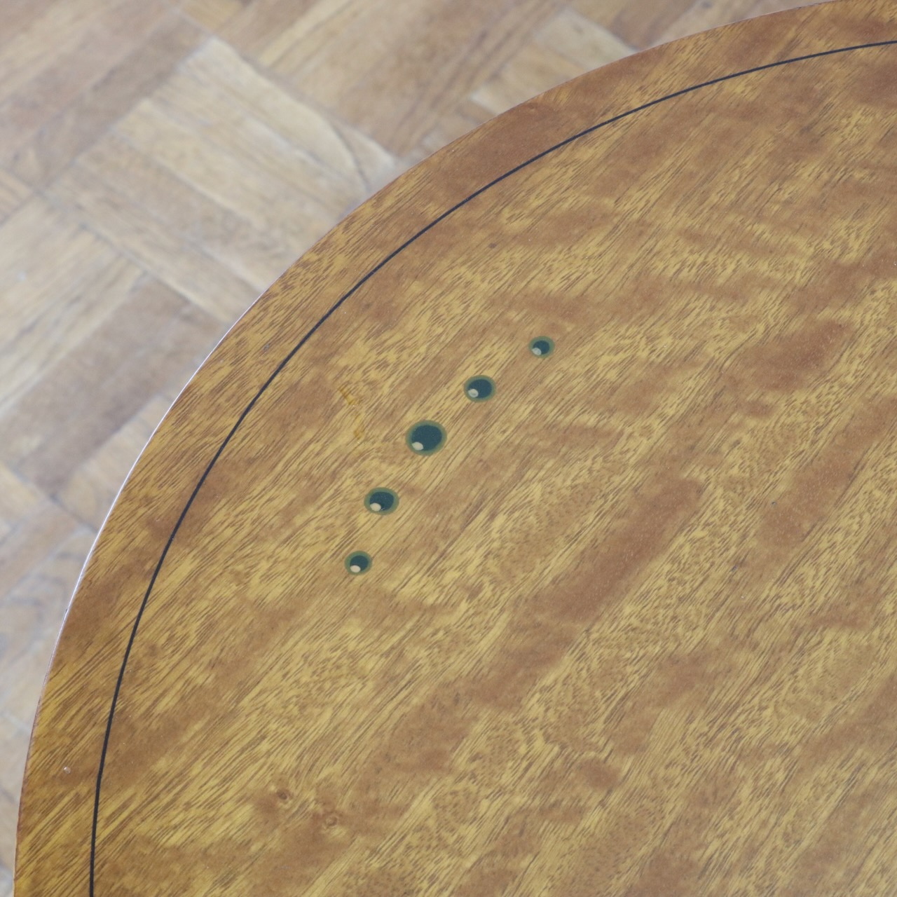 天板にはサテンウッドならではの生地の揺らぎのような木目が浮かび上がります。