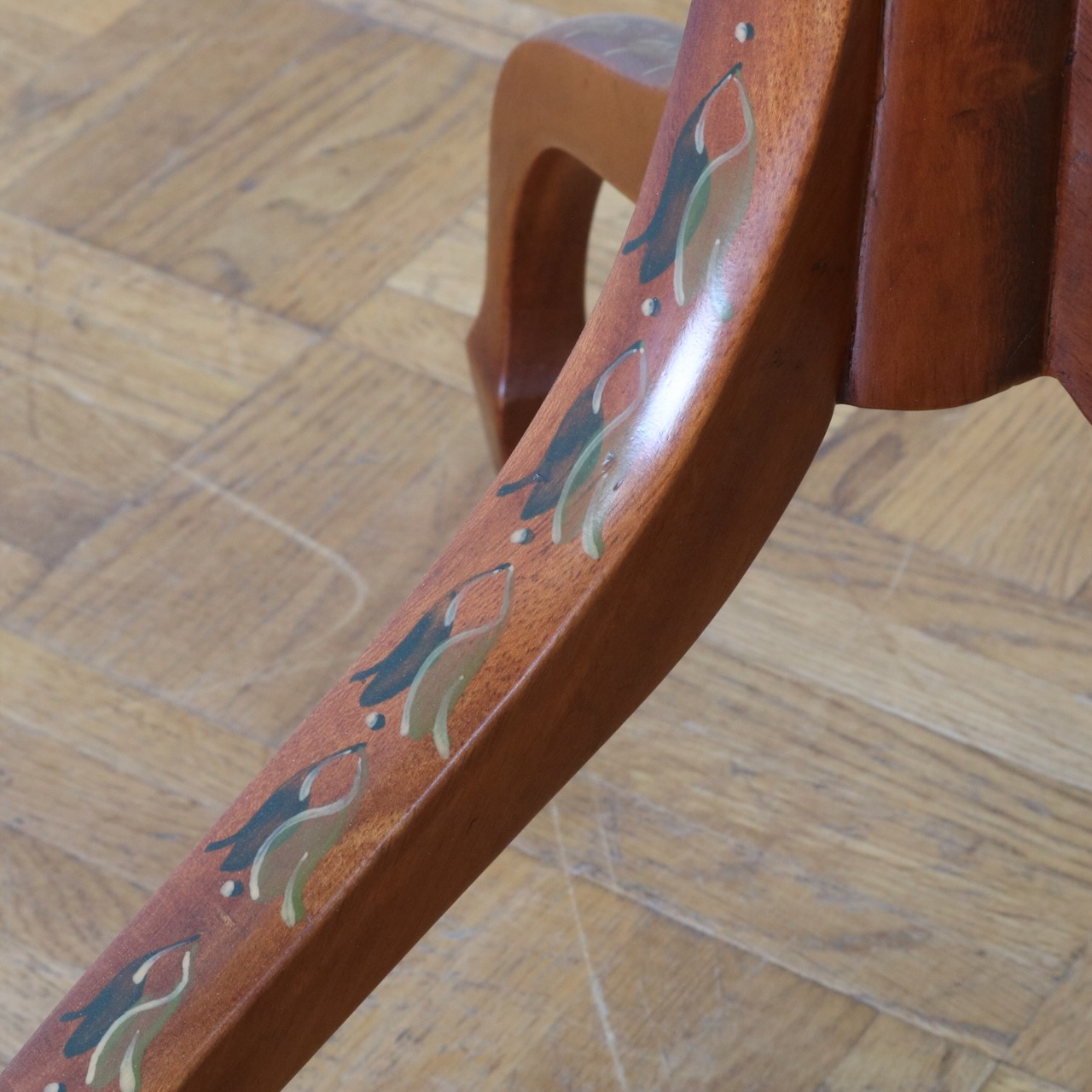 葉の彫刻部分にも絵付けがされています。