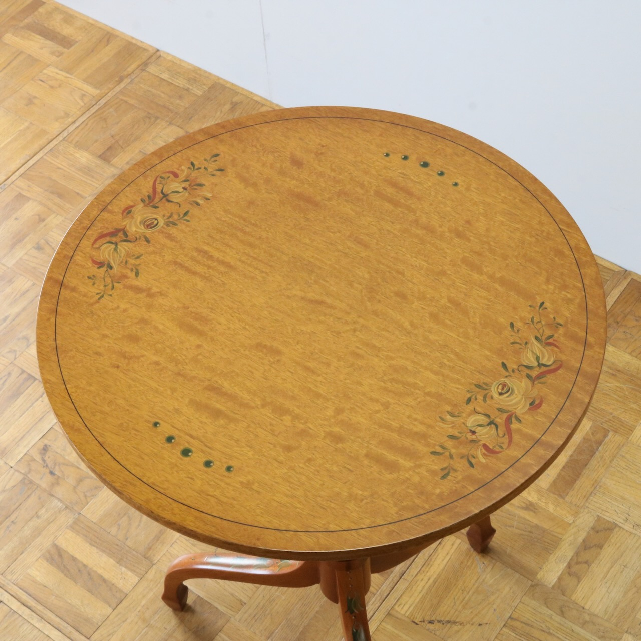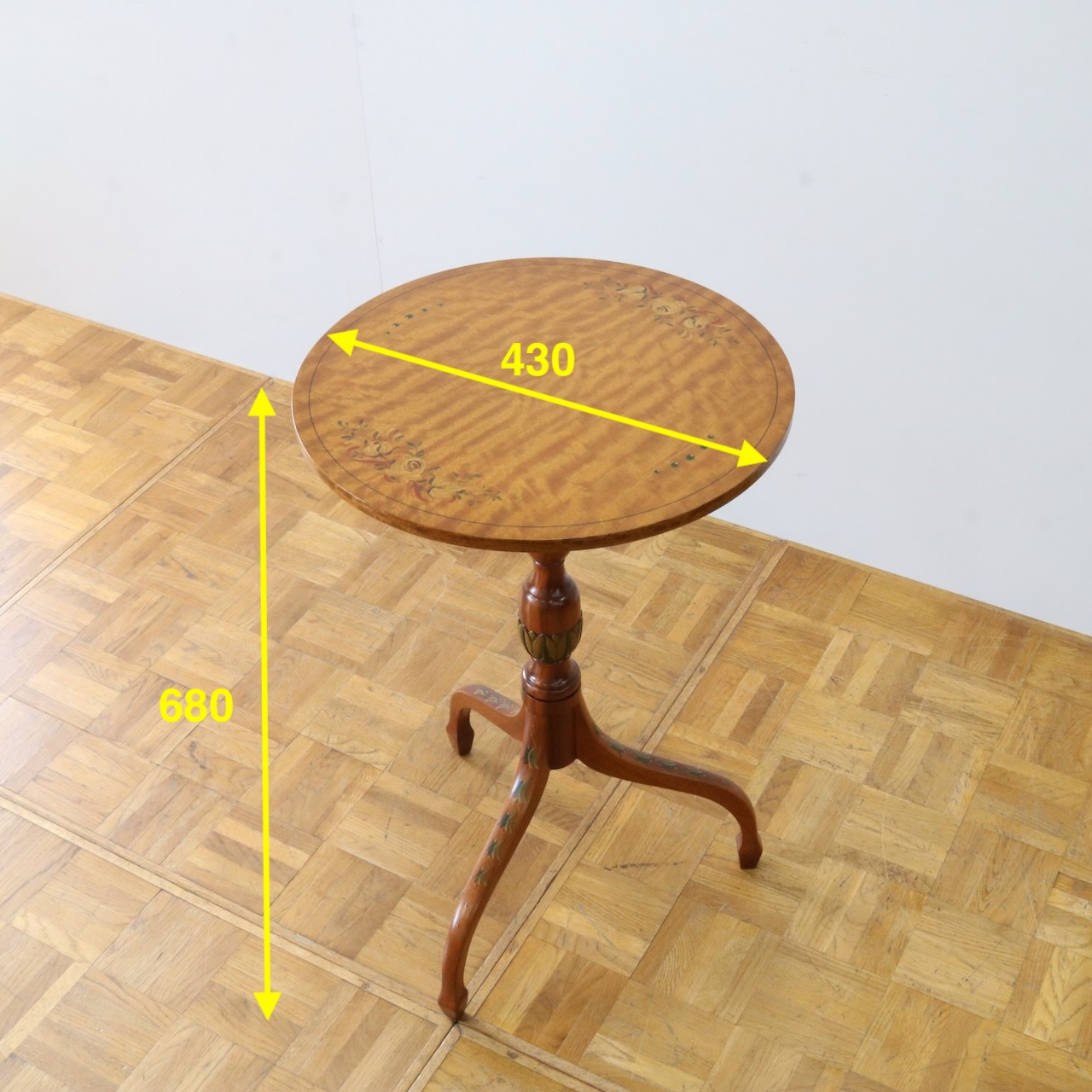 華奢でエレガントなトライポッドの脚にも小さくペイントが入った可愛らしいテーブルです。