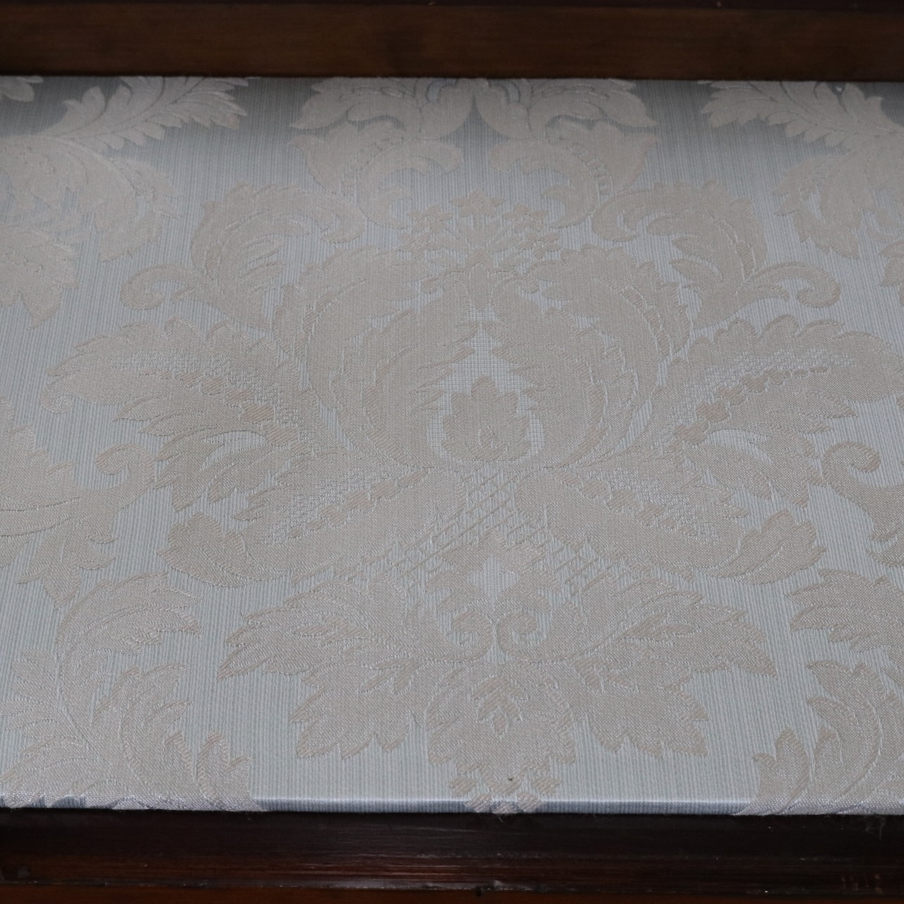 底板はガラス板の下に淡い水色のダマスク文様が描かれた生地が敷かれています。