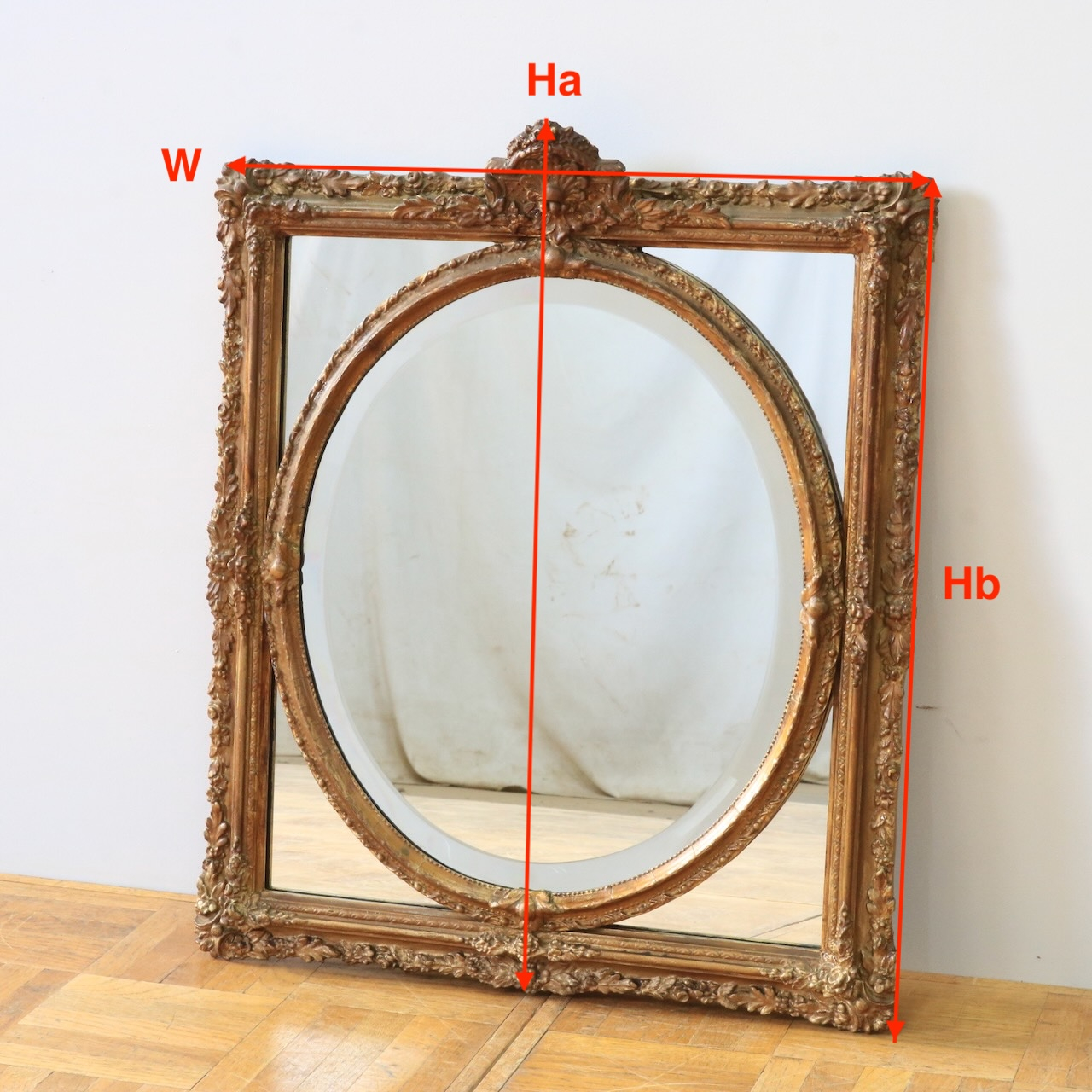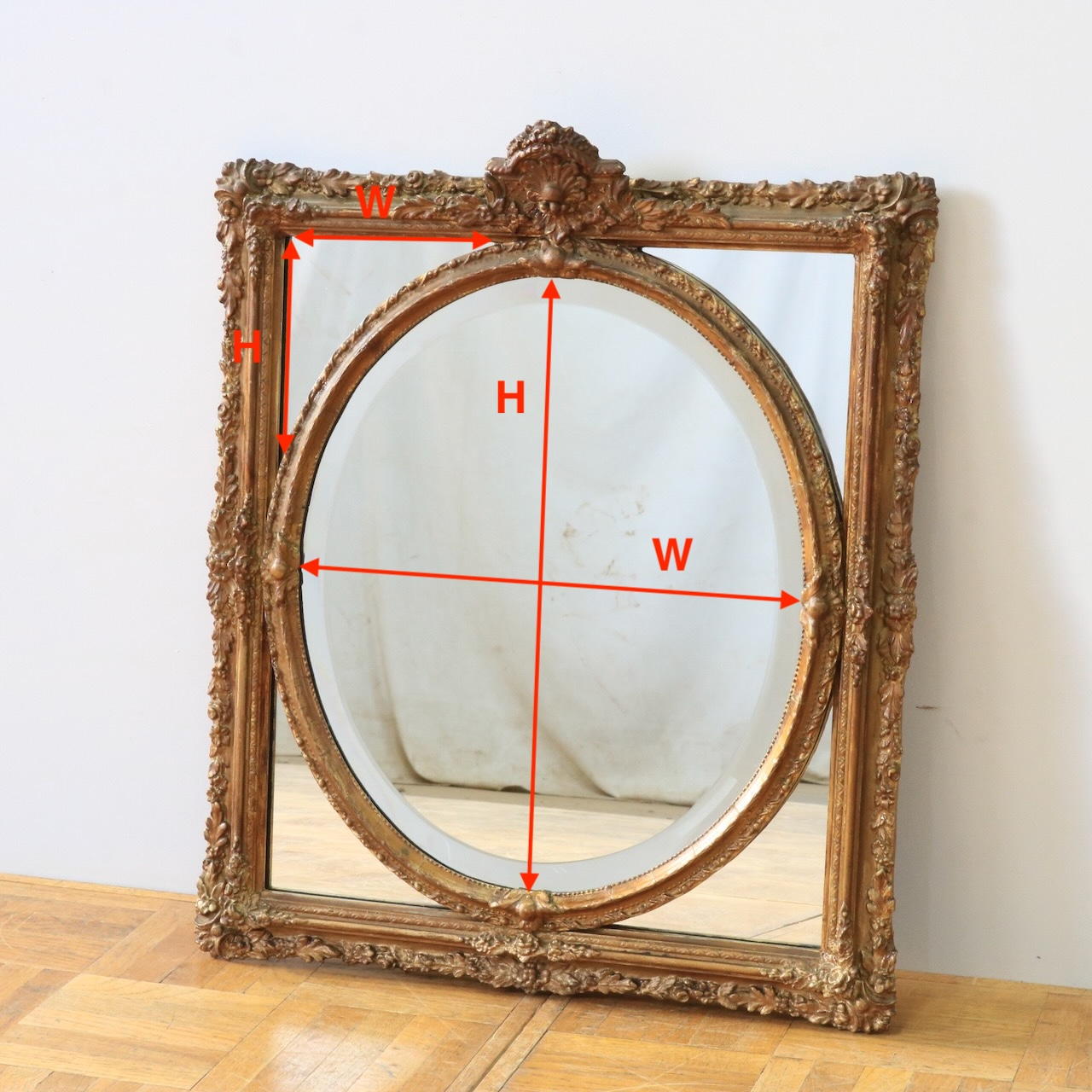 1890年代ヴィクトリアンのデコラティブなフレームが美しいウォールミラー。壁面のアクセントになるデザインです。
