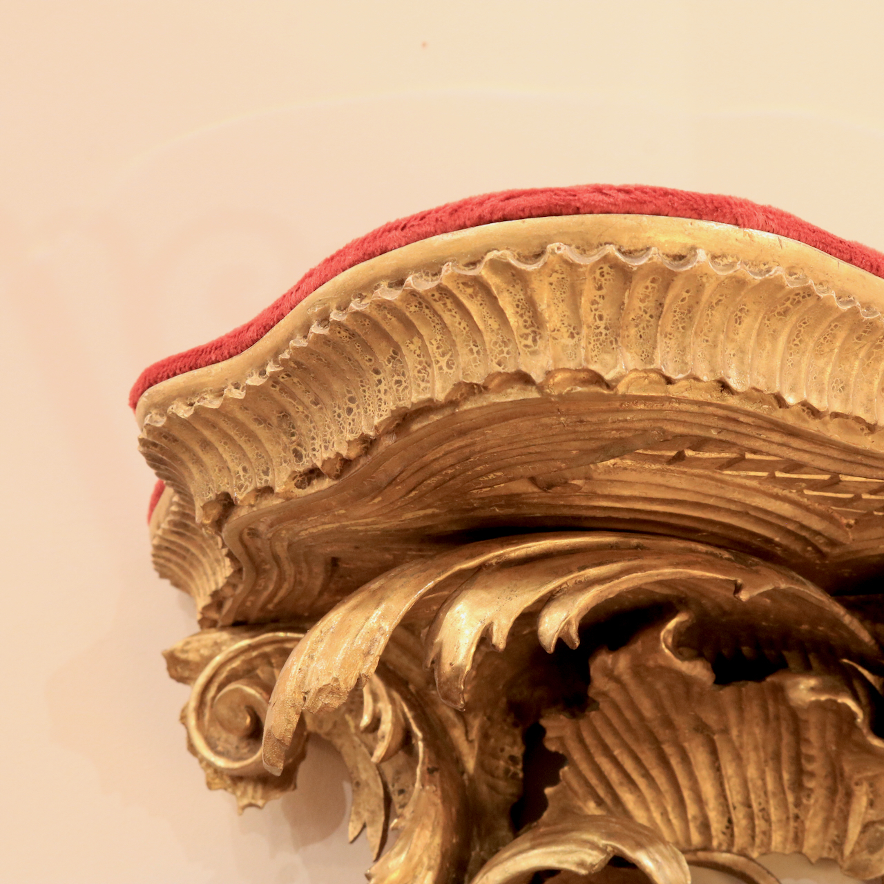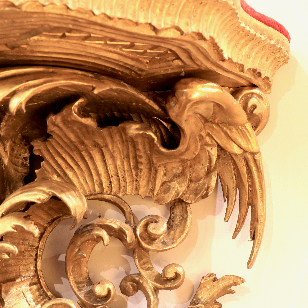 貝殻や羽根、アカンサスに花といったモチーフがそれぞれ見事に造形されています。どの角度から見ても美しく、絵になるウォールシェルフです。