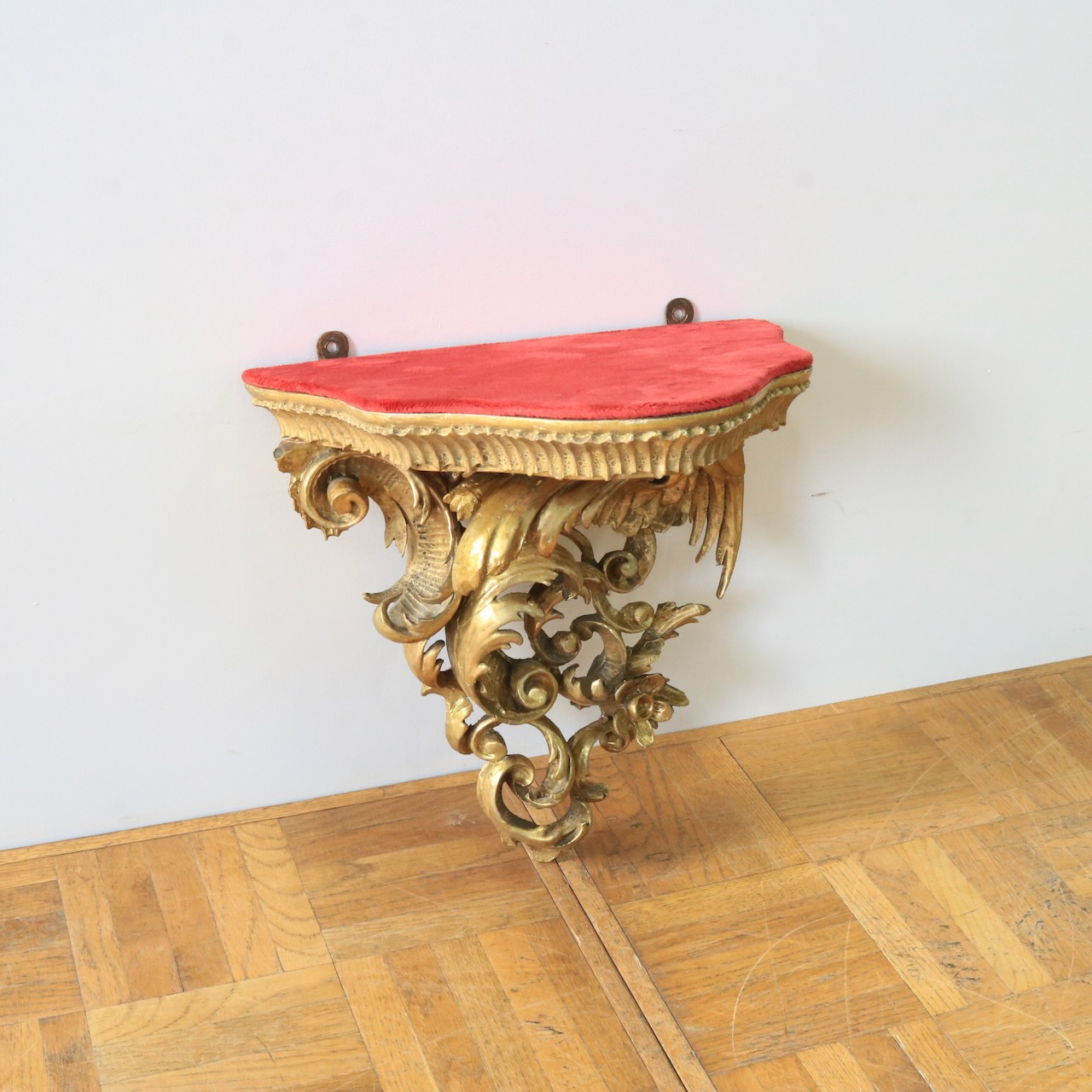 1890年代ヴィクトリアンのウォールシェルフ。花とロカイユ、アカンサスが絡む華やかなデザイン。壁面のアクセントにいかがでしょうか。