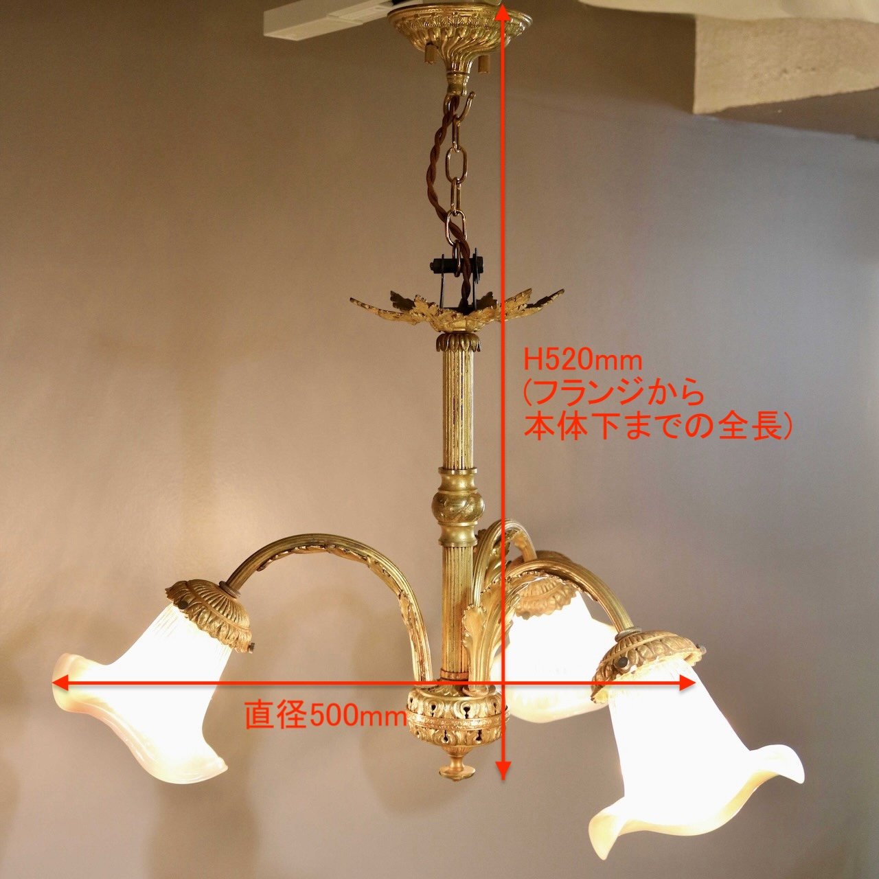 細やかな装飾が施された美しい3灯シャンデリアです。