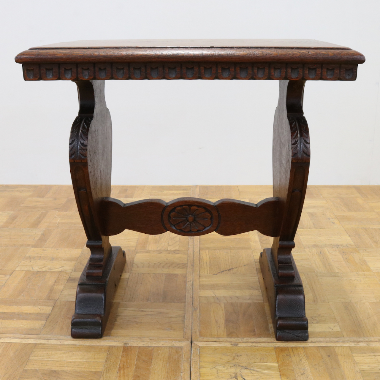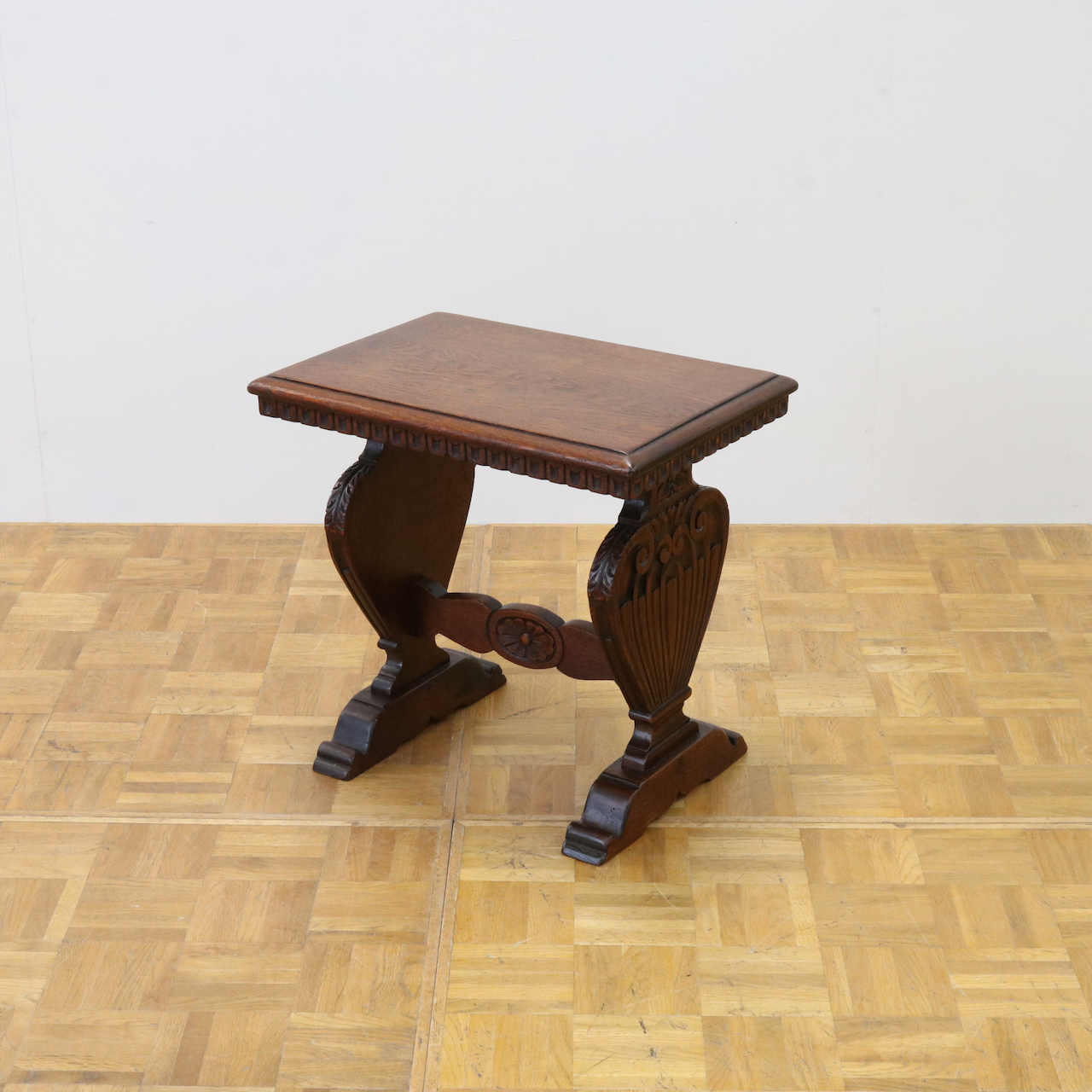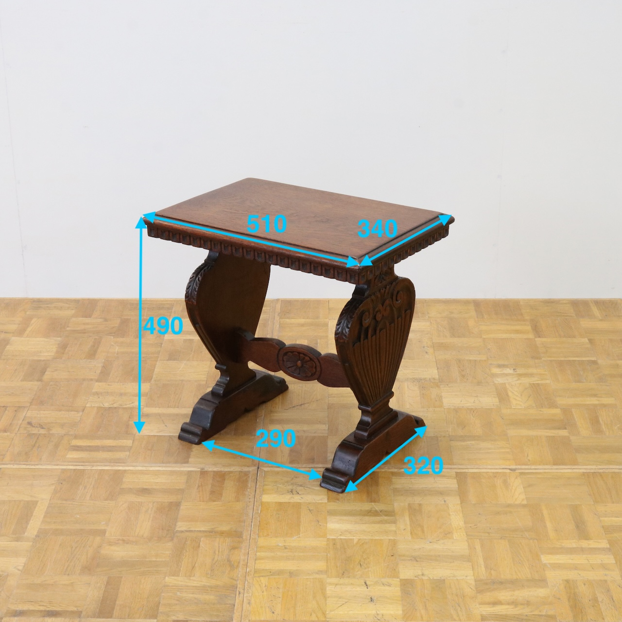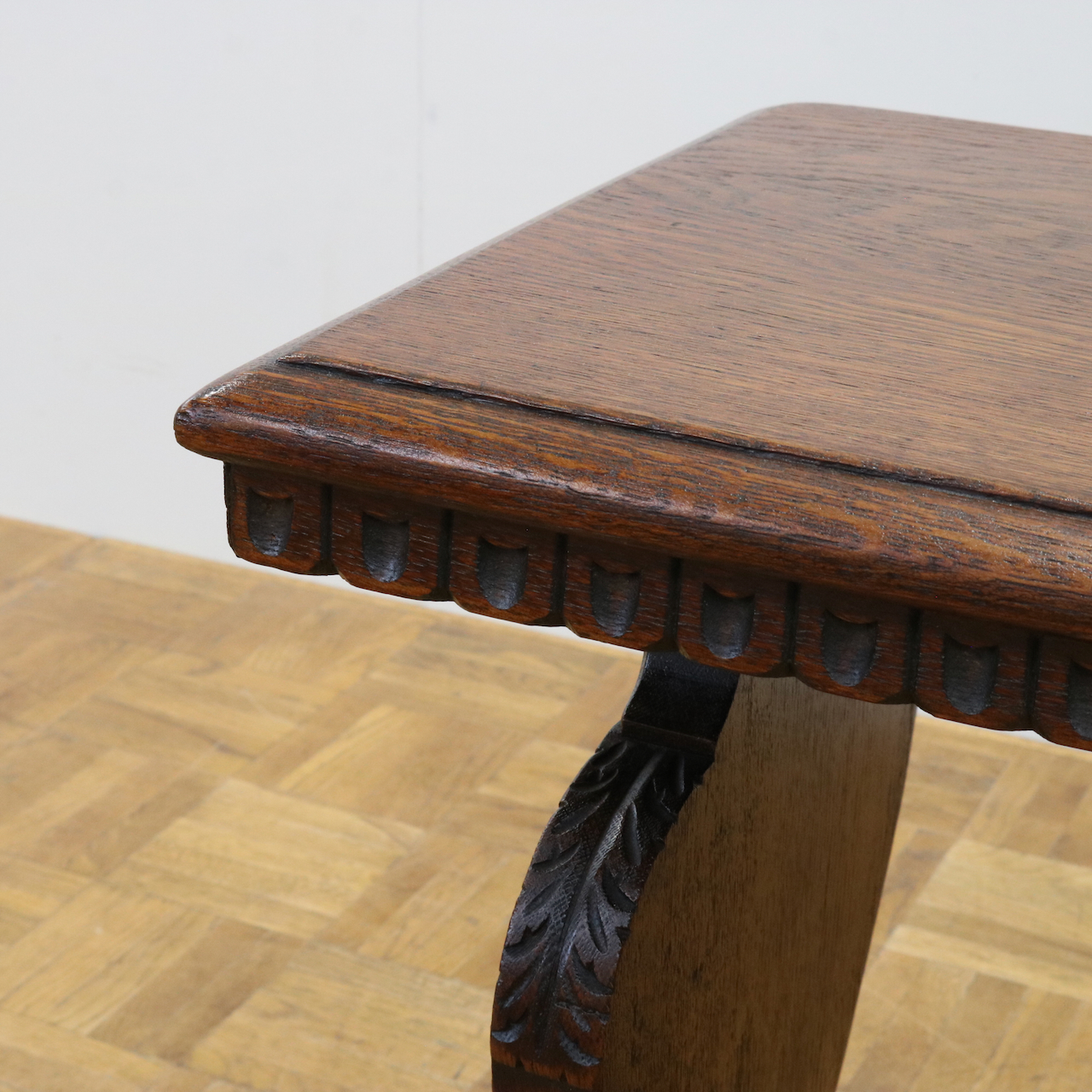 天板縁や脚周りに重厚なレリーフが施された印象的なひと品。