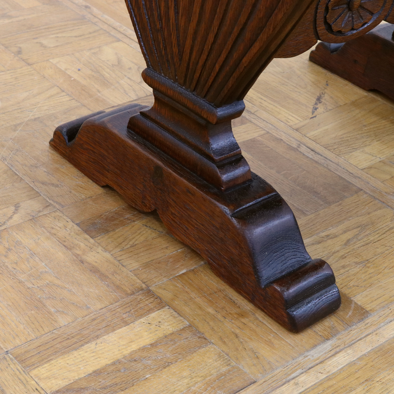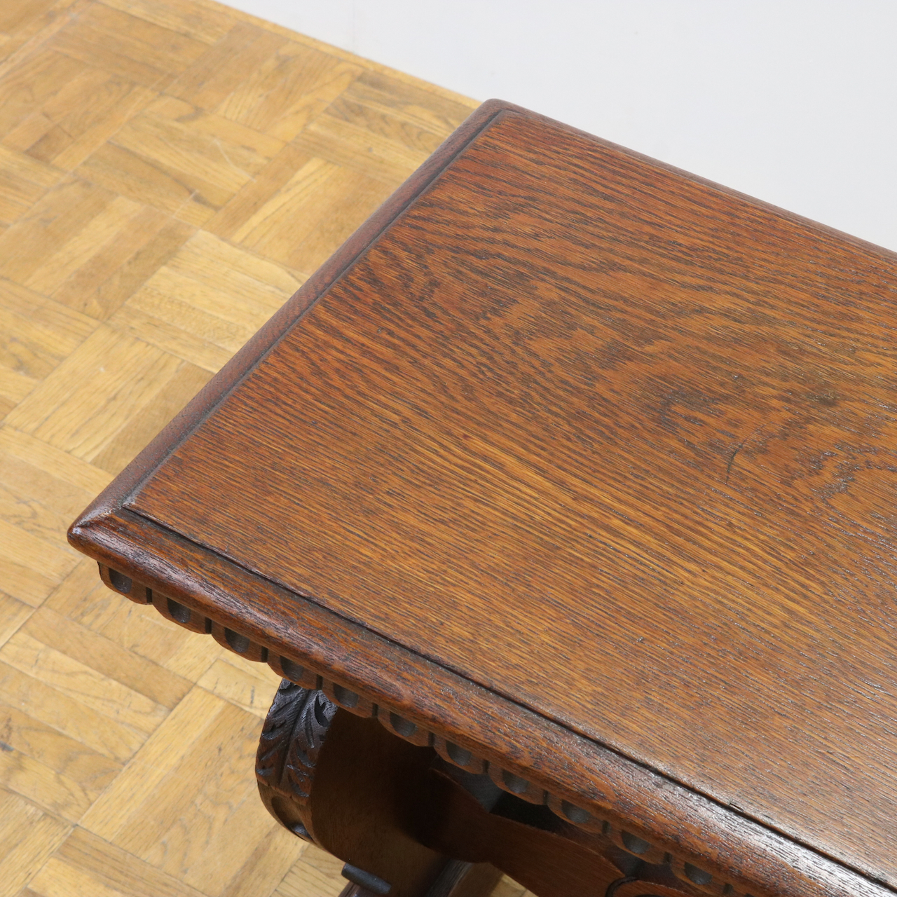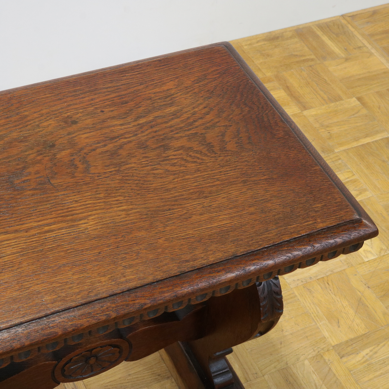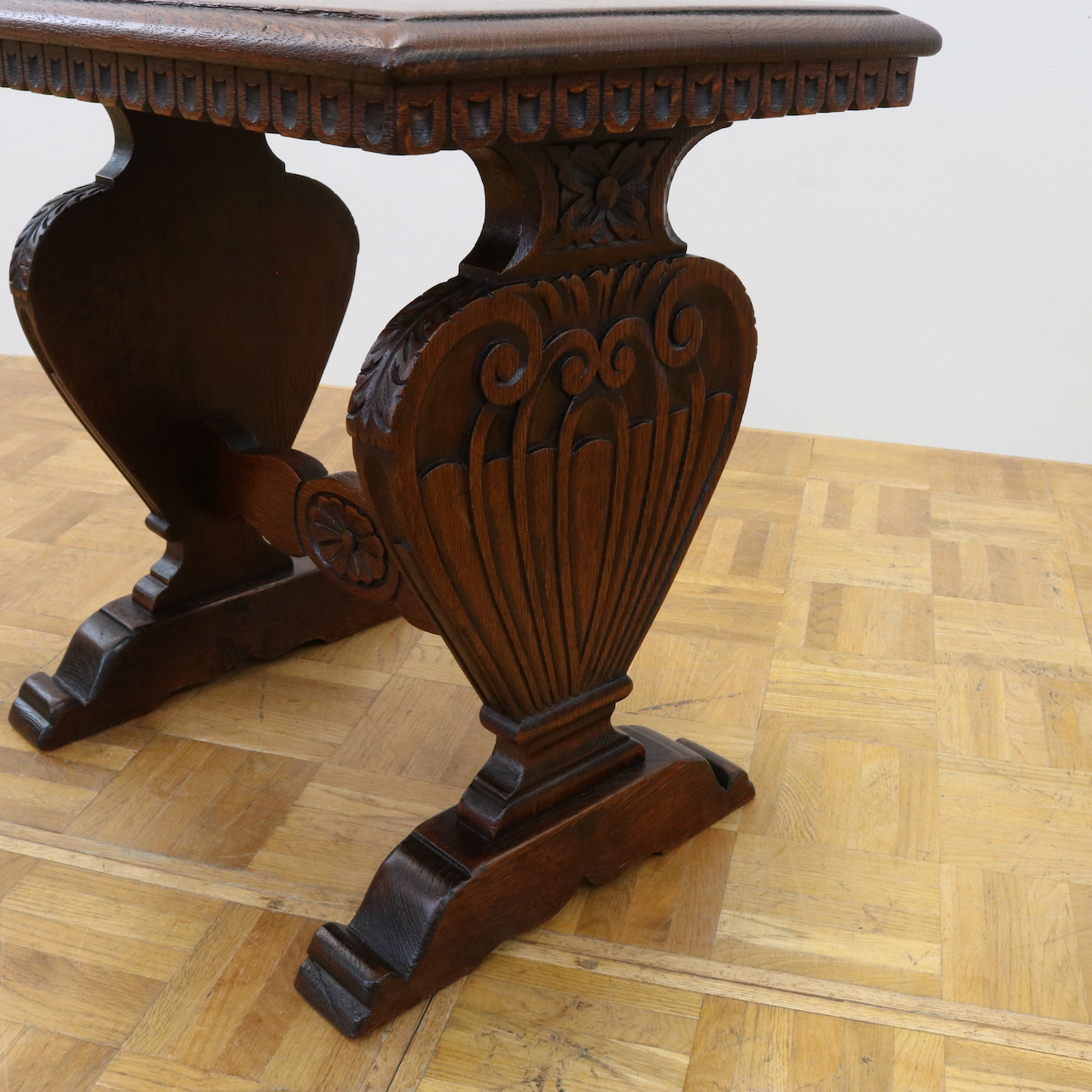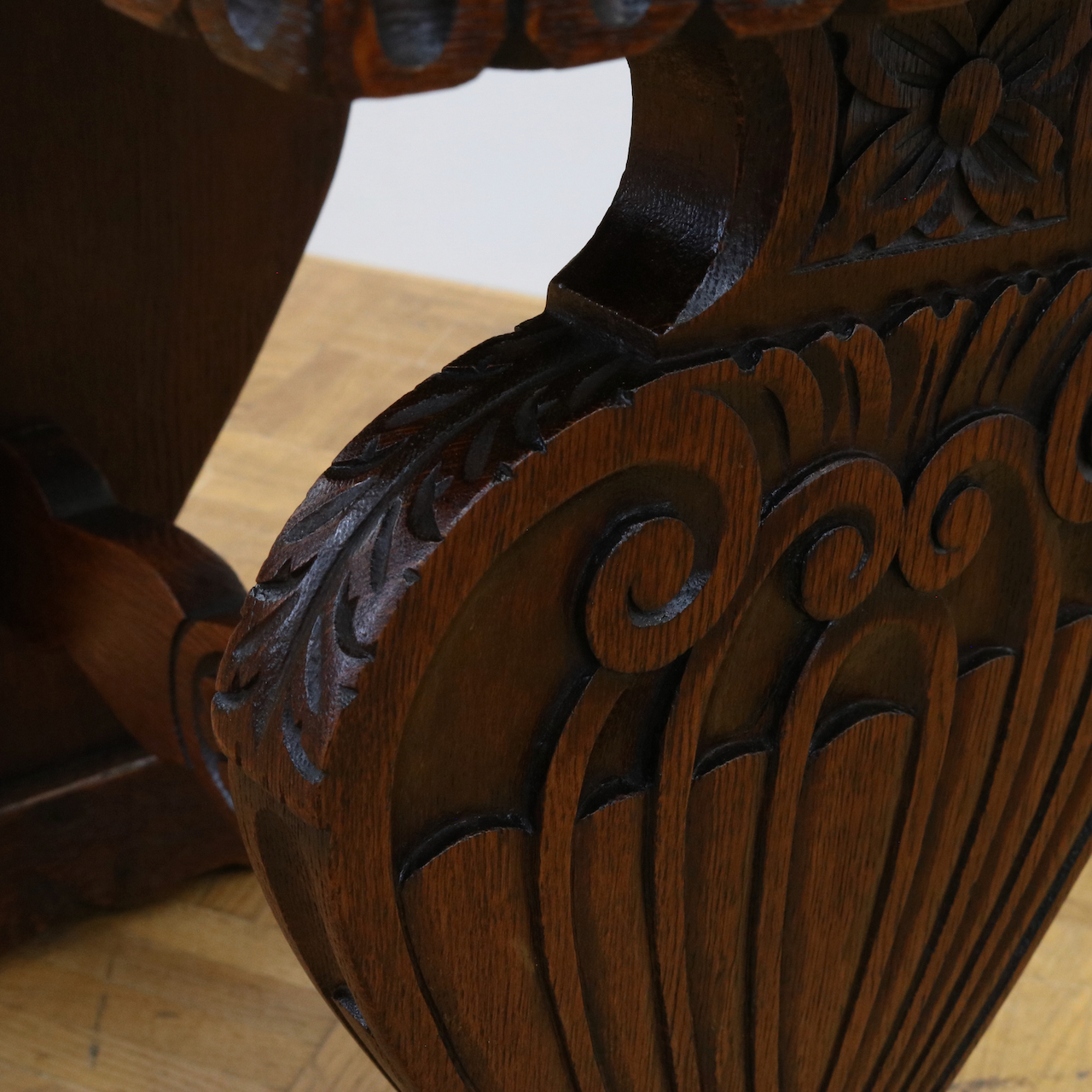 天板縁や脚周りに重厚なレリーフが施された印象的なひと品。