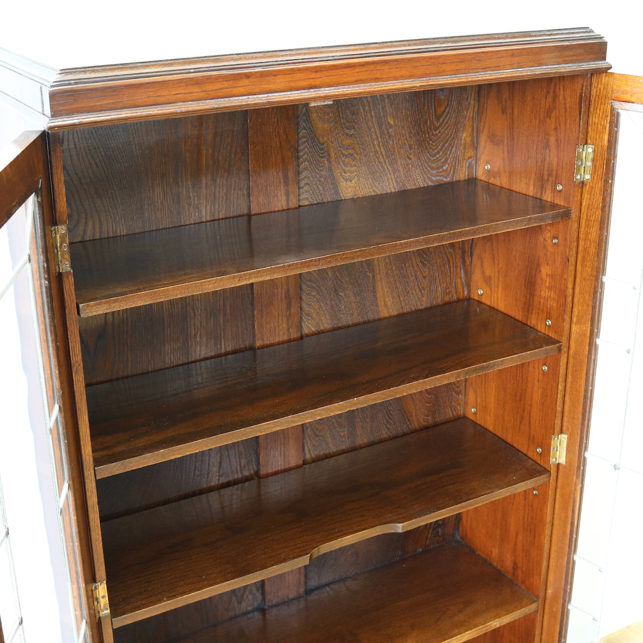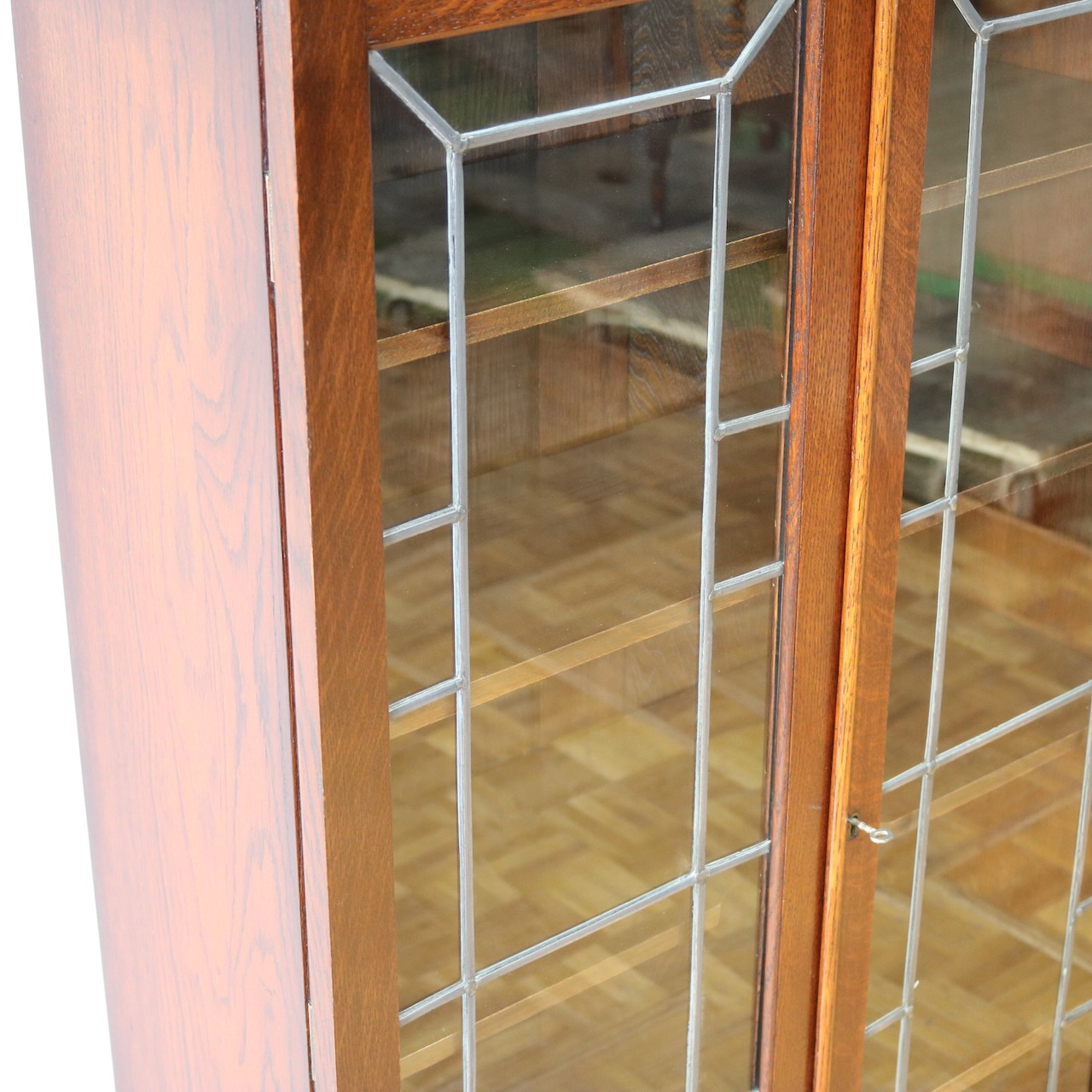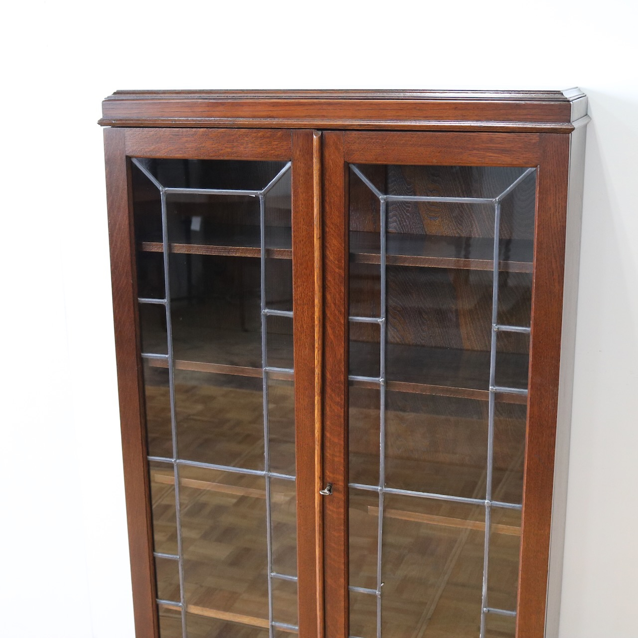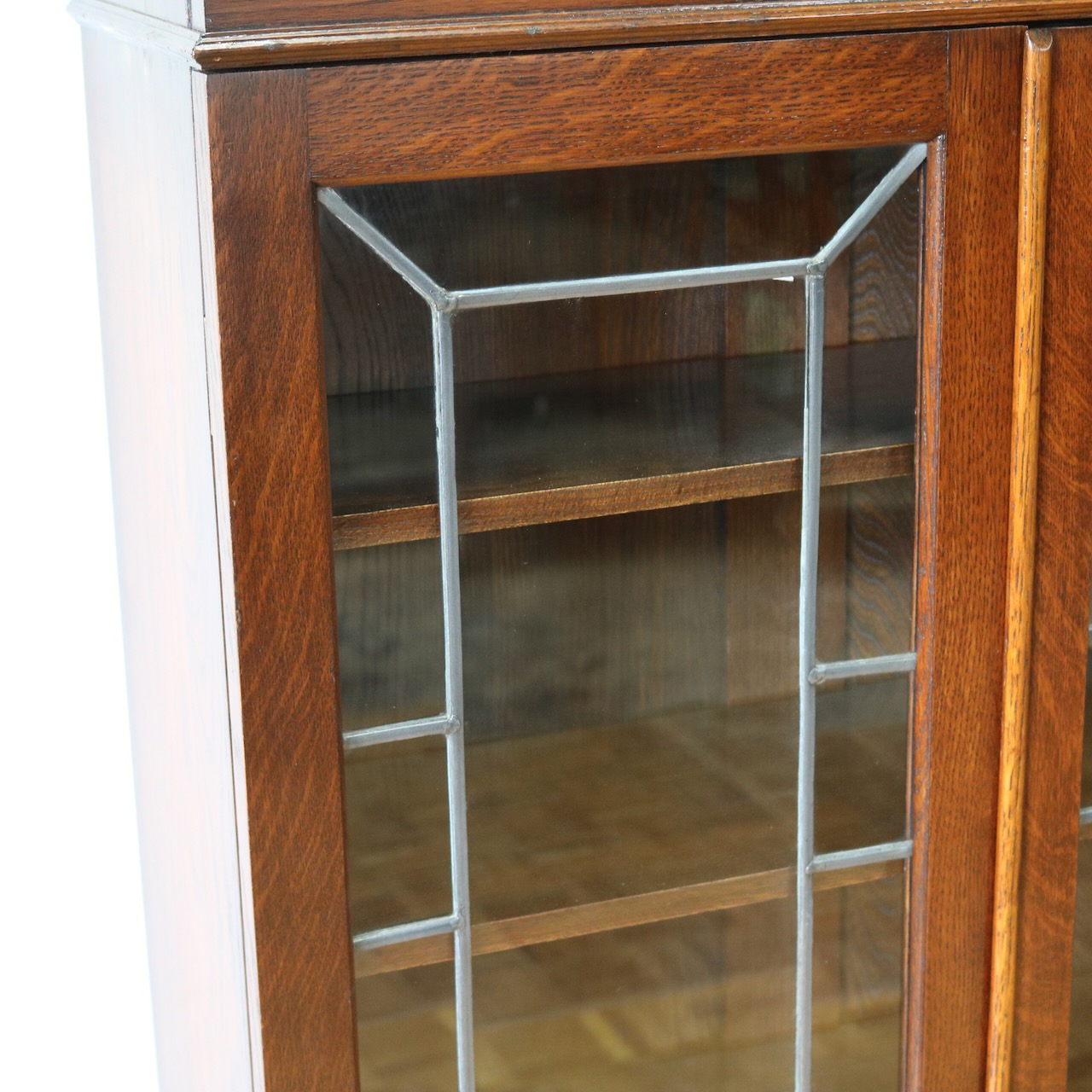 オーク材の素朴な質感と幾何学的なリーディッドガラスのデザインがマッチしています。