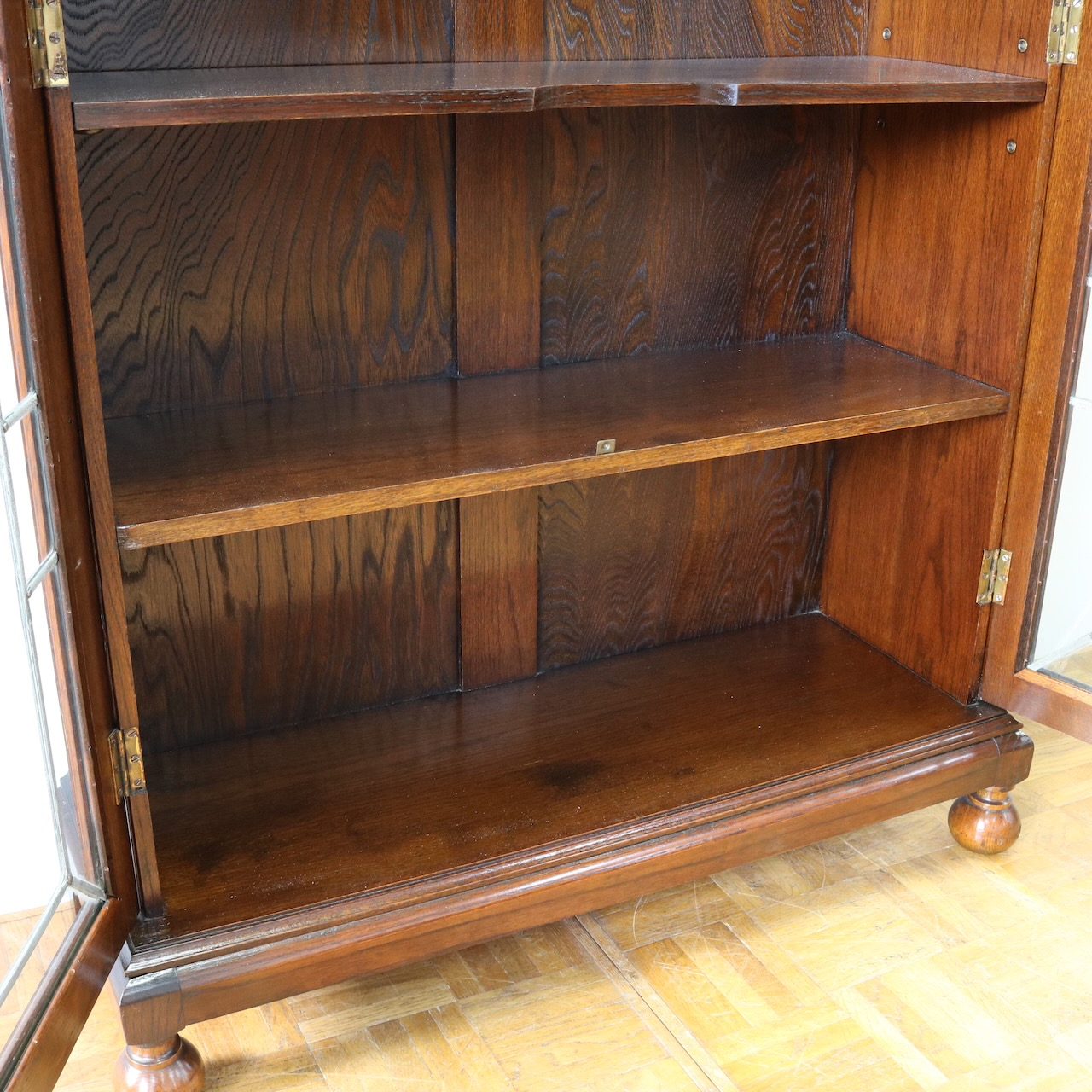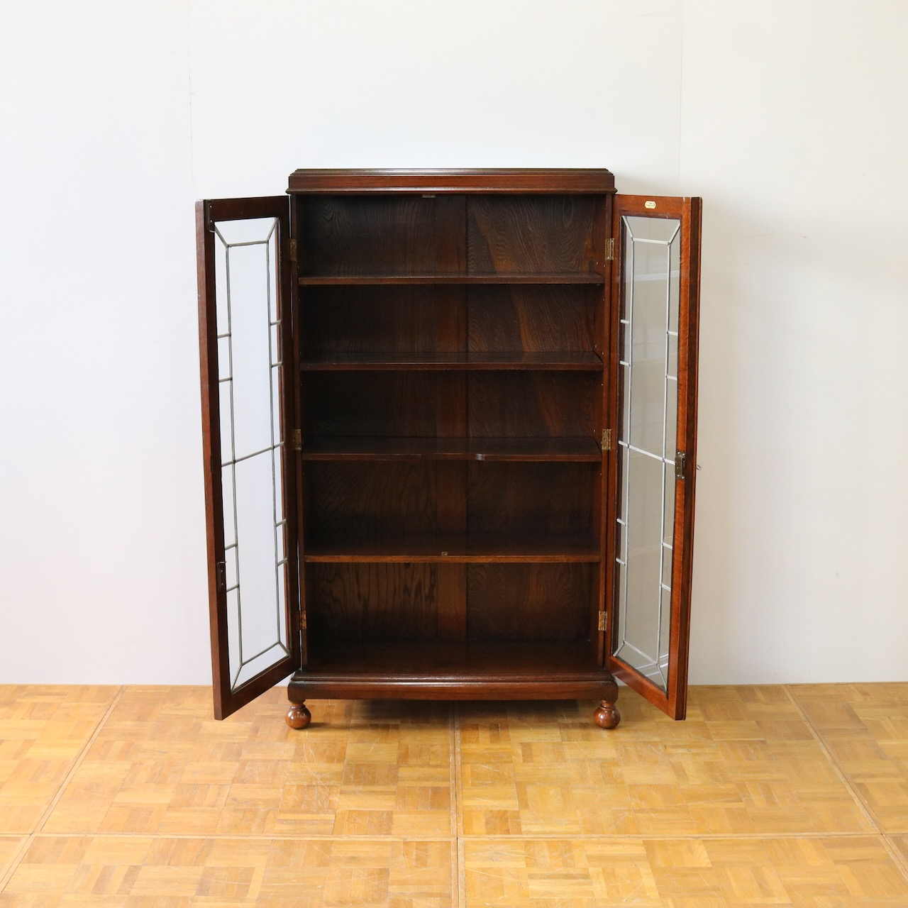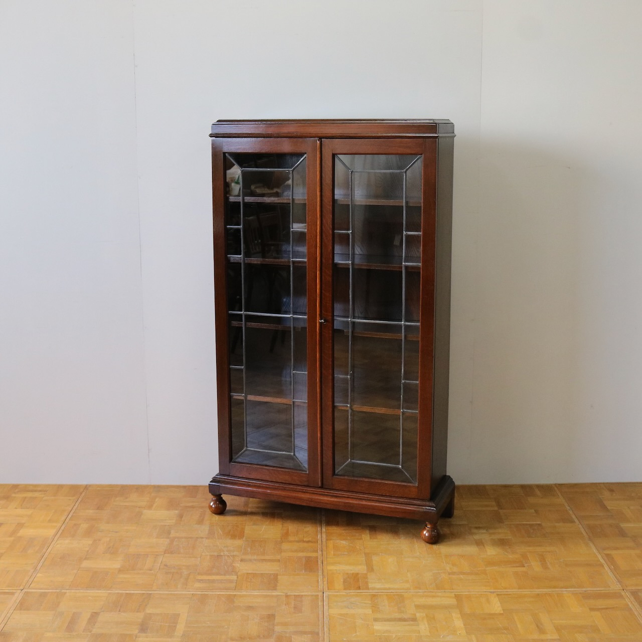 自社工房にて木工、塗装修理を施しました。ガラスはオリジナルのものを生かしています。