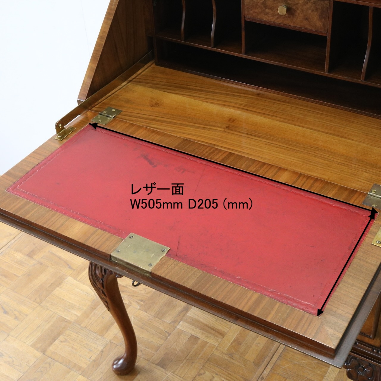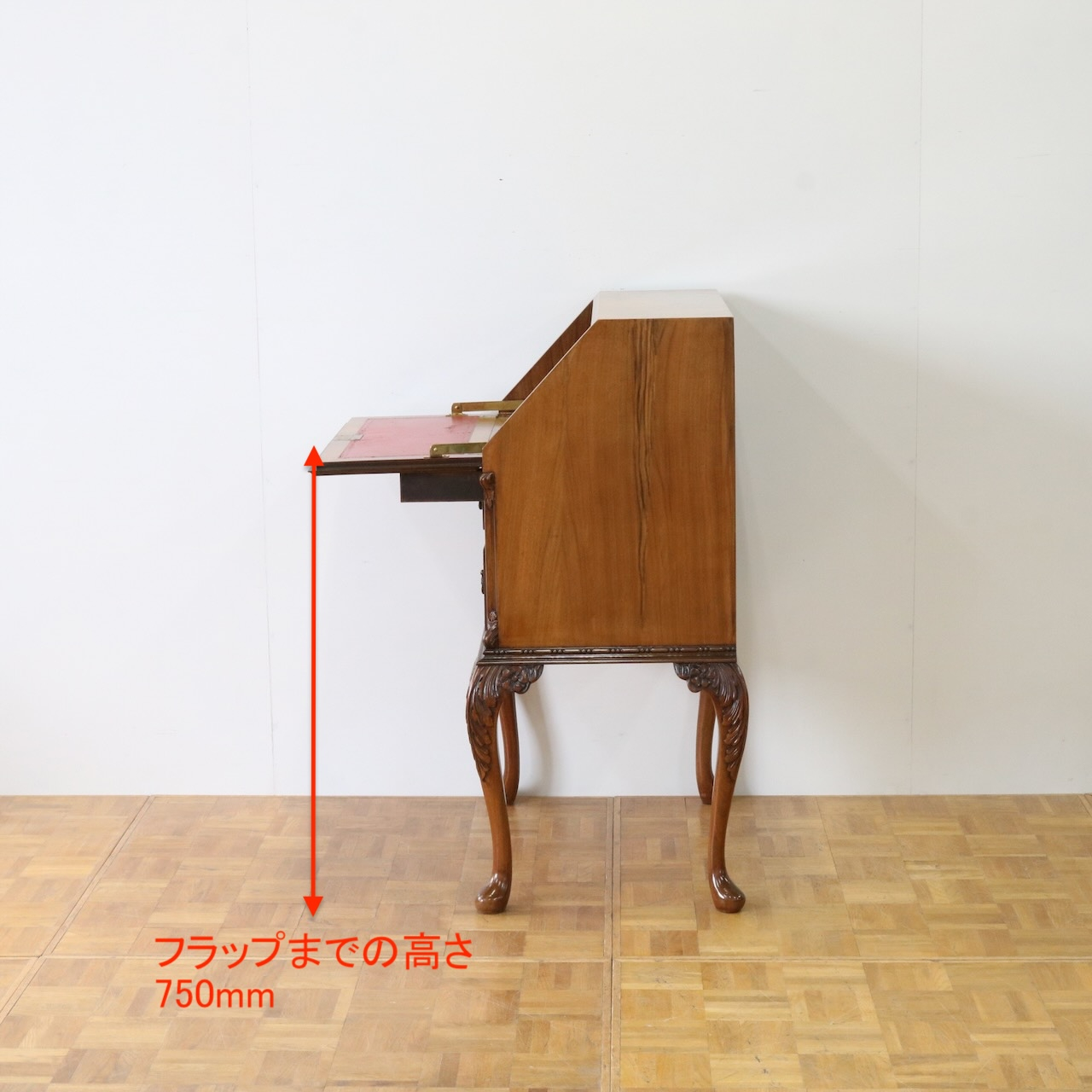 ウォールナットの深みのある木目、脚元のアカンサスとフラワーモチーフの彫刻など美しい意匠がポイントに施されています。お気に入りのアイテムで、充実したワークスペースに仕上がります。