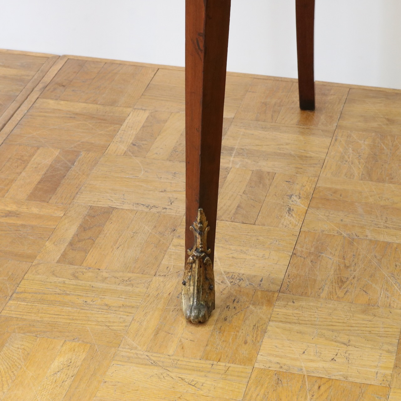 スラリとした美しい曲線を描く脚先は真鍮で飾られています。