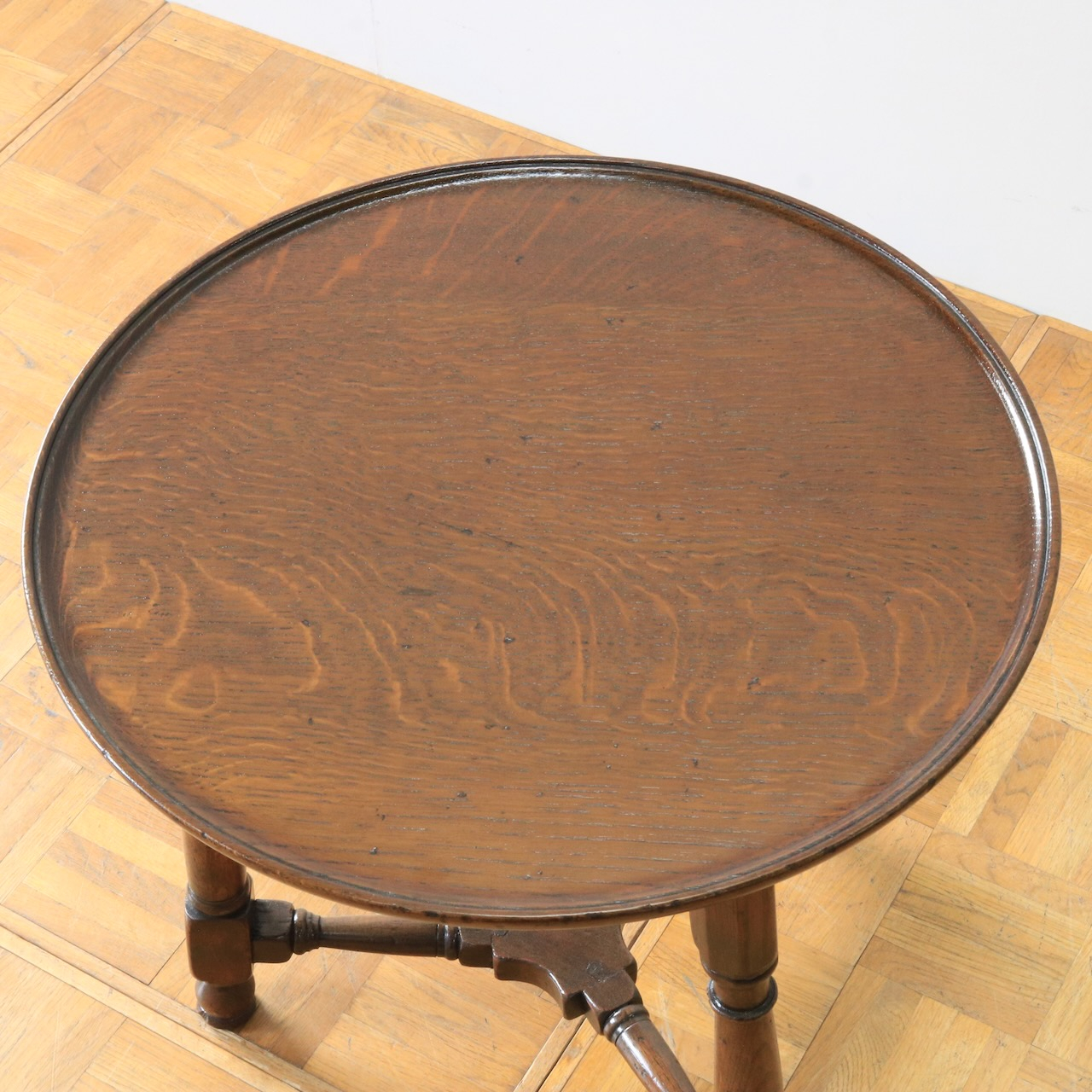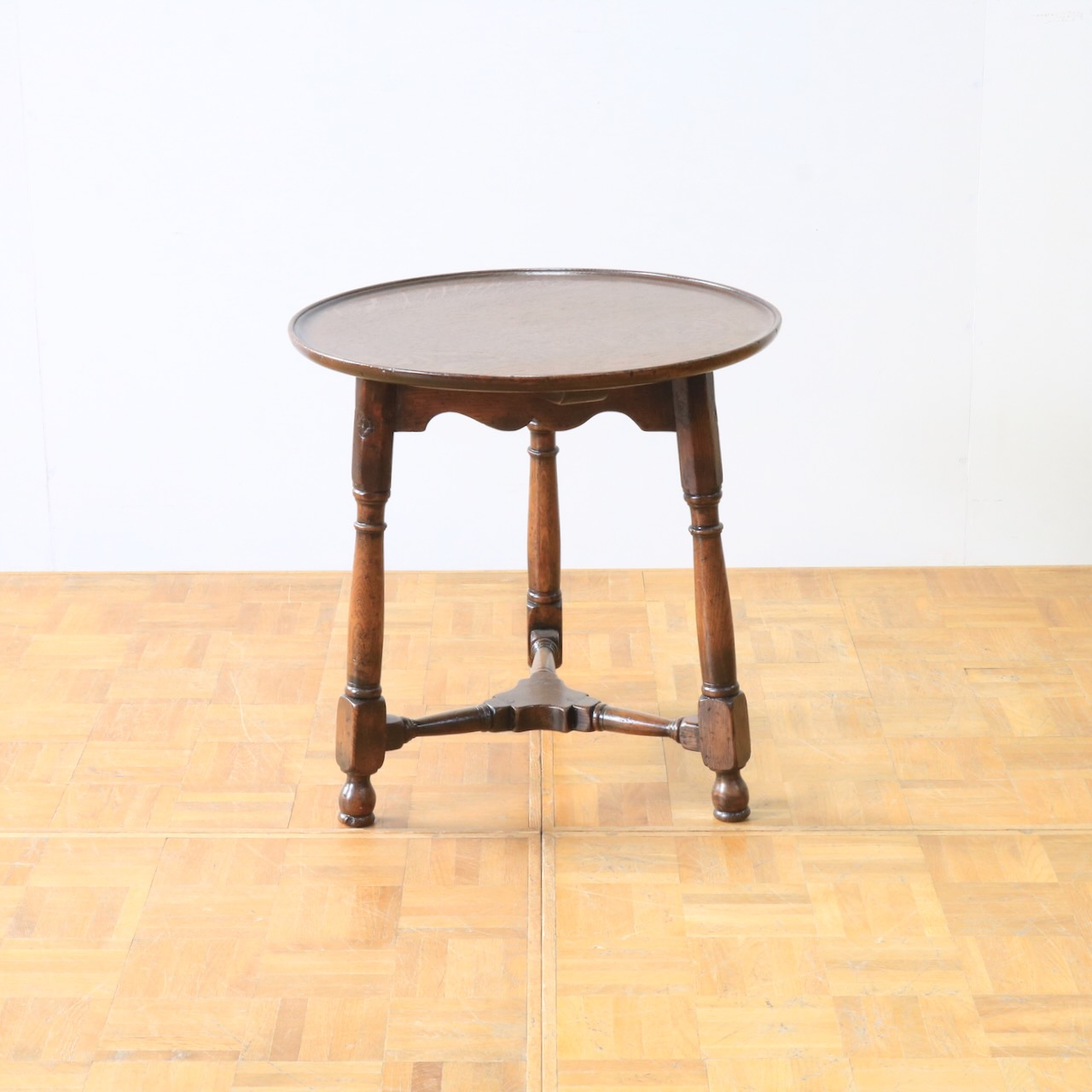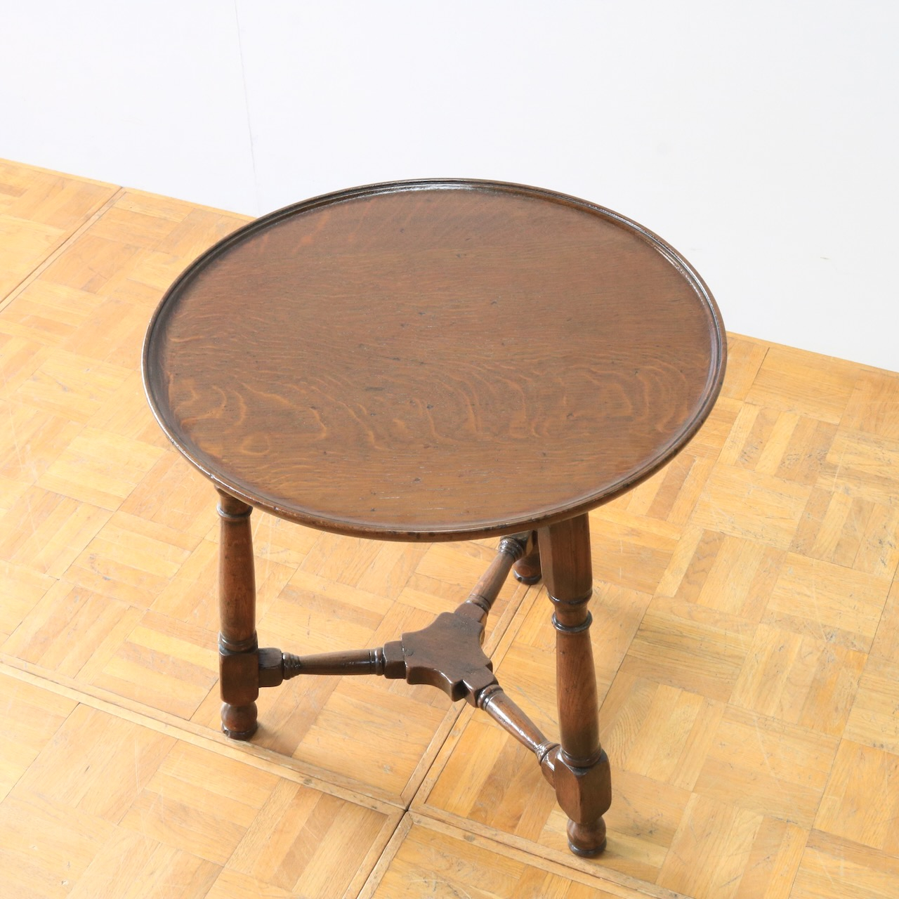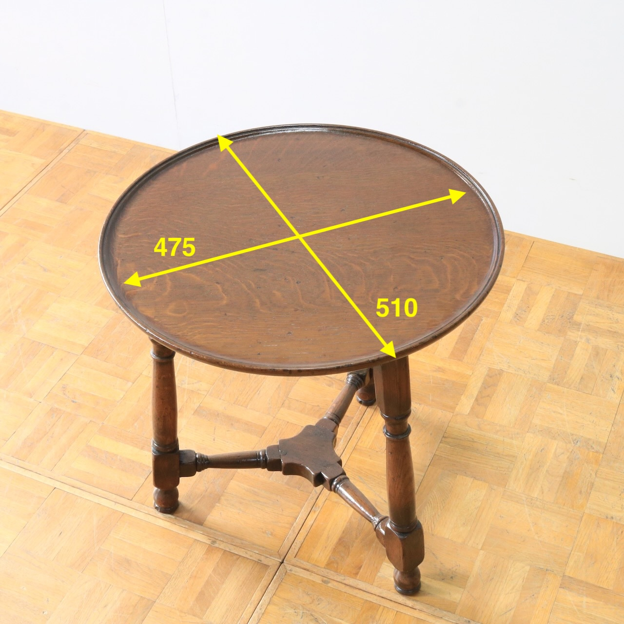 配送料の目安 ▶︎1930年代、オーク材のコーヒーテーブル。つるりとシンプルな天板に、3本の脚とそれを繋ぐストレッチャーの均衡の取れたデザインがよい緊張感とバランスをもたらしています。
