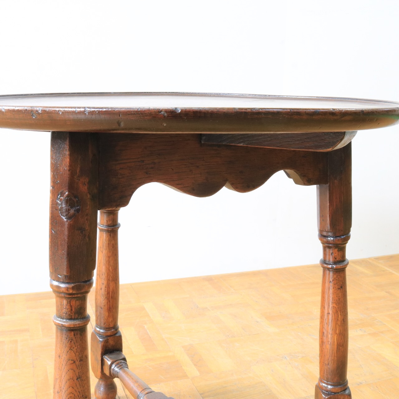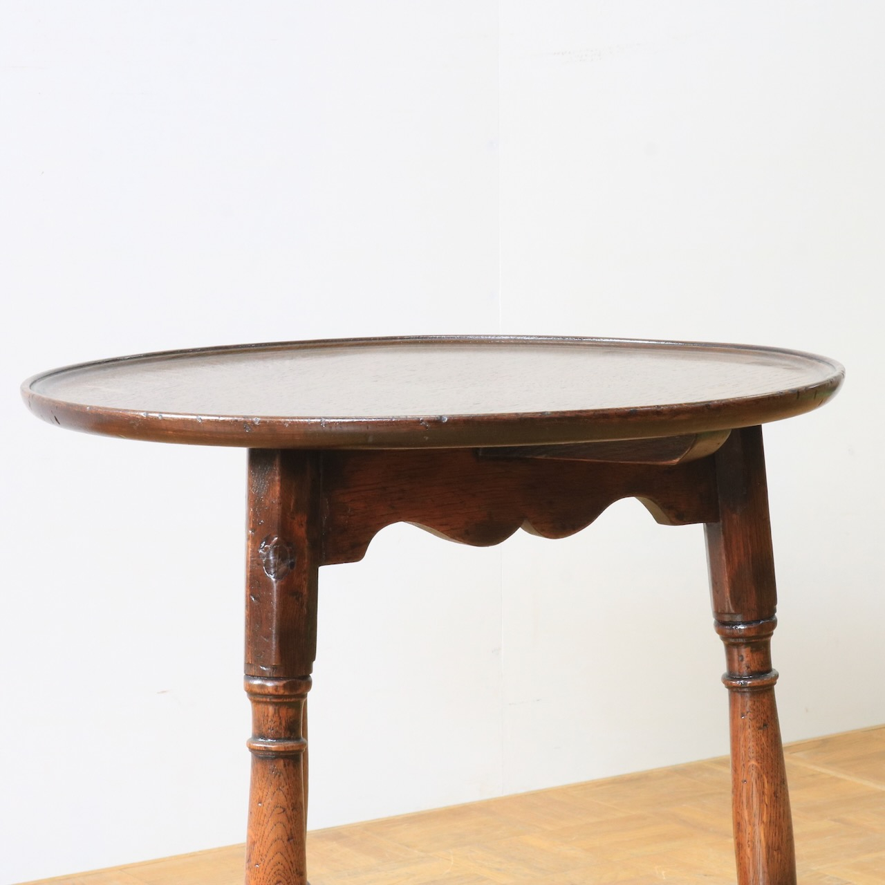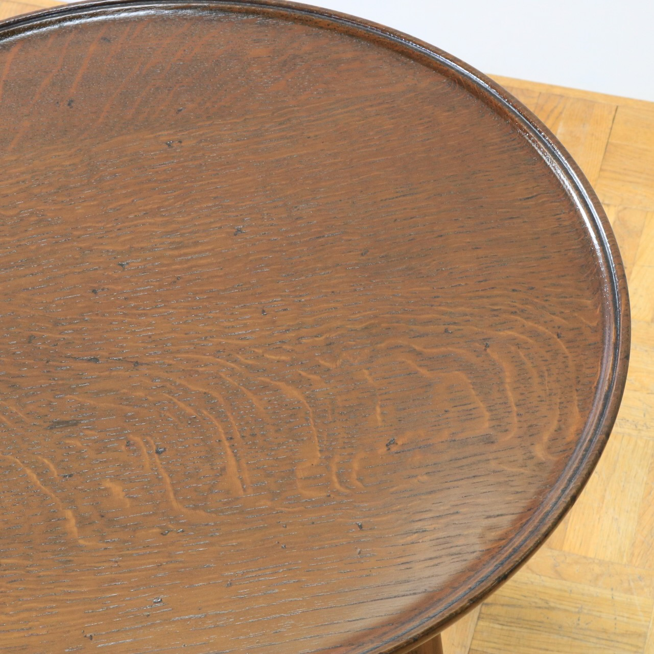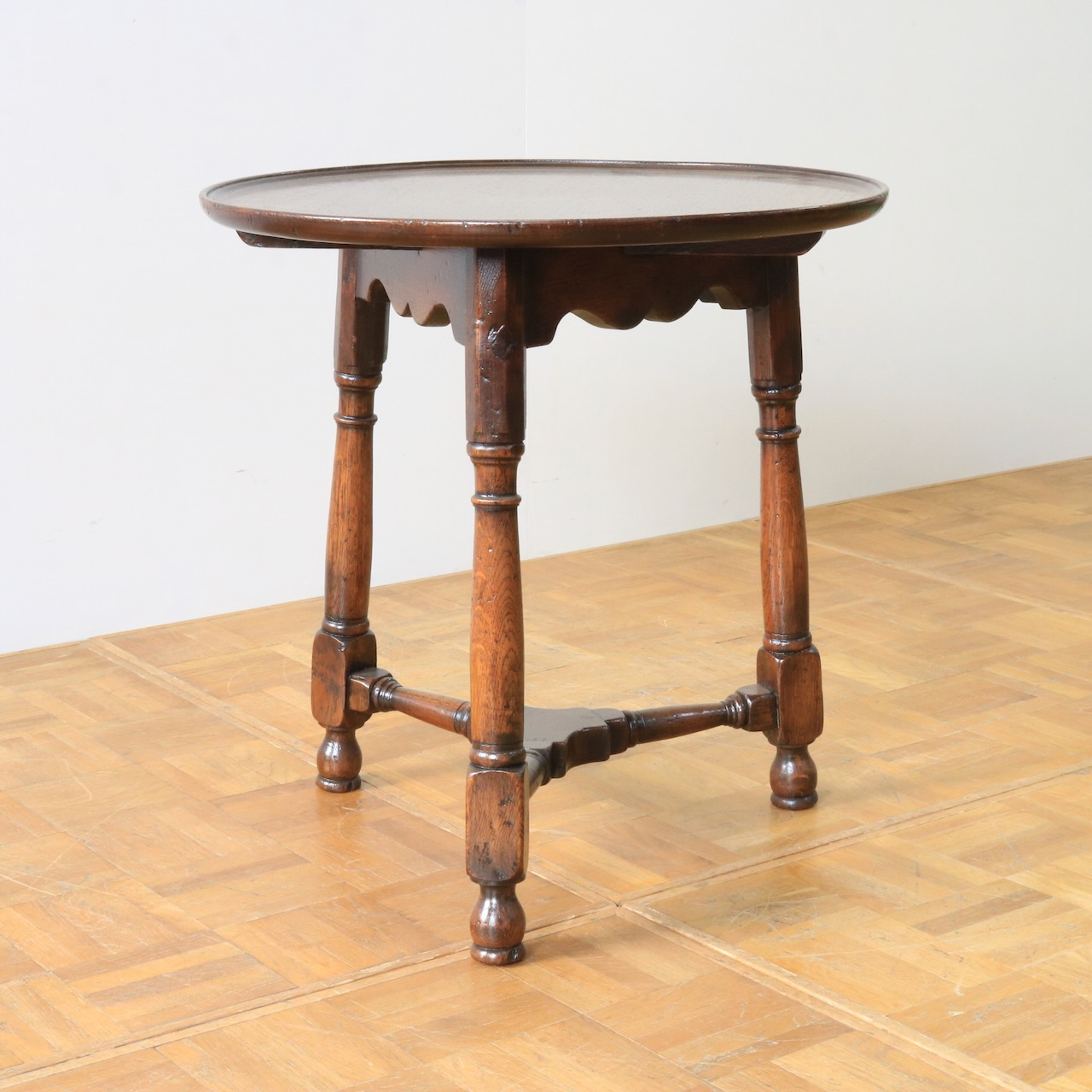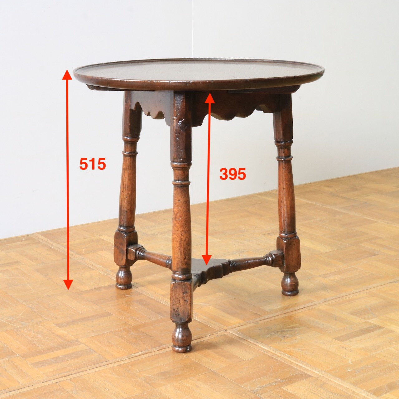 配送料の目安 ▶︎1930年代、オーク材のコーヒーテーブル。つるりとシンプルな天板に、3本の脚とそれを繋ぐストレッチャーの均衡の取れたデザインがよい緊張感とバランスをもたらしています。