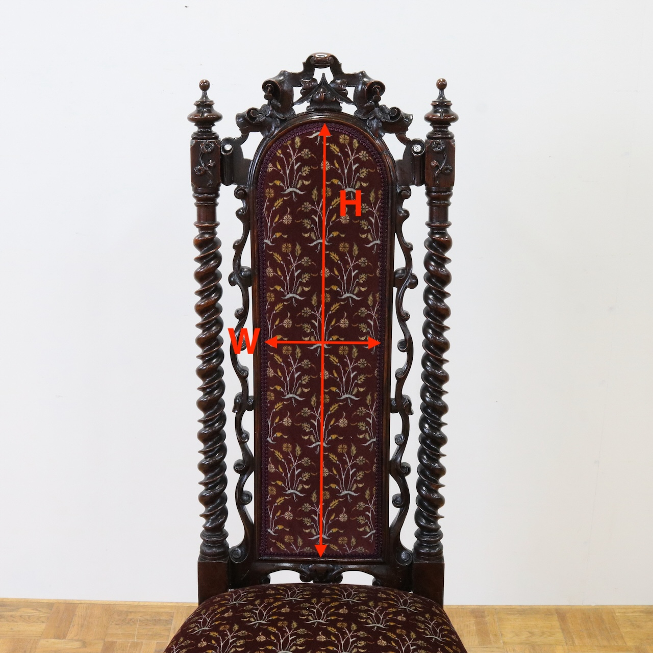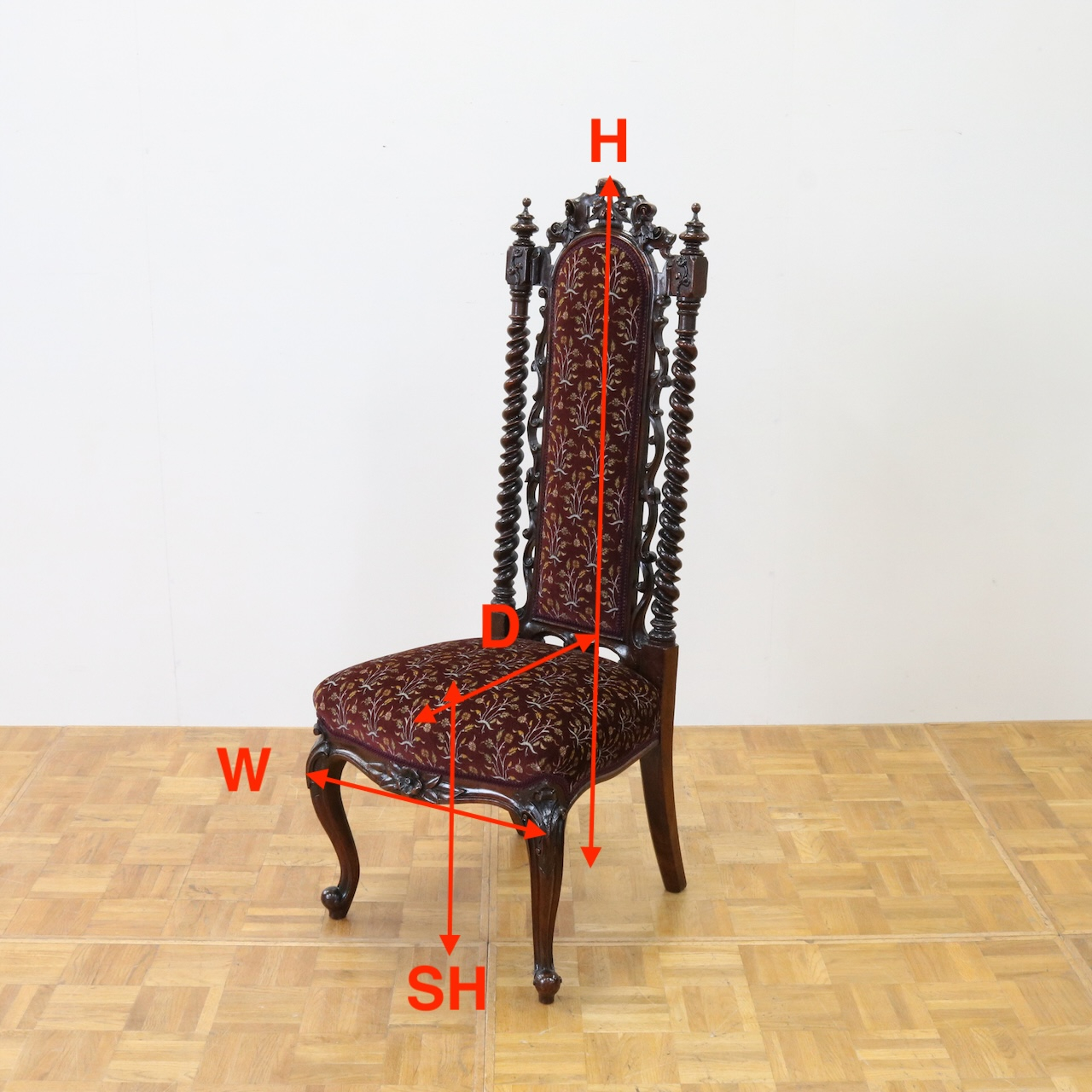 配送料の目安 ▶︎1890年代ヴィクトリアン、ウォールナット材のナーシングチェアー。植物とツイストの彫刻が見事に施された、当時の職人技が光る逸品です。座面が低めでらくにお座りいただけます。