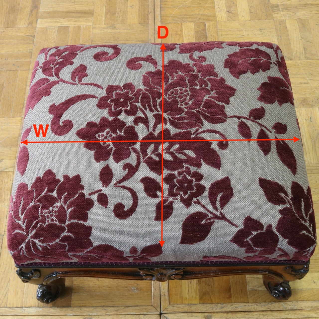 配送料の目安 ▶︎1890年代、イギリス製ウォールナット材のフットスツールです。ヴィクトリア時代の様式が漂う足乗せ用の小型スツールになります。ソファーの前などに置いて足を乗せたり、インテリアのポイントとしても素敵です。