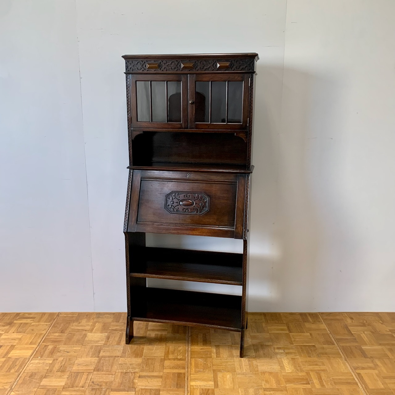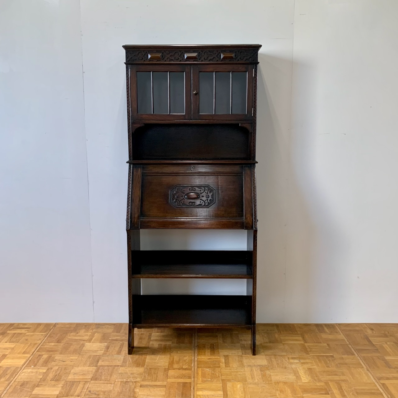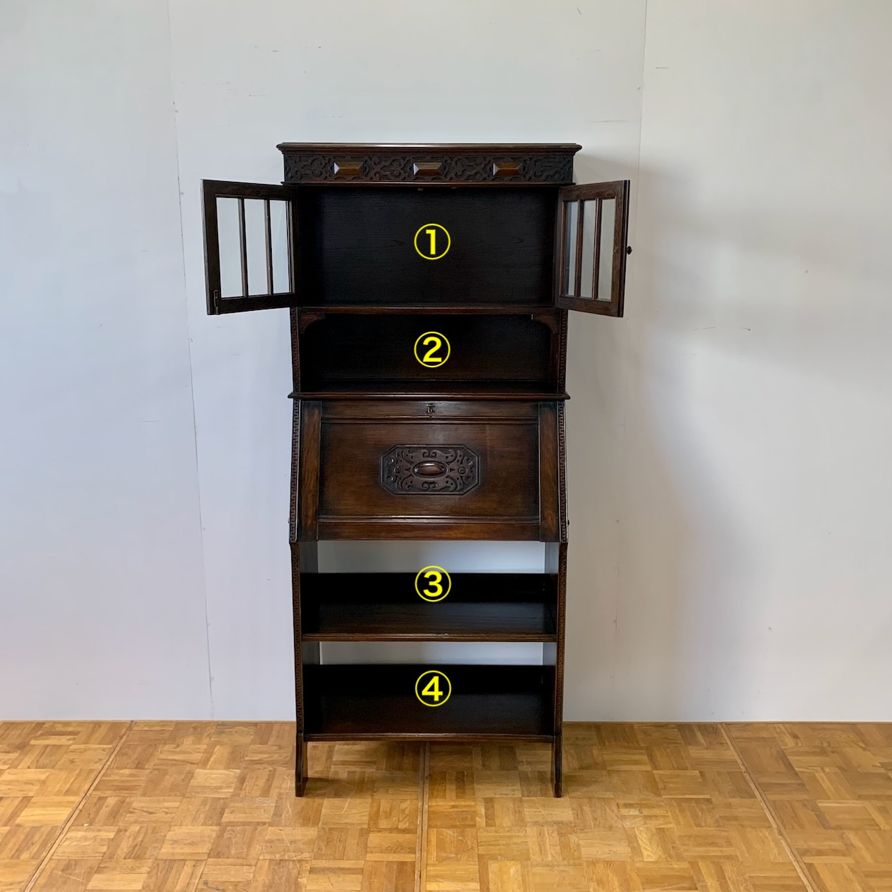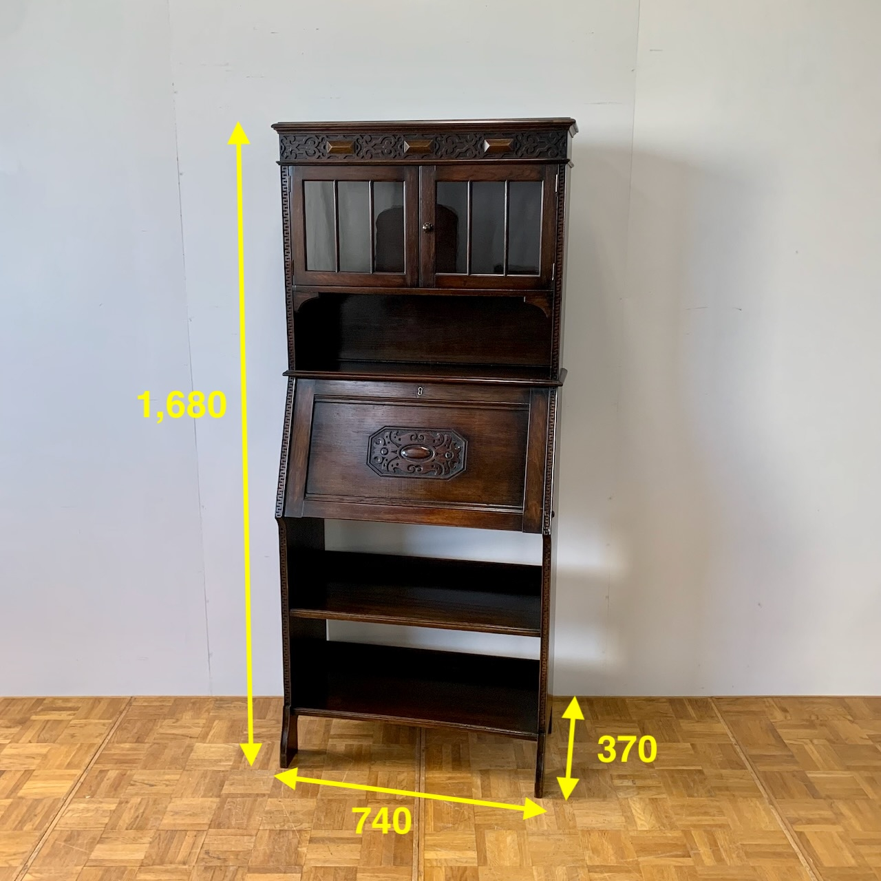 ブックケースととオープンシェルフが合わさった珍しいデザインのビューローブックケース。