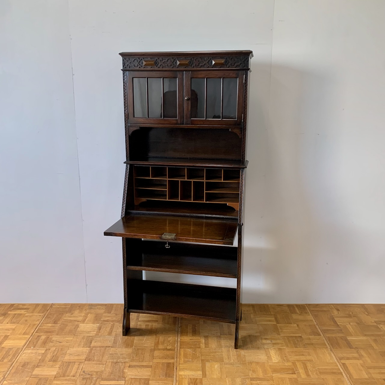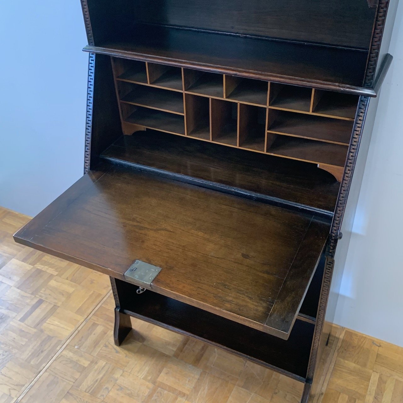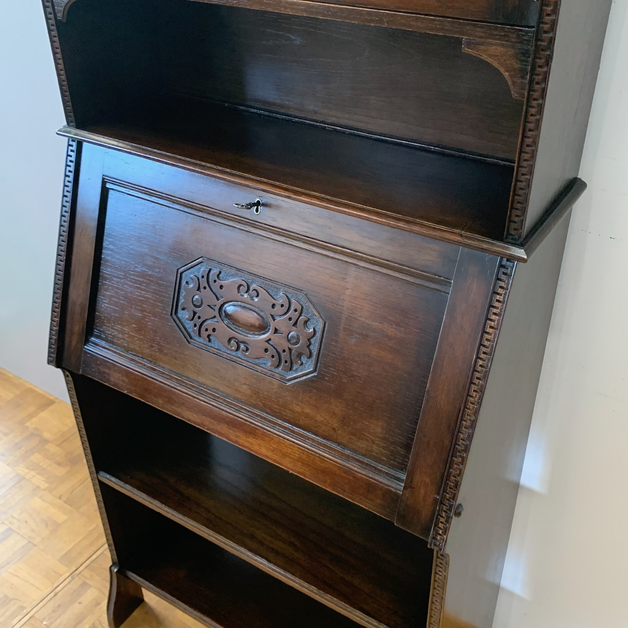 ブックケースととオープンシェルフが合わさった珍しいデザインのビューローブックケース。