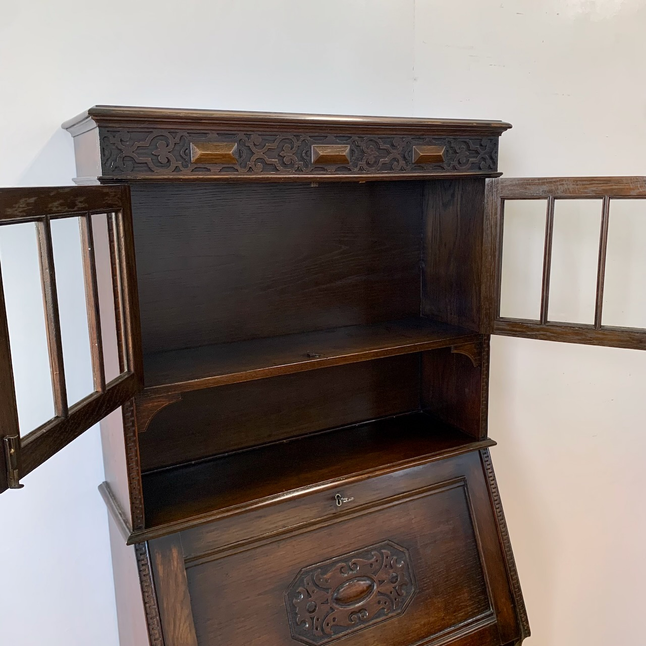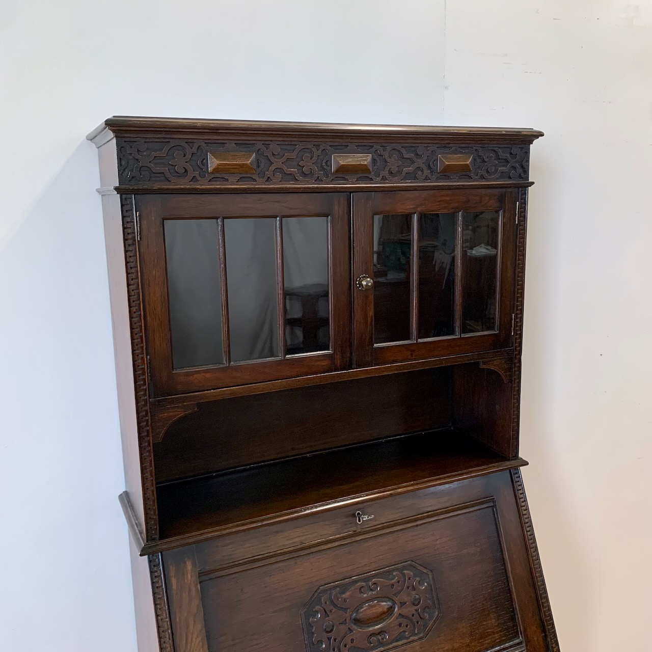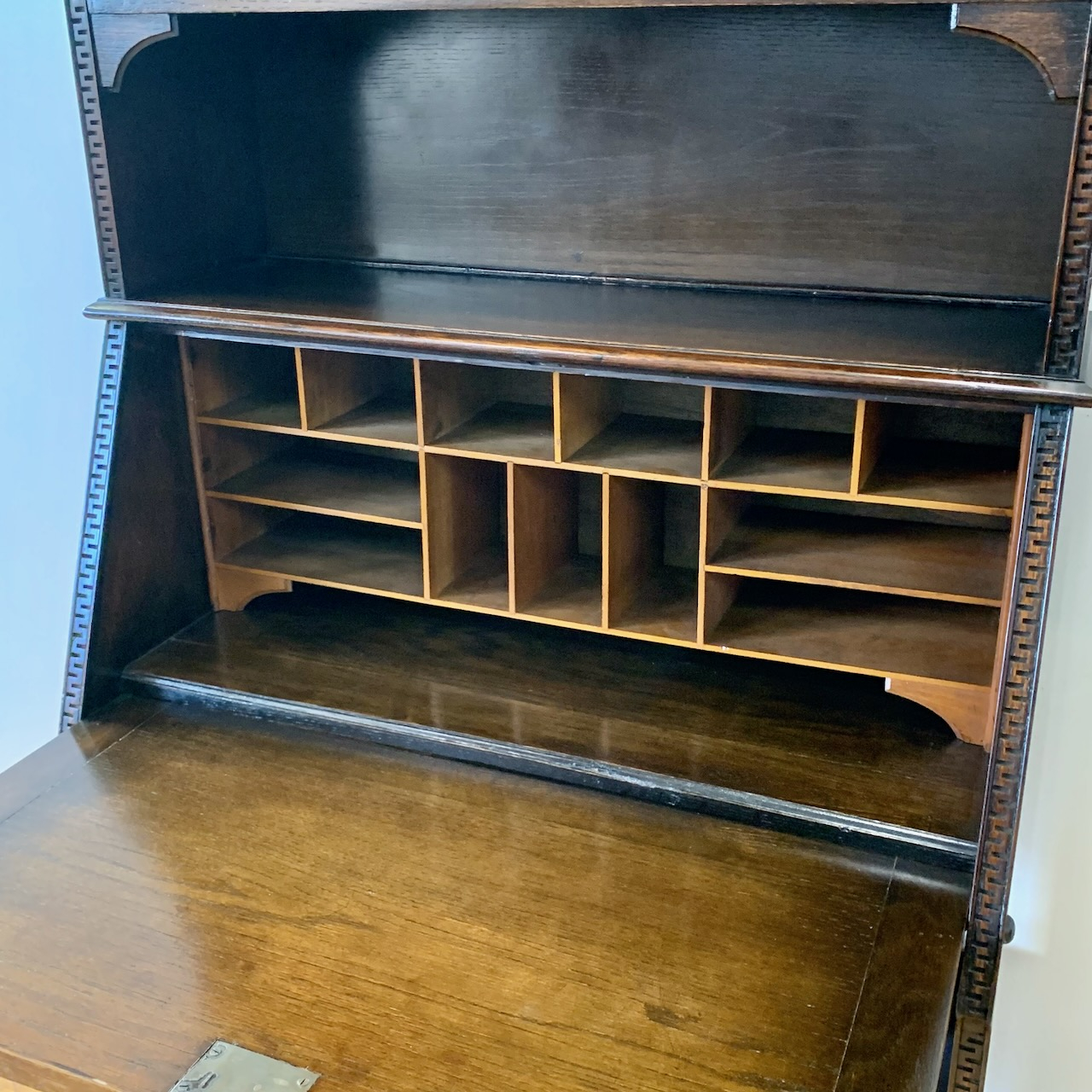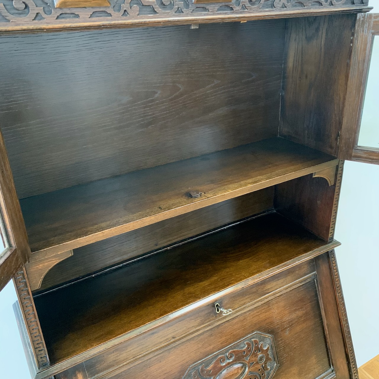 ブックケースととオープンシェルフが合わさった珍しいデザインのビューローブックケース。