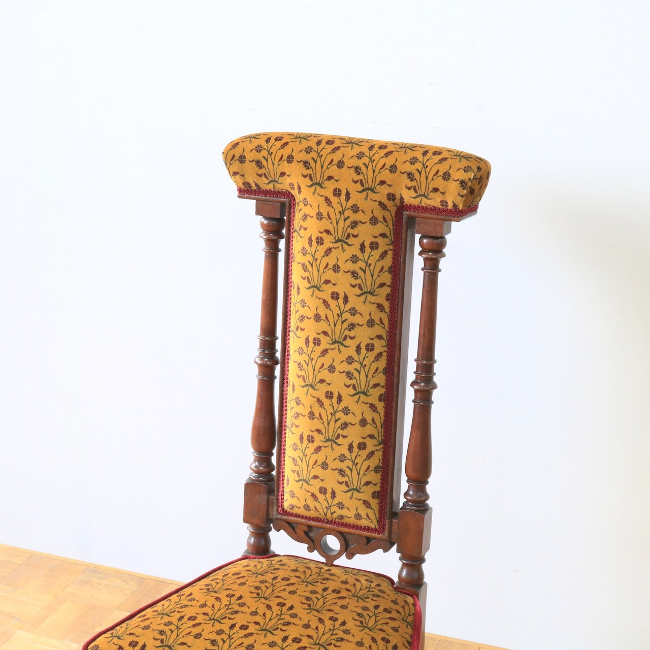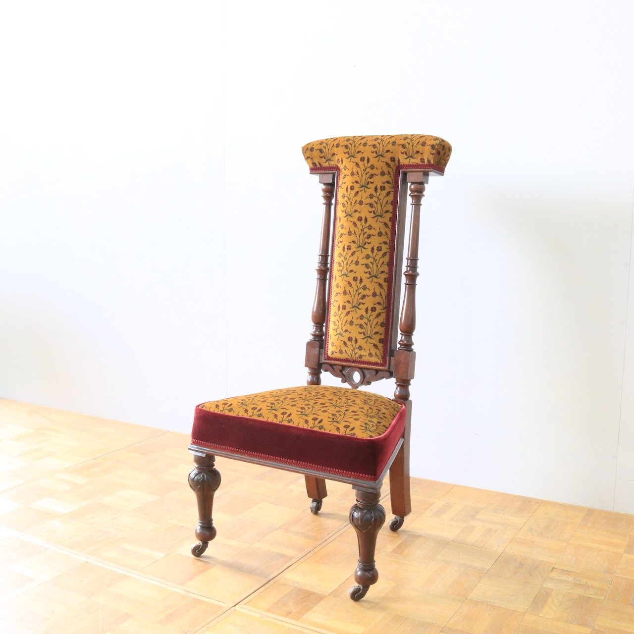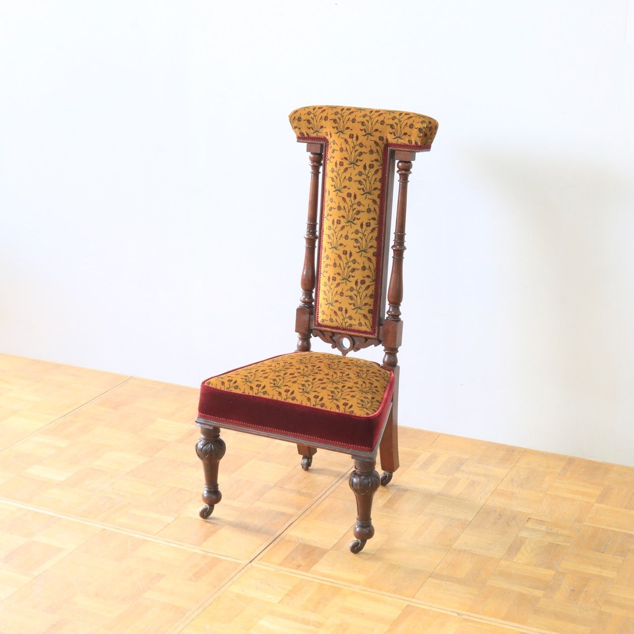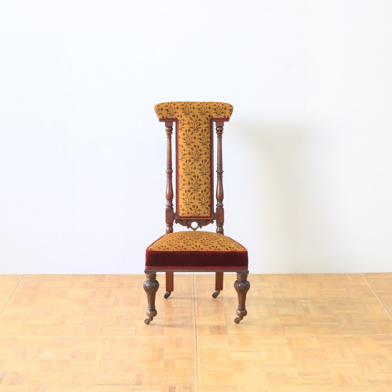 1880年・ヴィクトリアンのプレイヤーチェアー。元々はお祈りの際に使われていたチェアーです。