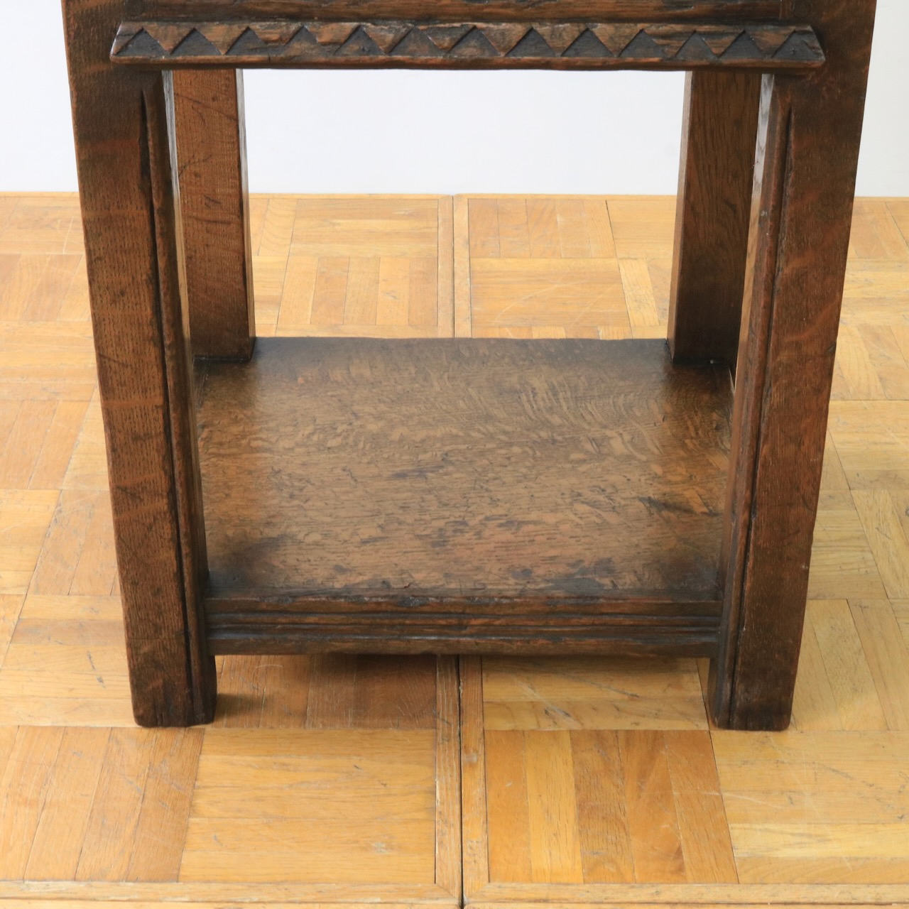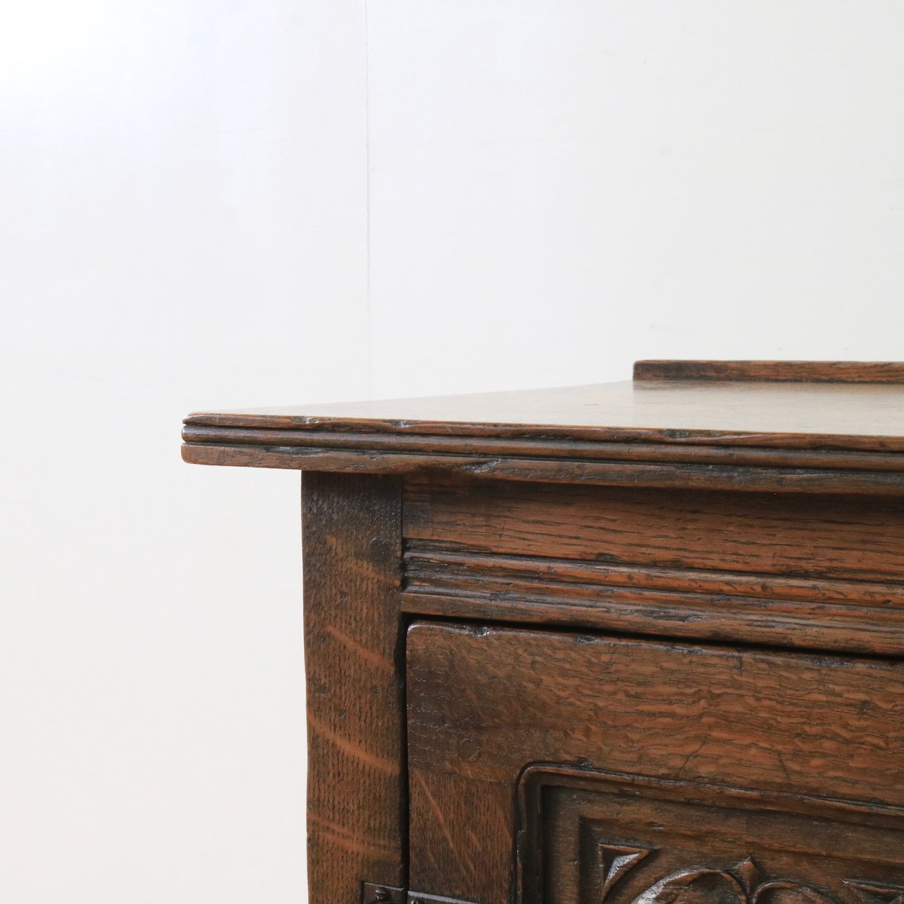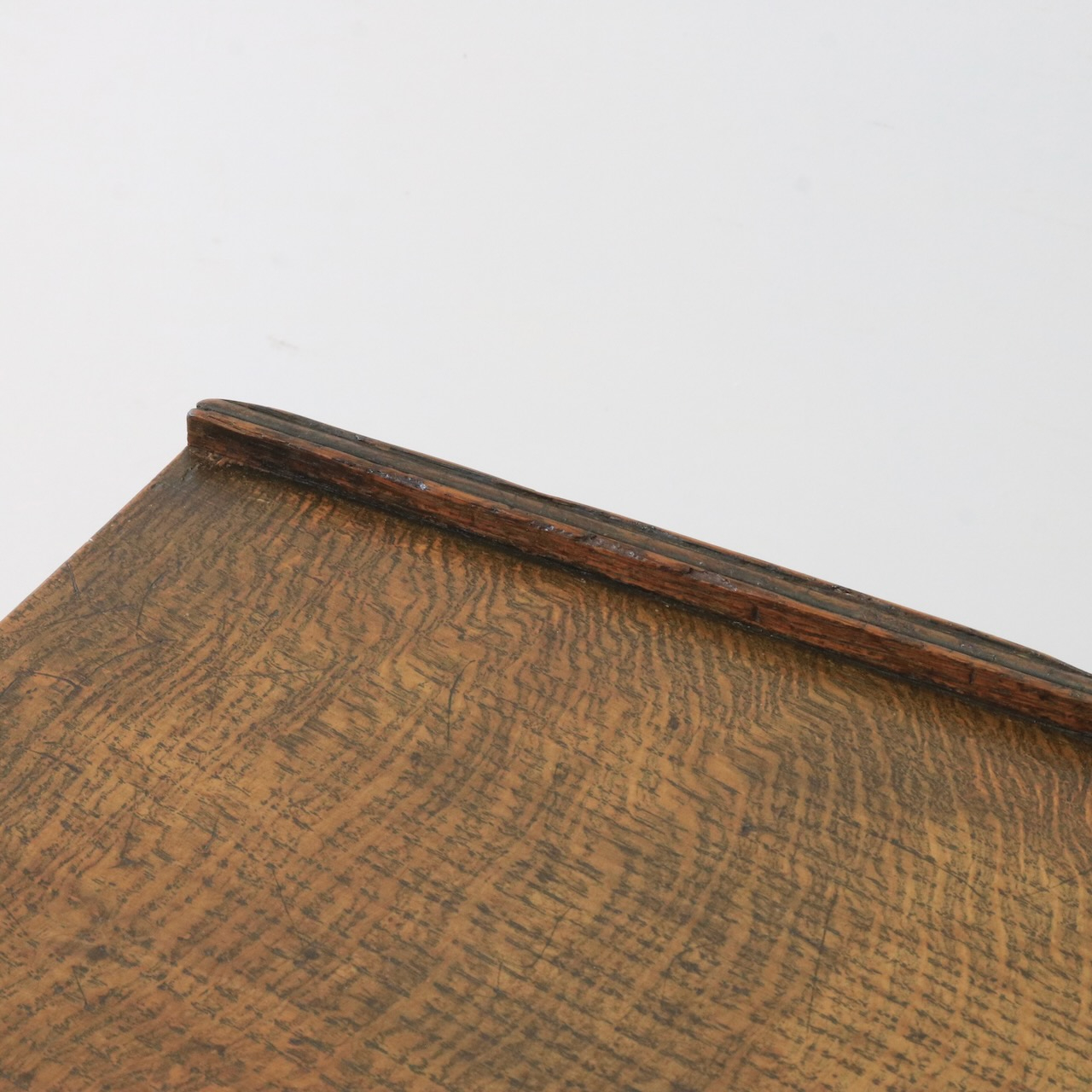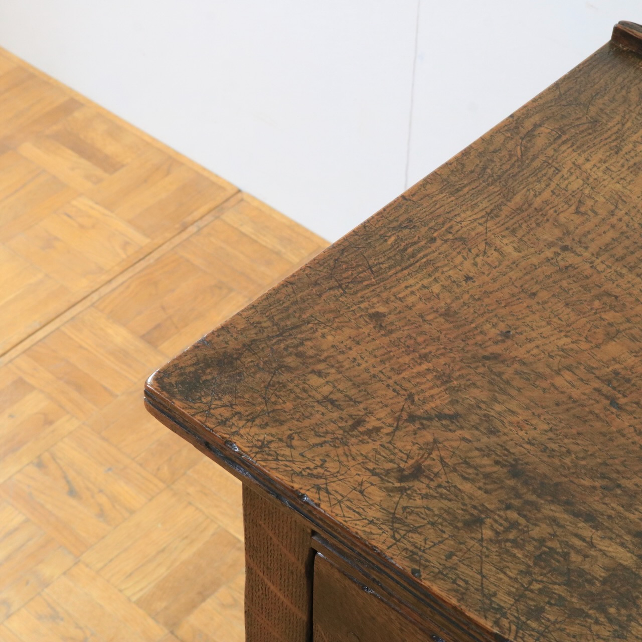 天板はオーク材らしい温もりのある木目。経年による味わいも感じ取れます。