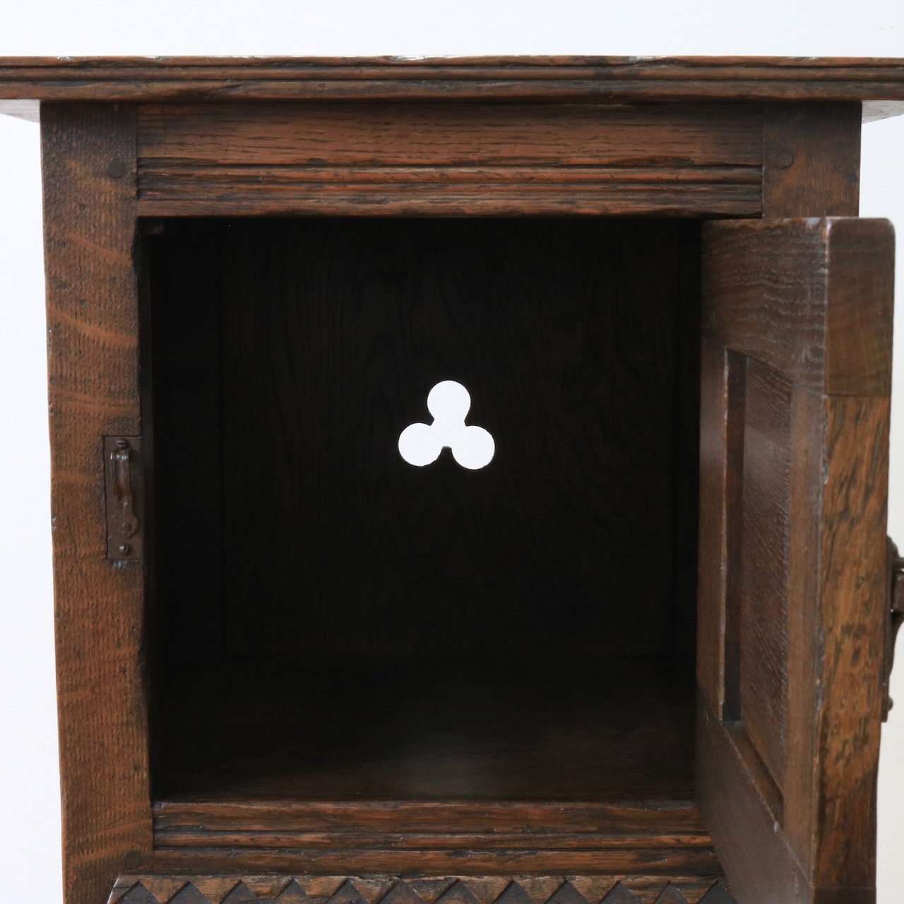 扉を開くと背板にクローバー型の透かしがございます!
