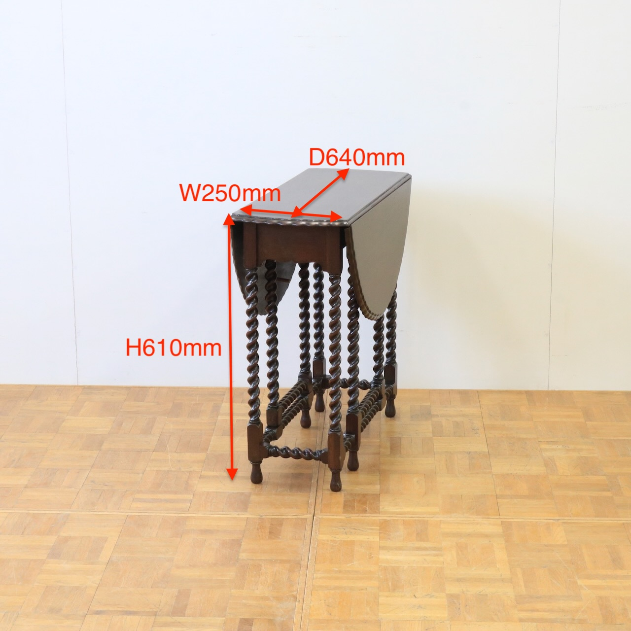 1920年代、マホガニー材のゲートレッグテーブル。使い方により大きさを調節できる便利なテーブルです。細かいピッチのツイストレッグが印象的。