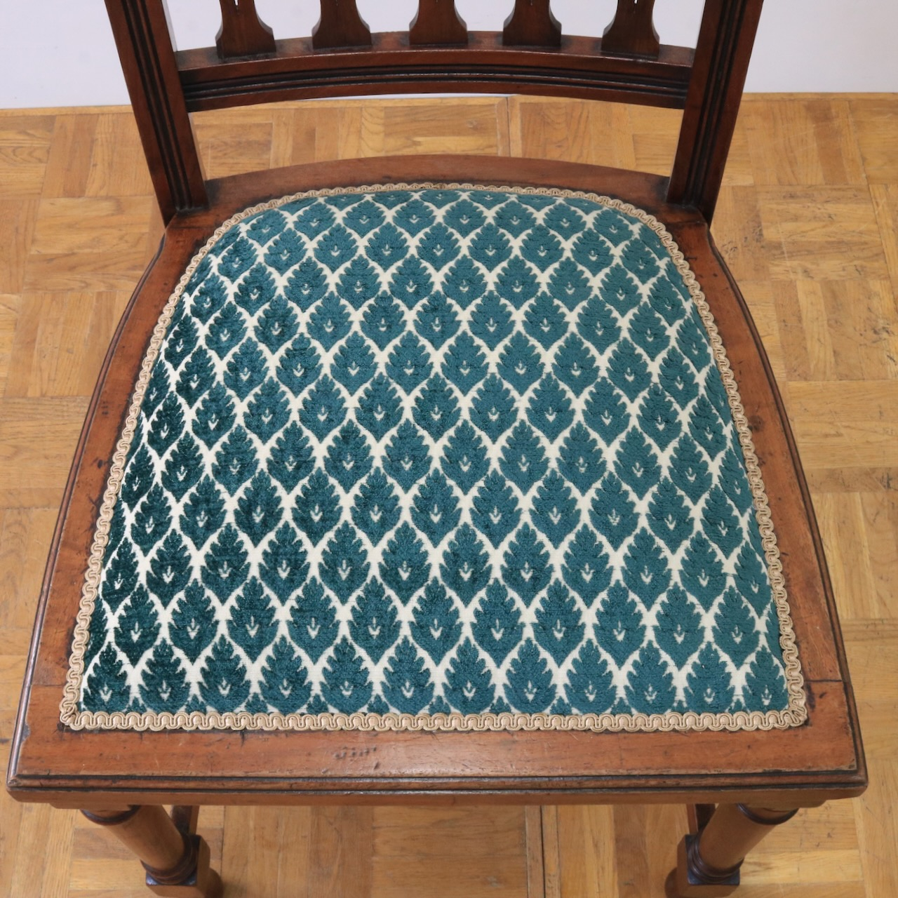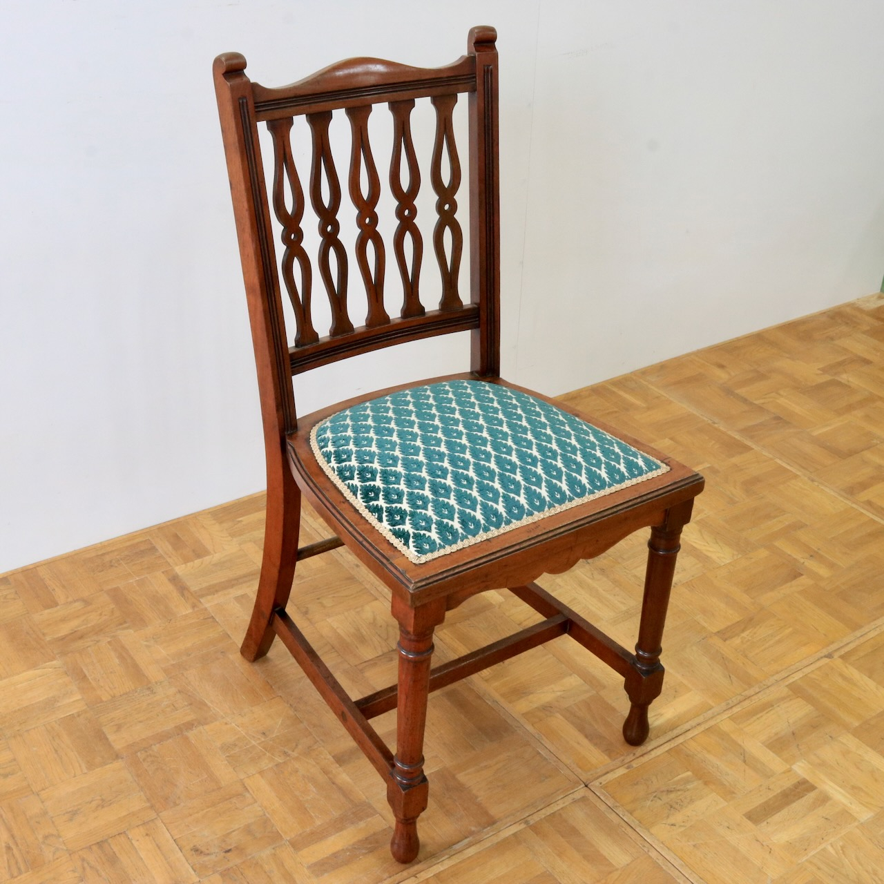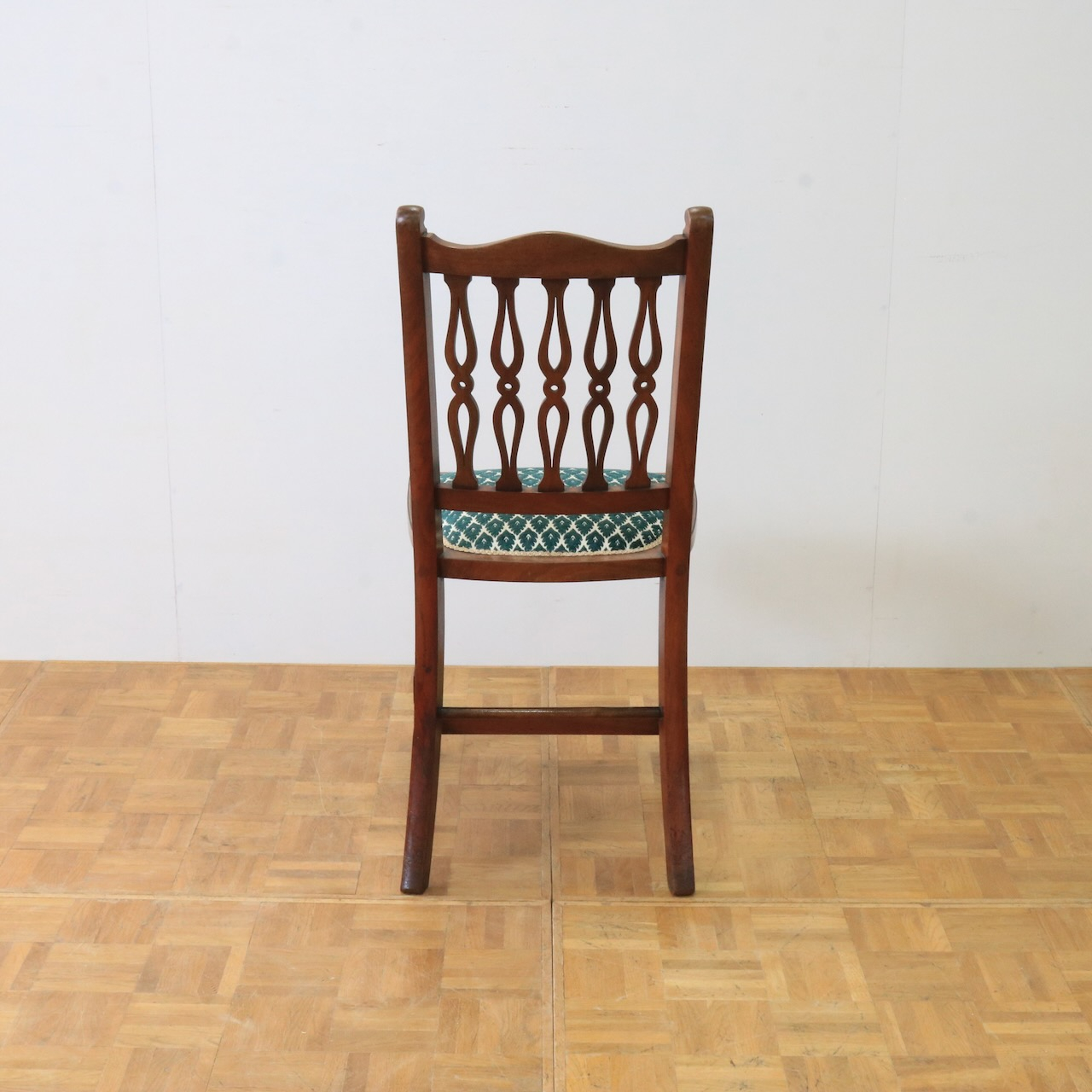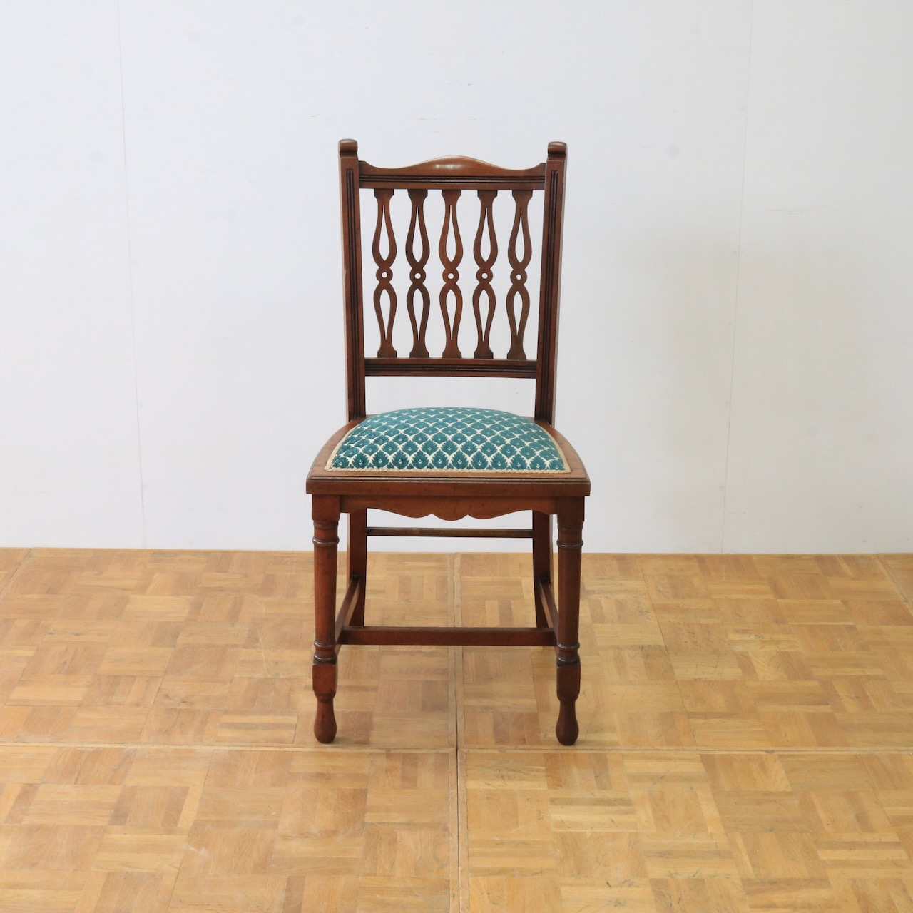 配送料の目安 ▶︎1910年代、ウォールナット材のサイドチェアー。小ぶりですが、しっかりとした作りで安定感のある座り心地のチェアー。背もたれの透かし模様も個性的です。