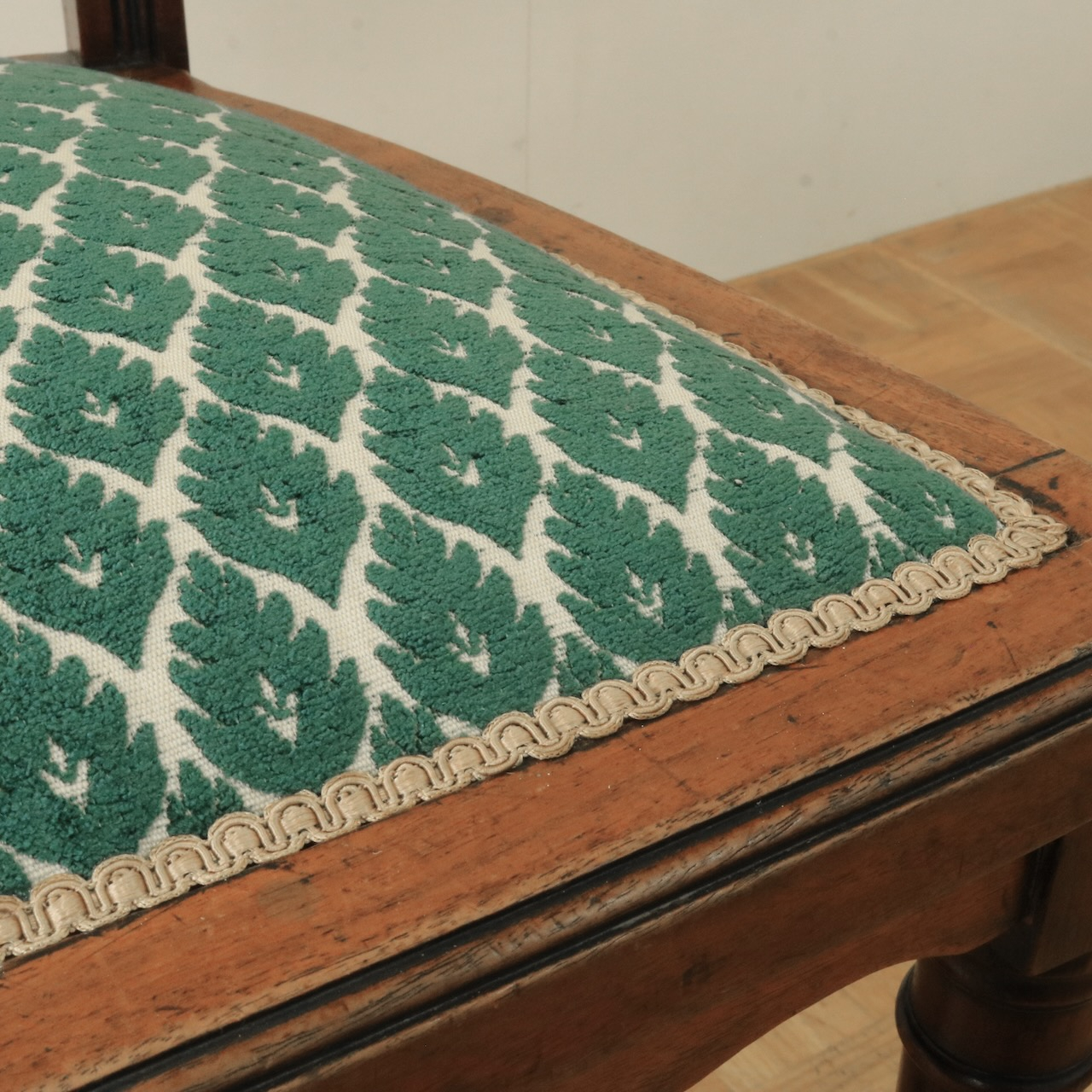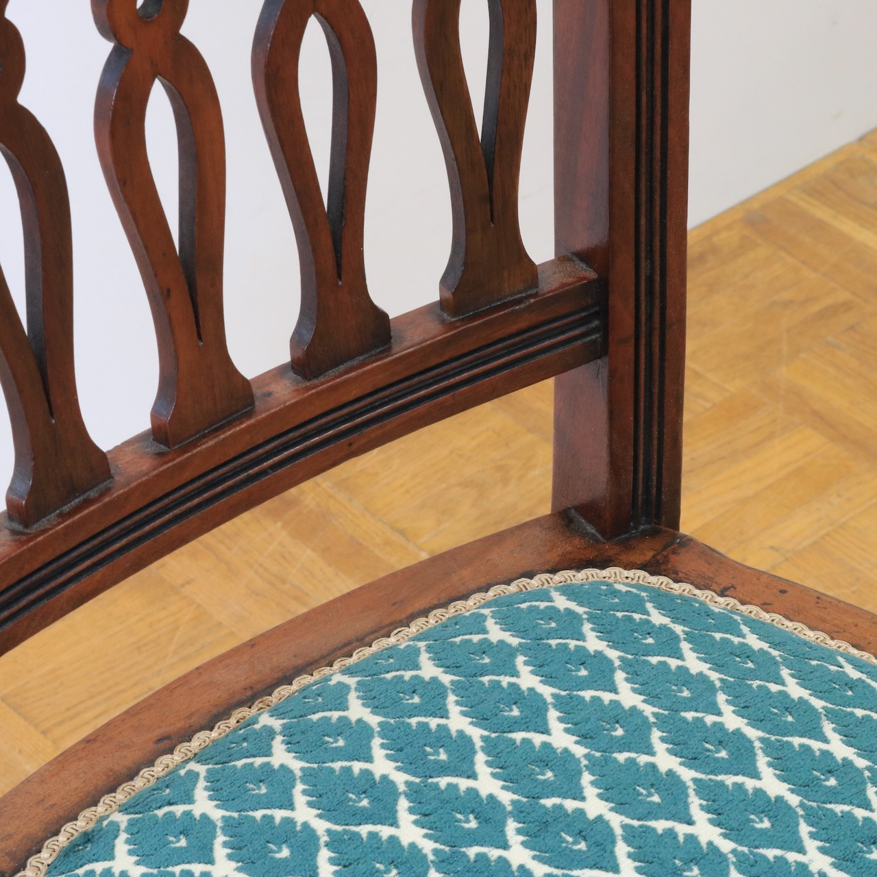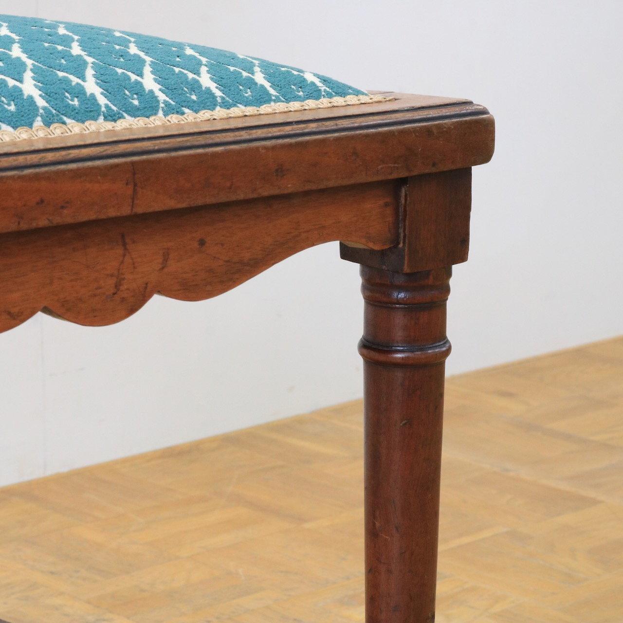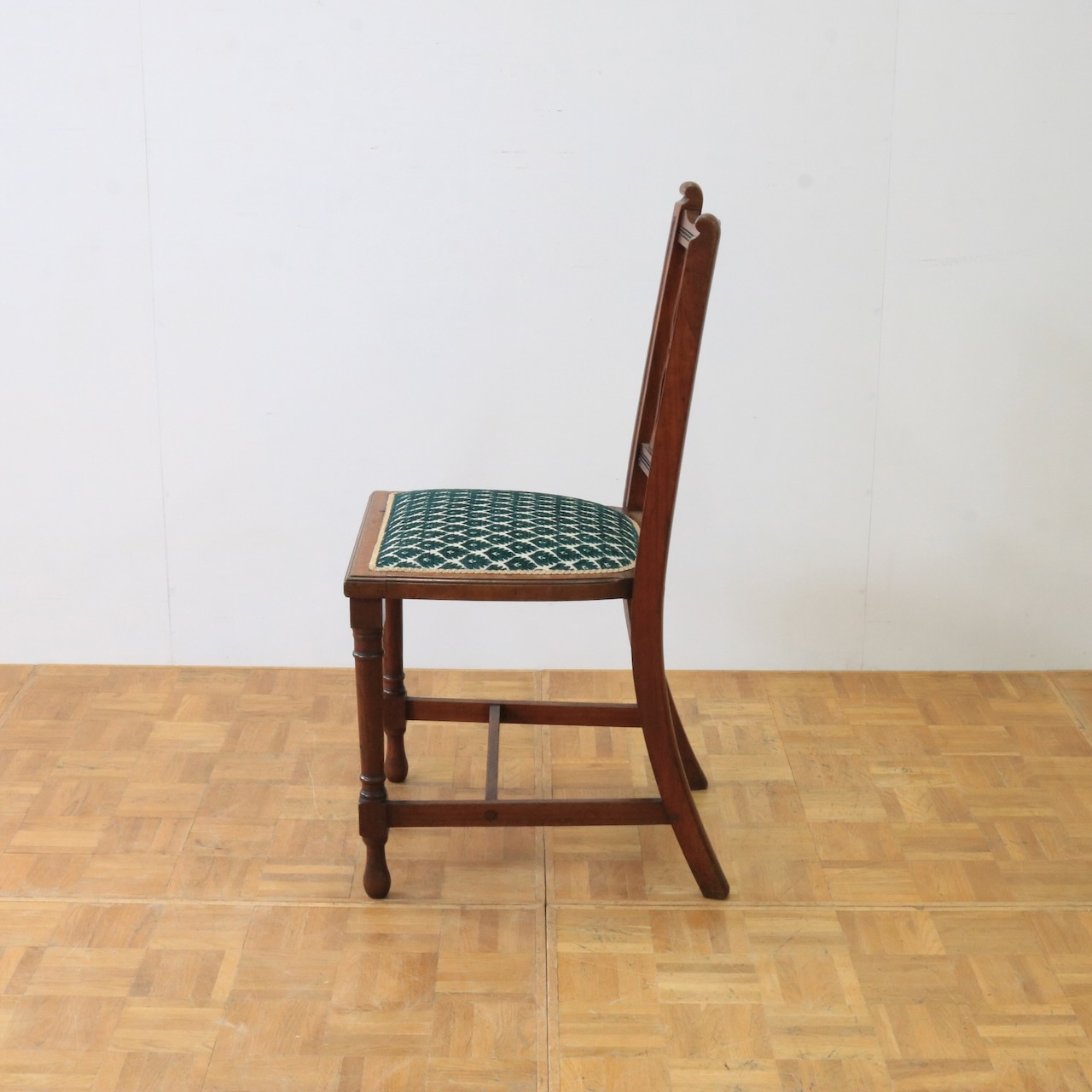 脚元はターニングを用いたデザイン。スラリとしたシルエットと緩やかな弧を描く装飾のコントラストが美しいアンティークチェアーです。