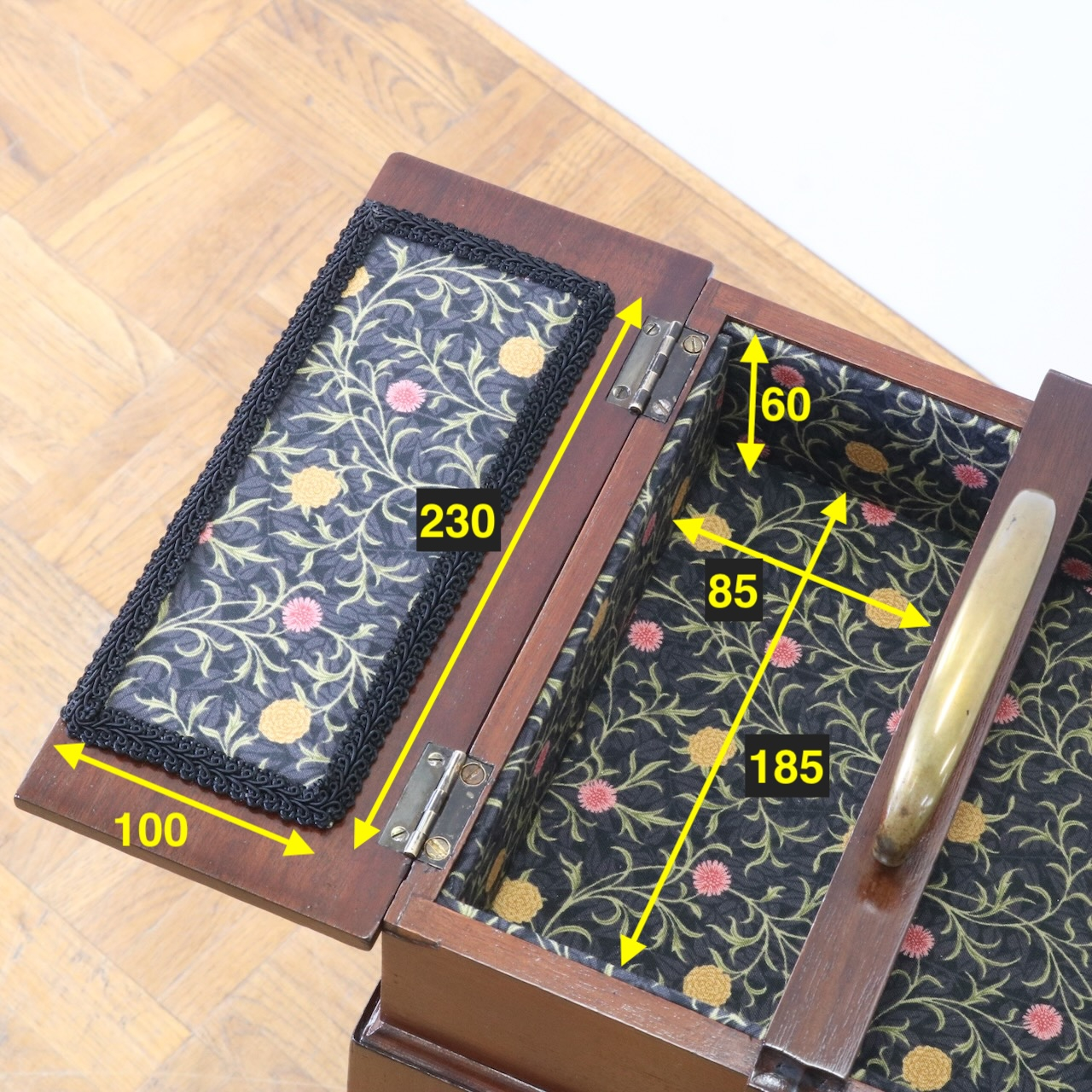 配送料の目安 ▶︎1910年代、マホガニー材のソーイングボックス。