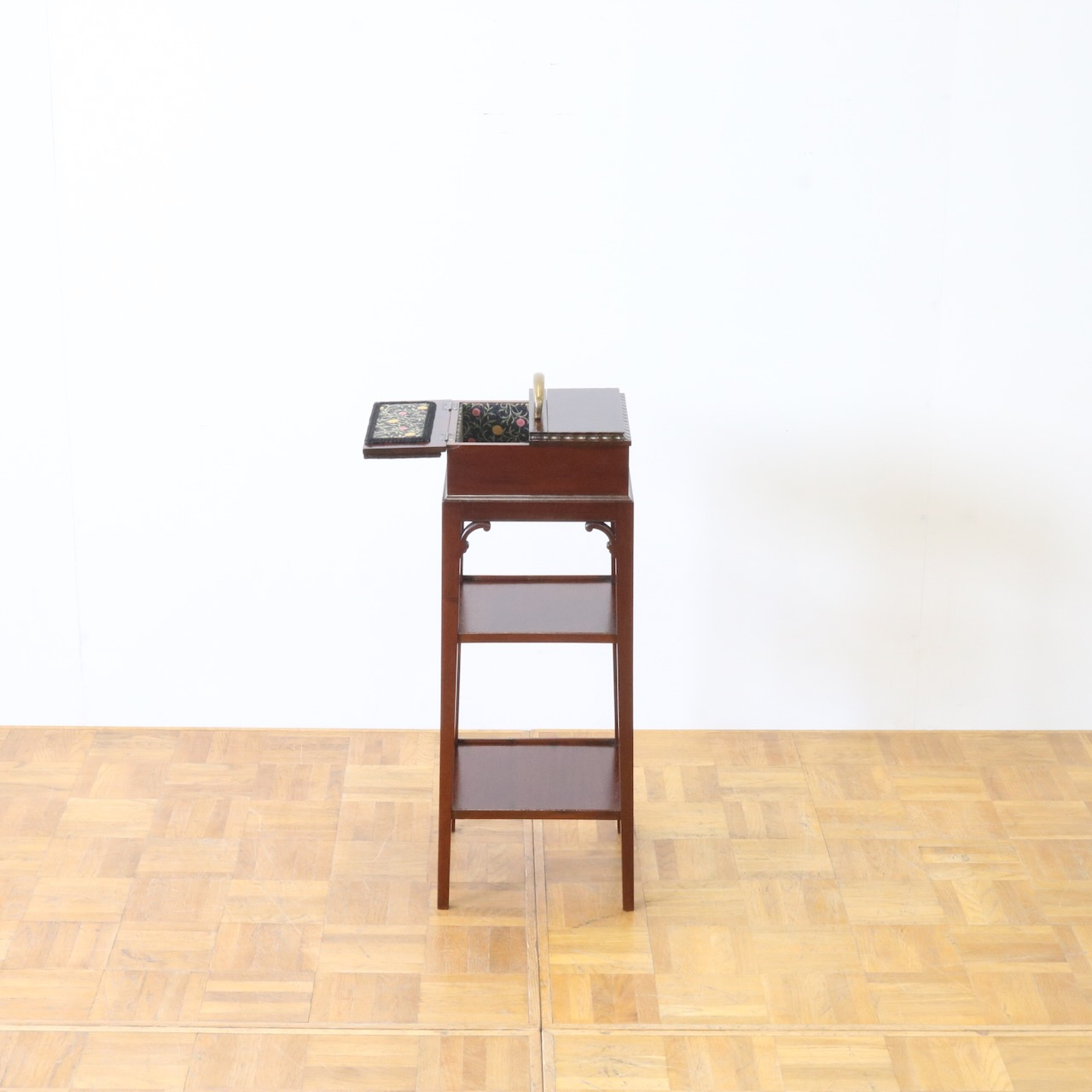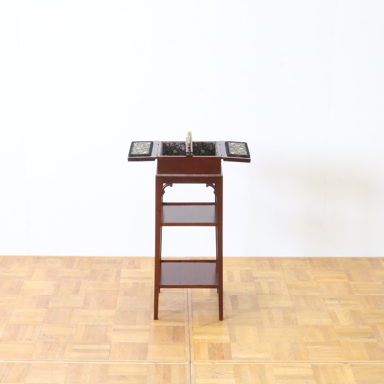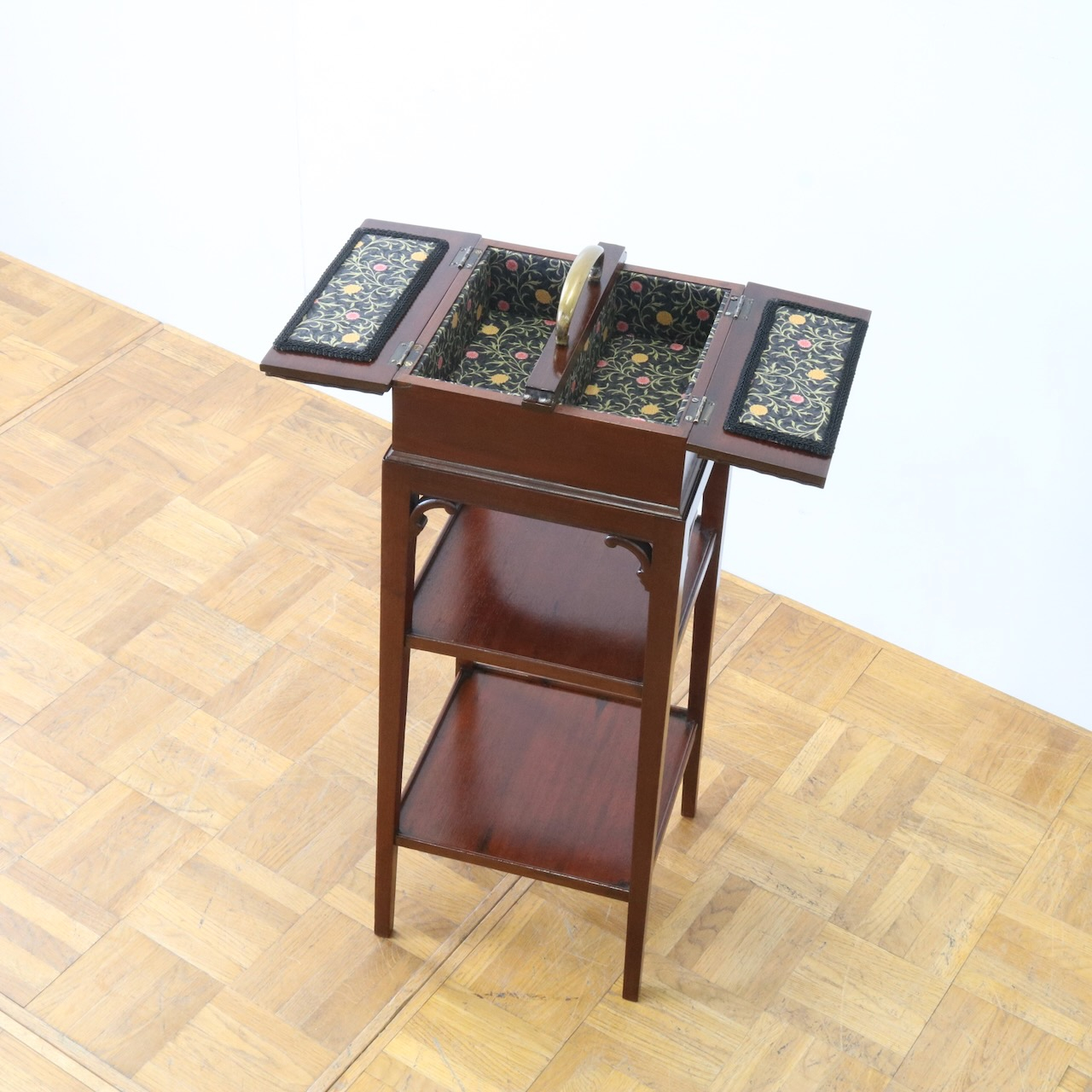 ケーキスタンドのような三段の作りで、一番上部分に当時はお裁縫道具を収納していました。