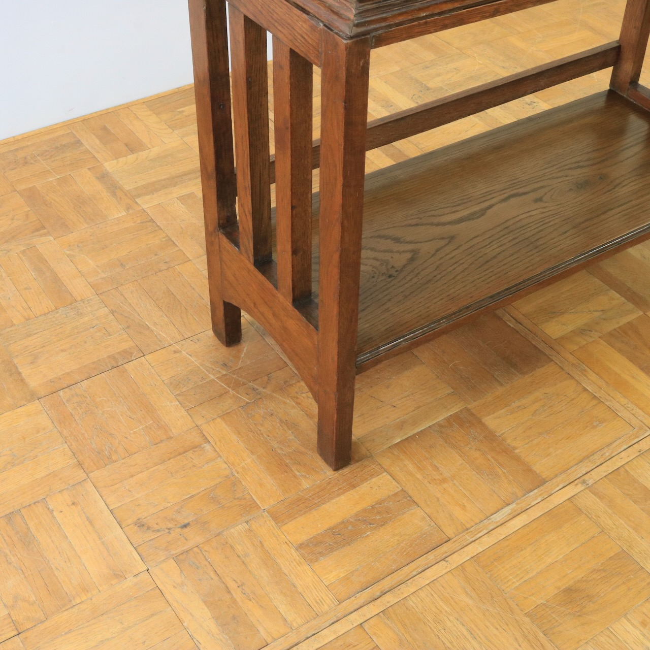 線で構成された面が多く、全体に軽やかな佇まいはアンティークでは少し珍しいデザインです。アーツアンドクラフトがもたらした当時としては最新のデザインが現代でも無二の個性を放ちます。