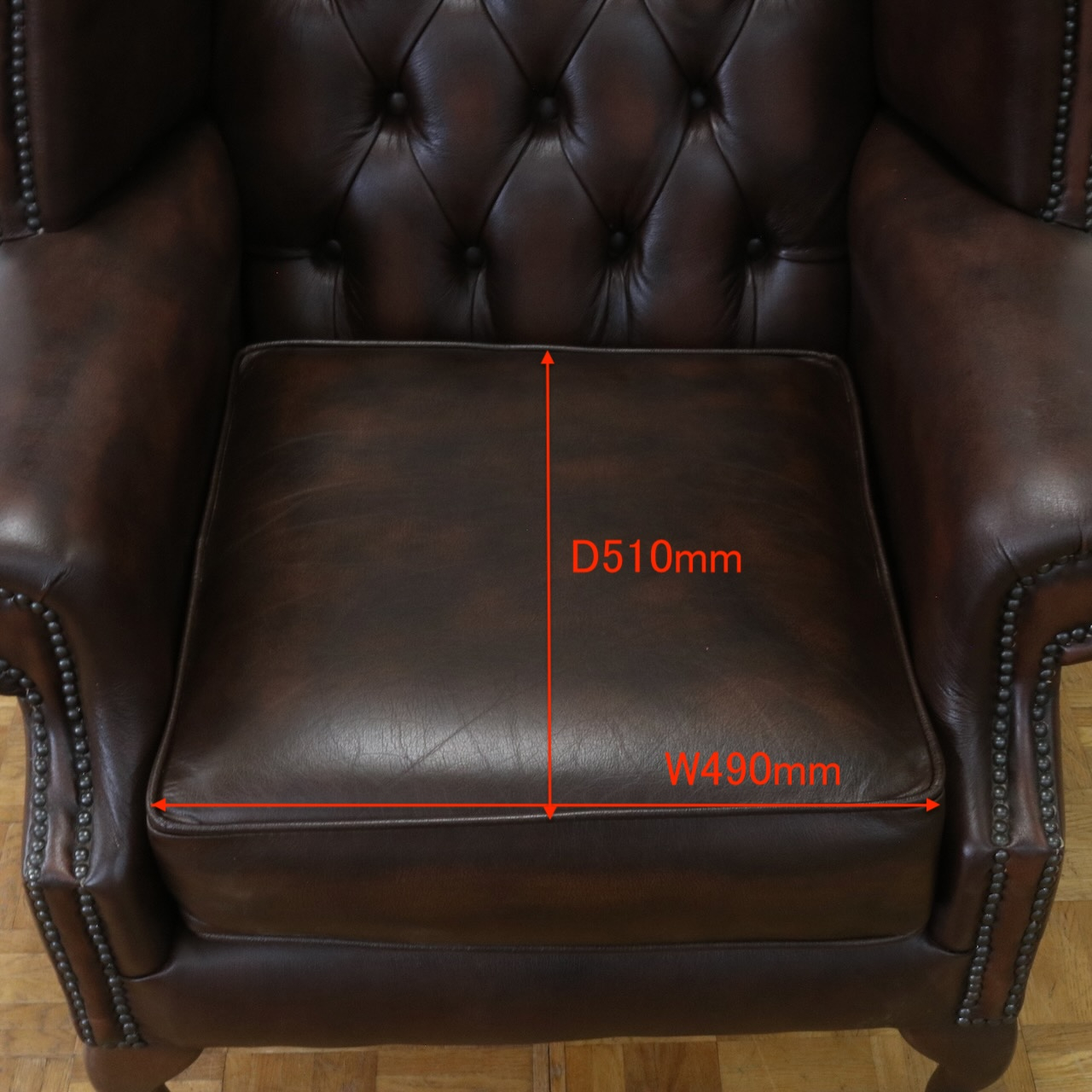 配送料の目安 ▶︎一人用のレザー張りチェスターフィルドソファ。