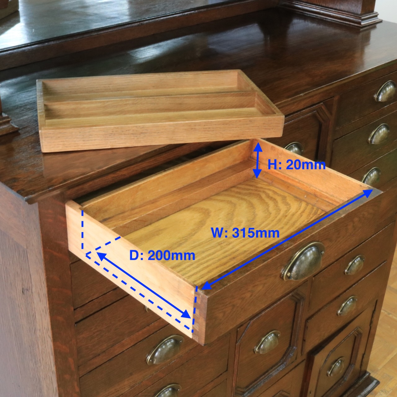 *上段引き出し部分内寸(W: 260mm D: 170mm H: 50mm ×3)